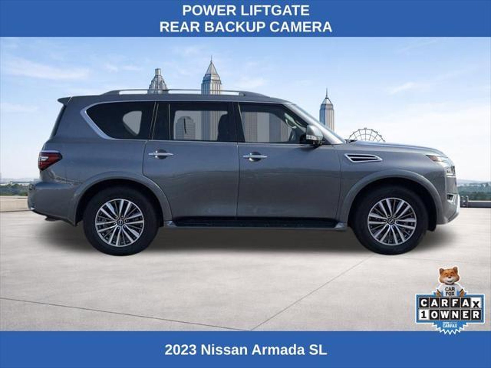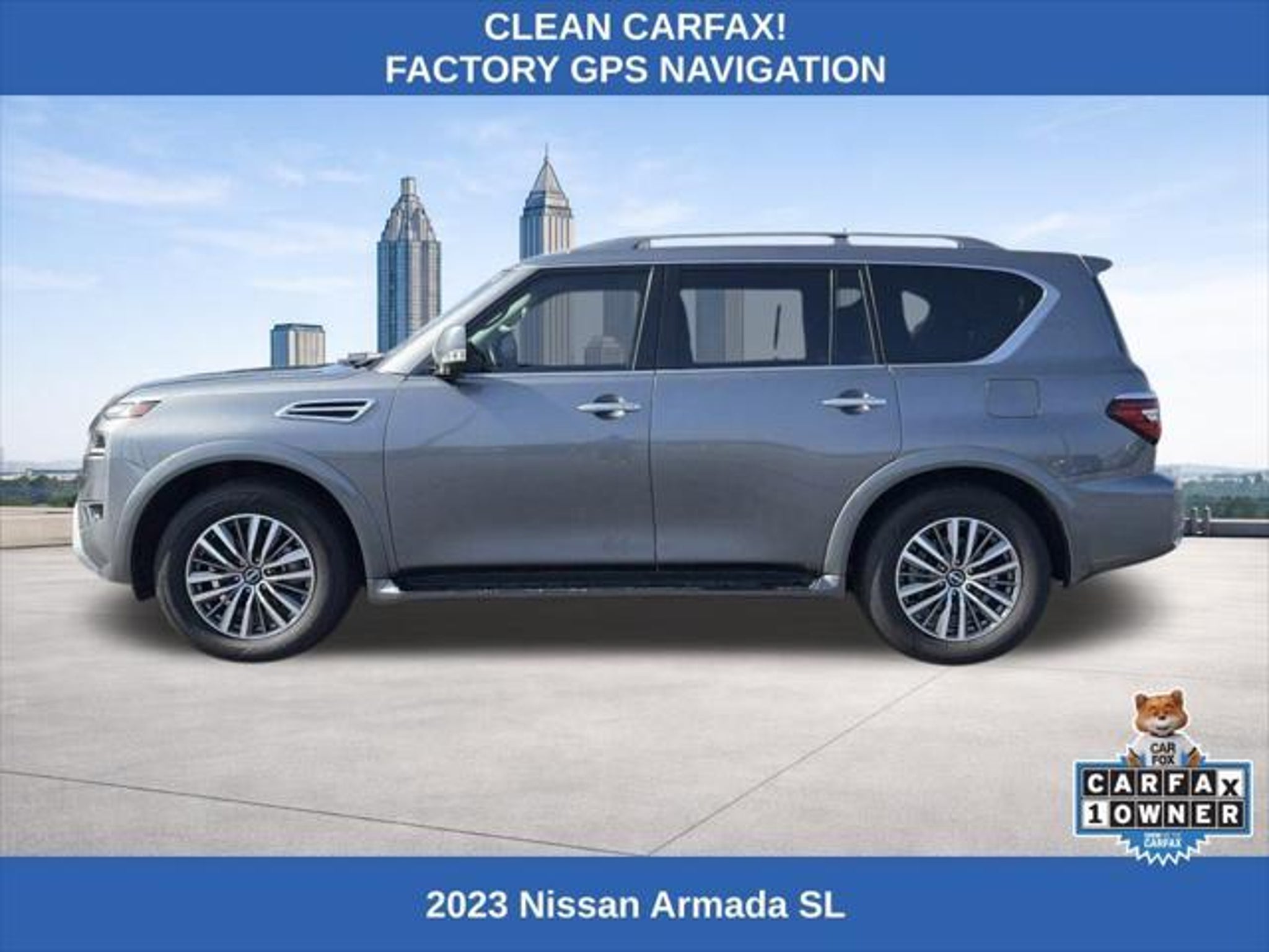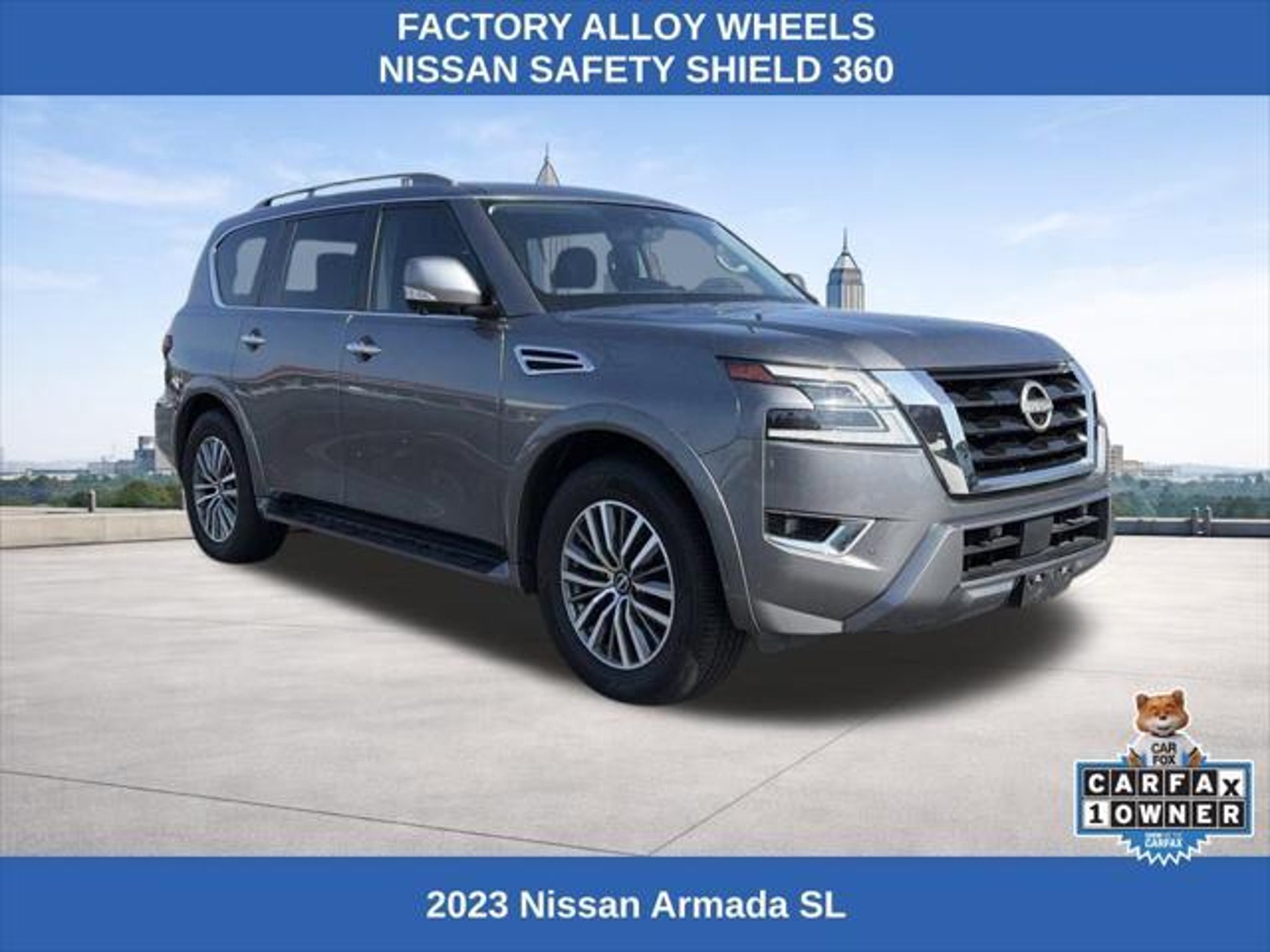 Elevate your driving experience with this stunning 2023 Nissan Armada SL. This powerhouse SUV boasts an impressive 5.6L V8 engine that delivers 400 horsepower, coupled with a smooth 7-speed automatic transmission and the confidence of four-wheel drive. With a spacious interior, seating for up to eight, and a wealth of premium features, the Armada SL is the perfect companion for your adventures. - Four-Wheel Drive (4WD) - 3rd Row Seating - Clean CARFAX - Factory GPS Navigation - Power Sunroof/Moonroof - Heated and Cooled Seats - Apple CarPlay/Android Auto - Remote Engine Start - Remote Keyless Entry - Hands-Free Bluetooth - Power Liftgate - Rear Backup Camera - Factory Alloy Wheels - Nissan Safety Shield 360 - Intelligent Forward Collision Warning - Automatic Emergency Braking with Pedestrian Detection - Rear Automatic Braking - Intelligent Lane Intervention - Lane Departure Warning - Rear Cross-Traffic Collision-Avoidance Assist - Blind Spot Warning The Armada SL's impressive list of features is further enhanced by its premium Bose 13-speaker audio system, dual-zone automatic climate control, and a power-adjustable driver's seat with memory settings. Enjoy the convenience of the NissanConnect infotainment system with seamless integration of your smartphone via Apple CarPlay and Android Auto. With a fuel efficiency rating of 13 MPG in the city and 18 MPG on the highway, the Armada SL strikes a balance between power and efficiency, making it a practical choice for your daily commute and weekend adventures alike. We want to ensure you have all the details you need! Our pricing and information are presented with utmost accuracy. Please keep in mind that prices and incentives can vary depending on your location, and they are subject to change. It's important to note that government fees such as tax, tag, title, and WRA are not included in our prices. At Nissan of Lithia Springs, we proudly offer automotive loan financing through our esteemed Finance Department. Contact one of our dedicated finance managers to learn more about our Credit Assistance Program. Our exceptional team of sales and finance associates is committed to providing top-notch care and addressing all your automotive concerns with the utmost dedication. Visit our dealership at 811 Thornton Rd, Lithia Springs, GA, or call us at . We are looking forward to assisting all our customers in the greater Atlanta area with great enthusiasm and sincerity.