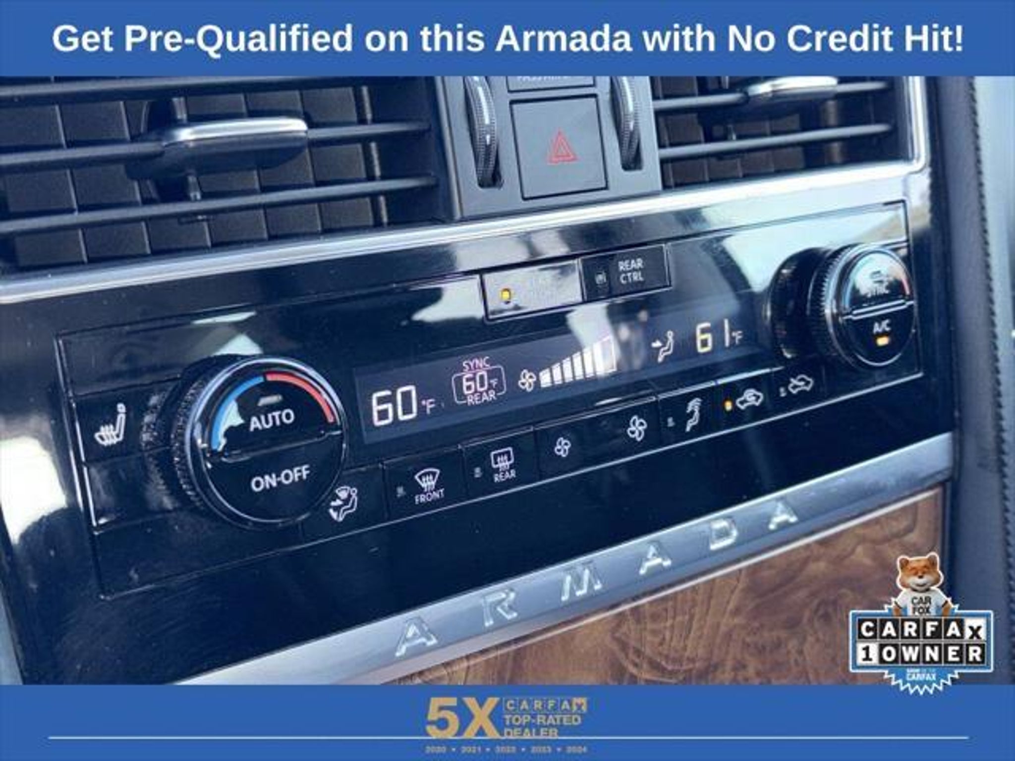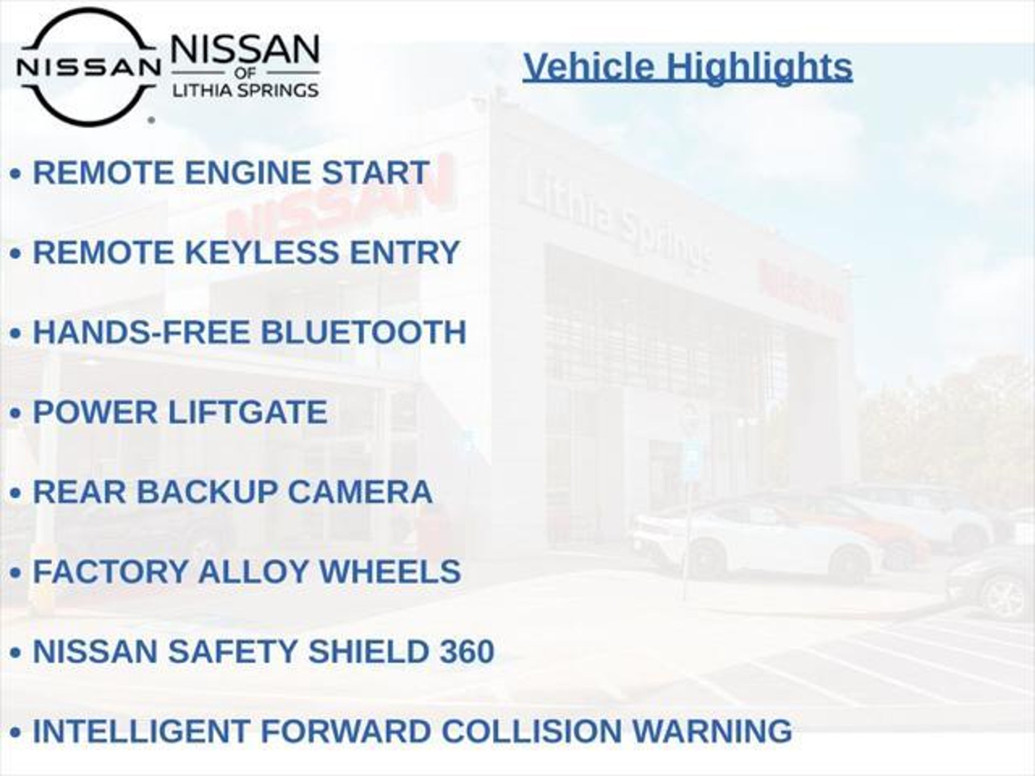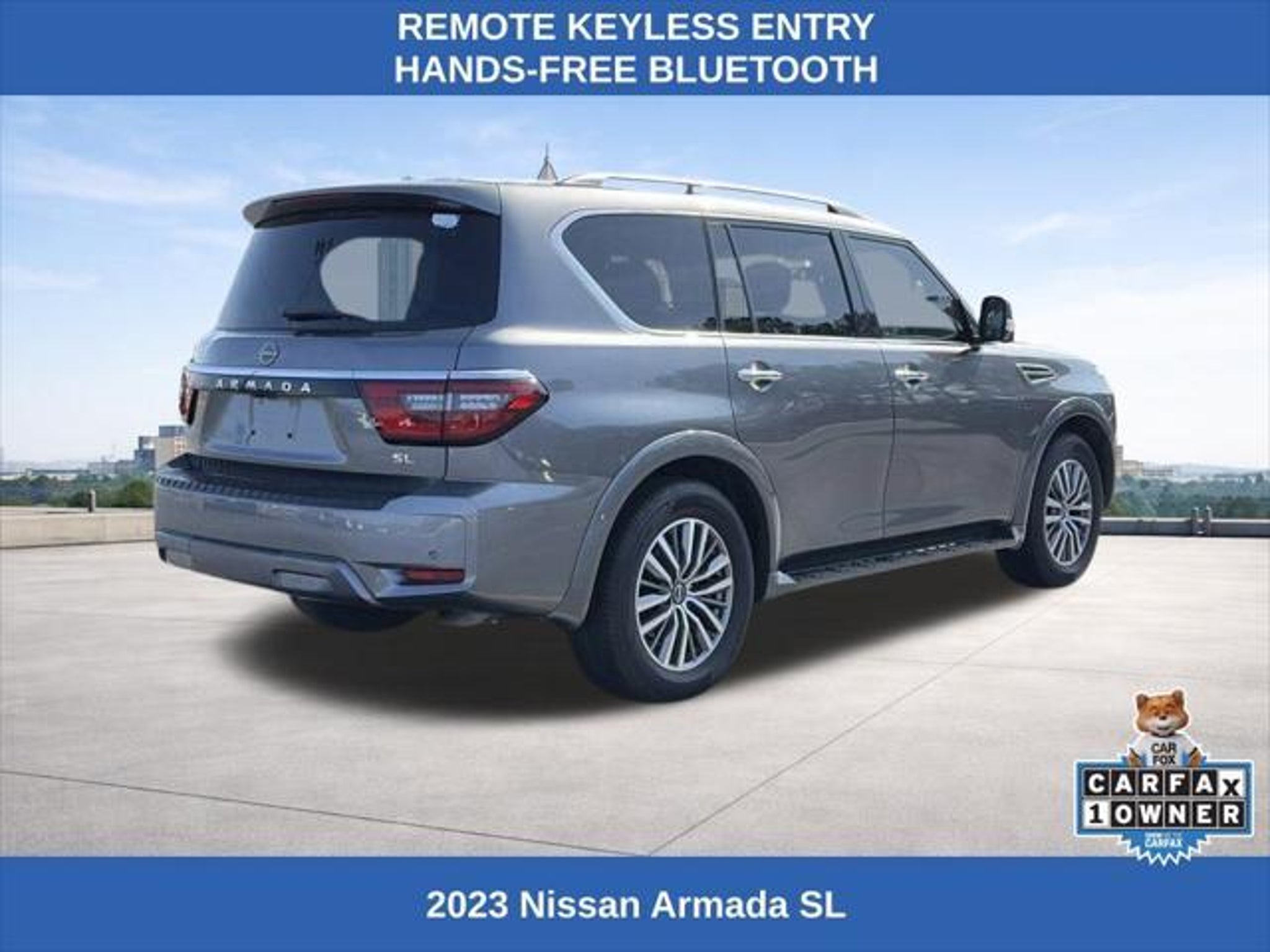 Elevate your driving experience with this stunning 2023 Nissan Armada SL. This powerhouse SUV boasts an impressive 5.6L V8 engine that delivers 400 horsepower, coupled with a smooth 7-speed automatic transmission and the confidence of four-wheel drive. With a spacious interior, seating for up to eight, and a wealth of premium features, the Armada SL is the perfect companion for your adventures. - Four-Wheel Drive (4WD) - 3rd Row Seating - Clean CARFAX - Factory GPS Navigation - Power Sunroof/Moonroof - Heated and Cooled Seats - Apple CarPlay/Android Auto - Remote Engine Start - Remote Keyless Entry - Hands-Free Bluetooth - Power Liftgate - Rear Backup Camera - Factory Alloy Wheels - Nissan Safety Shield 360 - Intelligent Forward Collision Warning - Automatic Emergency Braking with Pedestrian Detection - Rear Automatic Braking - Intelligent Lane Intervention - Lane Departure Warning - Rear Cross-Traffic Collision-Avoidance Assist - Blind Spot Warning The Armada SL's impressive list of features is further enhanced by its premium Bose 13-speaker audio system, dual-zone automatic climate control, and a power-adjustable driver's seat with memory settings. Enjoy the convenience of the NissanConnect infotainment system with seamless integration of your smartphone via Apple CarPlay and Android Auto. With a fuel efficiency rating of 13 MPG in the city and 18 MPG on the highway, the Armada SL strikes a balance between power and efficiency, making it a practical choice for your daily commute and weekend adventures alike. We want to ensure you have all the details you need! Our pricing and information are presented with utmost accuracy. Please keep in mind that prices and incentives can vary depending on your location, and they are subject to change. It's important to note that government fees such as tax, tag, title, and WRA are not included in our prices. At Nissan of Lithia Springs, we proudly offer automotive loan financing through our esteemed Finance Department. Contact one of our dedicated finance managers to learn more about our Credit Assistance Program. Our exceptional team of sales and finance associates is committed to providing top-notch care and addressing all your automotive concerns with the utmost dedication. Visit our dealership at 811 Thornton Rd, Lithia Springs, GA, or call us at . We are looking forward to assisting all our customers in the greater Atlanta area with great enthusiasm and sincerity.