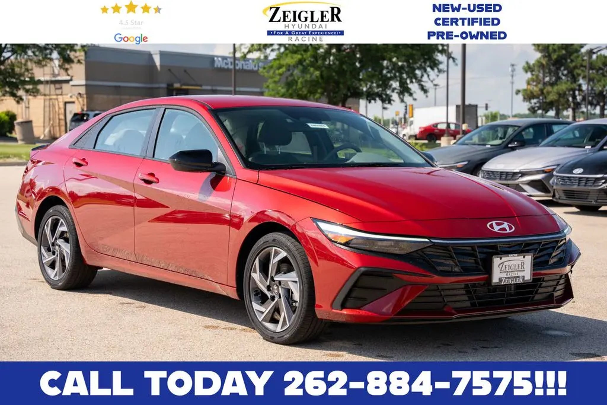 Clean CARFAX. Recent Arrival! Odometer is 1853 miles below market average! 2025 Hyundai Elantra Hybrid SEL Sport FWD I4 6-Speed Dual Clutch Ultimate Red Metallic I4. Zeigler Hyundai Genesis of Racine is excited to offer this 2025 Hyundai Elantra Hybrid in Ultimate Red Metallic with Gray Cloth. This Elantra Hybrid is well equipped with I4, along with Option Group 01, I4, 17 x 7.0J Alloy Wheels, 4-Wheel Disc Brakes, 6 Speakers, ABS brakes, Air Conditioning, Alloy wheels, AM/FM radio: SiriusXM, Apple CarPlay & Android Auto, Auto High-beam Headlights, Automatic temperature control, Brake assist, Bumpers: body-color, Cargo Net, Carpeted Floor Mats, Delay-off headlights, Driver door bin, Driver vanity mirror, Dual front impact airbags, Dual front side impact airbags, Electronic Stability Control, Emergency communication system: Bluelink, Exterior Parking Camera Rear, First Aid Kit, Front anti-roll bar, Front Bucket Seats, Front Center Armrest, Front dual zone A/C, Front reading lights, Front wheel independent suspension, Fully automatic headlights, Heated door mirrors, Illuminated entry, Leather Shift Knob, Leather steering wheel, Low tire pressure warning, Navigation System, Occupant sensing airbag, Outside temperature display, Overhead airbag, Overhead console, Panic alarm, Passenger door bin, Passenger vanity mirror, Power door mirrors, Power steering, Power windows, Premium Cloth Seat Trim, Radio: AM/FM/HD/SiriusXM Display Audio, Rear Bumper Applique, Rear side impact airbag, Rear window defroster, Remote keyless entry, Reversible Cargo Tray, Security system, Speed control, Speed-sensing steering, Spoiler, Steering wheel mounted audio controls, Tachometer, Telescoping steering wheel, Tilt steering wheel, Traction control, Trip computer, and Variably intermittent wipers and additional premium features designed for comfort, performance, and technology. "FOR A GREAT EXPERIENCE,"� visit Zeigler Hyundai of Racine"”where we take pride in treating our customers like family. With a 4.7 Google rating, we are one of the highest-rated Hyundai dealers in Wisconsin. Every vehicle undergoes a multi-point safety inspection and is professionally cleaned and disinfected for your peace of mind. Conveniently located off I-94 at Exit 333, we proudly serve Racine, Mount Pleasant, Sturtevant, Kenosha, Milwaukee, Oak Creek, Waukesha, and surrounding areas. Our Factory-Certified Sales Consultants consistently earn top customer satisfaction ratings across Southeast Wisconsin. We specialize in new Hyundai, Certified Pre-Owned Hyundai, Genesis, and a wide selection of vehicles to fit all budgets. Competitive purchase and lease options are available. Browse our full inventory online at zeiglerhyundairacine.com. Don't see the exact vehicle you want? We'll help locate one and can arrange shipping or delivery if needed. Price may exclude certification, accessories, LoJack, packages, taxes, doc fees, or other dealer fees. Dealer not responsible for pricing errors. Used vehicle values vary based on mileage, condition, and usage. Some vehicles may be subject to unrepaired safety recalls. Check recall status by VIN at vinrcl.safercar.gov. See dealer for complete details. 49/52 City/Highway MPG 49/52 City/Highway MPG Zeigler relies on the help of third parties and various data feeds to maintain in its website(s). Although every reasonable effort has been made to ensure the accuracy of the information contained on this site, absolute accuracy cannot be guaranteed and mistakes occasionally happen. Contact Zeigler to verify vehicle availability. Although every reasonable effort has been made to ensure the accuracy of the information contained on this site, absolute accuracy cannot be guaranteed. This site, and all information and materials appearing on it, are presented to the user as is without warranty of any kind, either express or implied. All vehicles are subject to prior sale. Manufacturer Suggested Retail Price may not reflect the actual sale pr