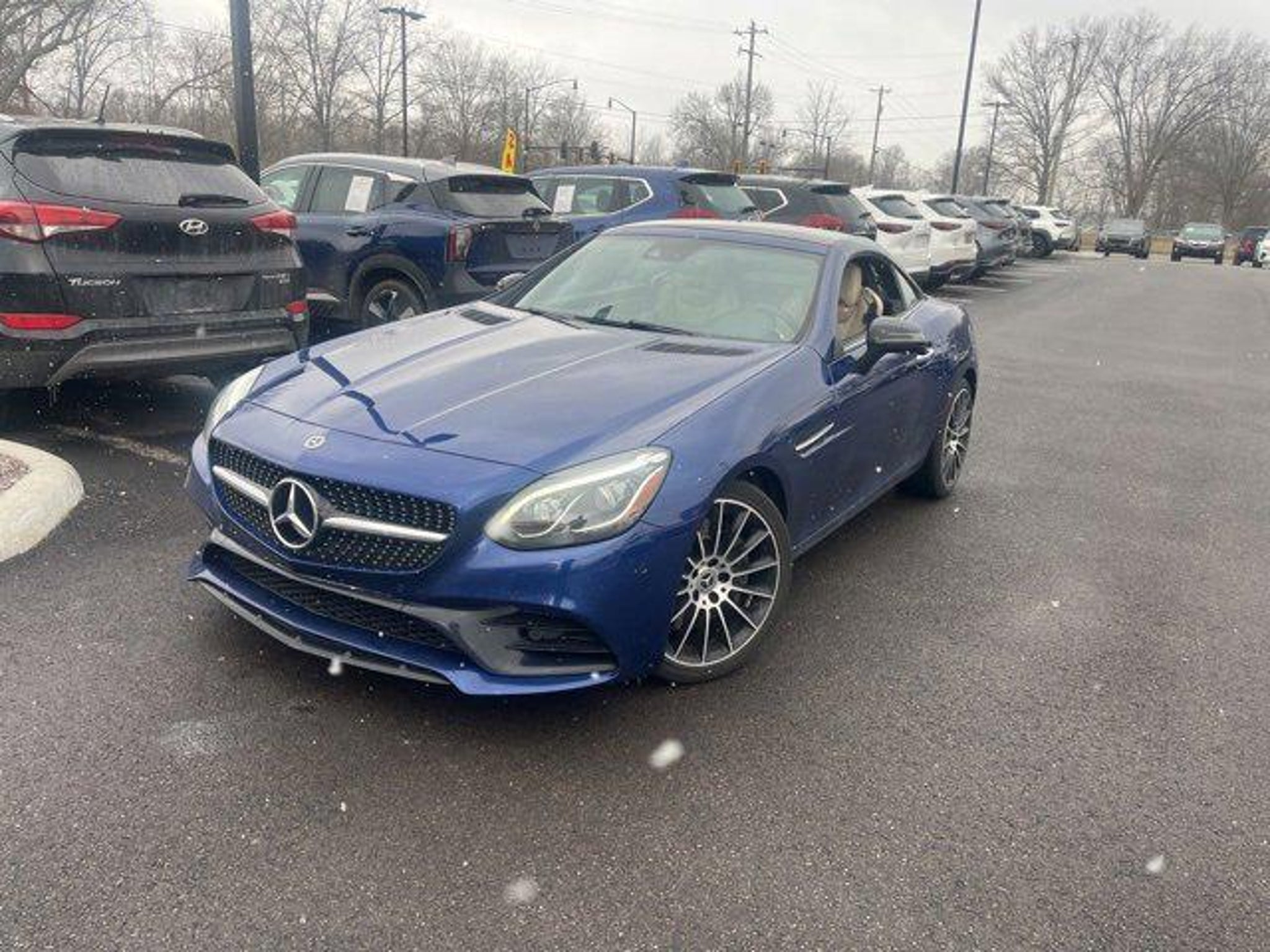 Jeff Wyler Eastgate Auto Mall is excited to offer this terrific 2020 Mercedes-Benz SLC SLC 300 in Blue. Well equipped with: 4-Way Lumbar Support, 4-Wheel Disc Brakes, 8 Speakers, ABS brakes, Air Conditioning, Alloy wheels, AM/FM radio, Anti-whiplash front head restraints, Auto tilt-away steering wheel, Auto-dimming door mirrors, Auto-dimming Rear-View mirror, Brake assist, Bumpers: body-color, CD player, Child-Seat-Sensing Airbag, Compass, Convertible HardTop, Convertible roof lining, Convertible roof wind blocker, Delay-off headlights, Driver door bin, Driver vanity mirror, Dual front impact airbags, Dual front side impact airbags, Electronic Stability Control, Emergency communication system: Mercedes me connect, Exterior Parking Camera Rear, Four wheel independent suspension, Front anti-roll bar, Front Bucket Seats, Front Center Armrest, Front reading lights, Fully automatic headlights, Garage door transmitter: Homelink, Glass rear window, Heated door mirrors, Illuminated entry, Integrated roll-over protection, Knee airbag, Leather Shift Knob, Low tire pressure warning, MB-Tex Upholstery, Memory seat, Occupant sensing airbag, Outside temperature display, Overhead airbag, Overhead console, Panic alarm, Passenger door bin, Passenger vanity mirror, Power convertible roof, Power door mirrors, Power driver seat, Power passenger seat, Power Seats w/Memory, Power steering, Power windows, Radio data system, Radio: Audio System ICU Hi-Line, Rain sensing wipers, Rear anti-roll bar, Rear fog lights, Rear window defroster, Remote keyless entry, Security system, Speed control, Speed-sensing steering, Sport steering wheel, Steering wheel memory, Steering wheel mounted audio controls, Tachometer, Telescoping steering wheel, Tilt steering wheel, Traction control, Trip computer, Turn signal indicator mirrors, Variably intermittent wipers, Weather band radio, and Wheels: 17 10-Spoke. Ask about available certifications. Used vehicles 10 years of age or newer with less than 100,000 miles are eligible for the Wyler Assurance Program, but eligible vehicles must pass our reconditioning process and multi-point inspection. Provided the vehicle passes inspection, vehicles will be eligible for the 6 month/6,000 mile limited warranty. The 6 month/6,000 mile limited warranty is NOT available on AS-IS vehicles, wholesale vehicles, lease buyback/pass-thru vehicles or un-inspected vehicles. Note that this program can also apply to vehicles where the remaining factory coverage is less than 6 months or 6,000 miles. Please check the Federal Trade Commission (FTC) Buyers guide on the vehicle for full details as to whether or not warranty coverage may apply. Contact Dealer for additional details. The Wyler Assurance 6 month/6,000 Mile limited warranty ends 6 months from the date of the Retail Purchase Agreement (BUYERS ORDER) or when the vehicle's odometer registers 6,000 additional miles to the mileage listed on the BUYERS ORDER, whichever comes first. Your Deductible - The warranty holder on your contract pays the first $100 of each covered repair.