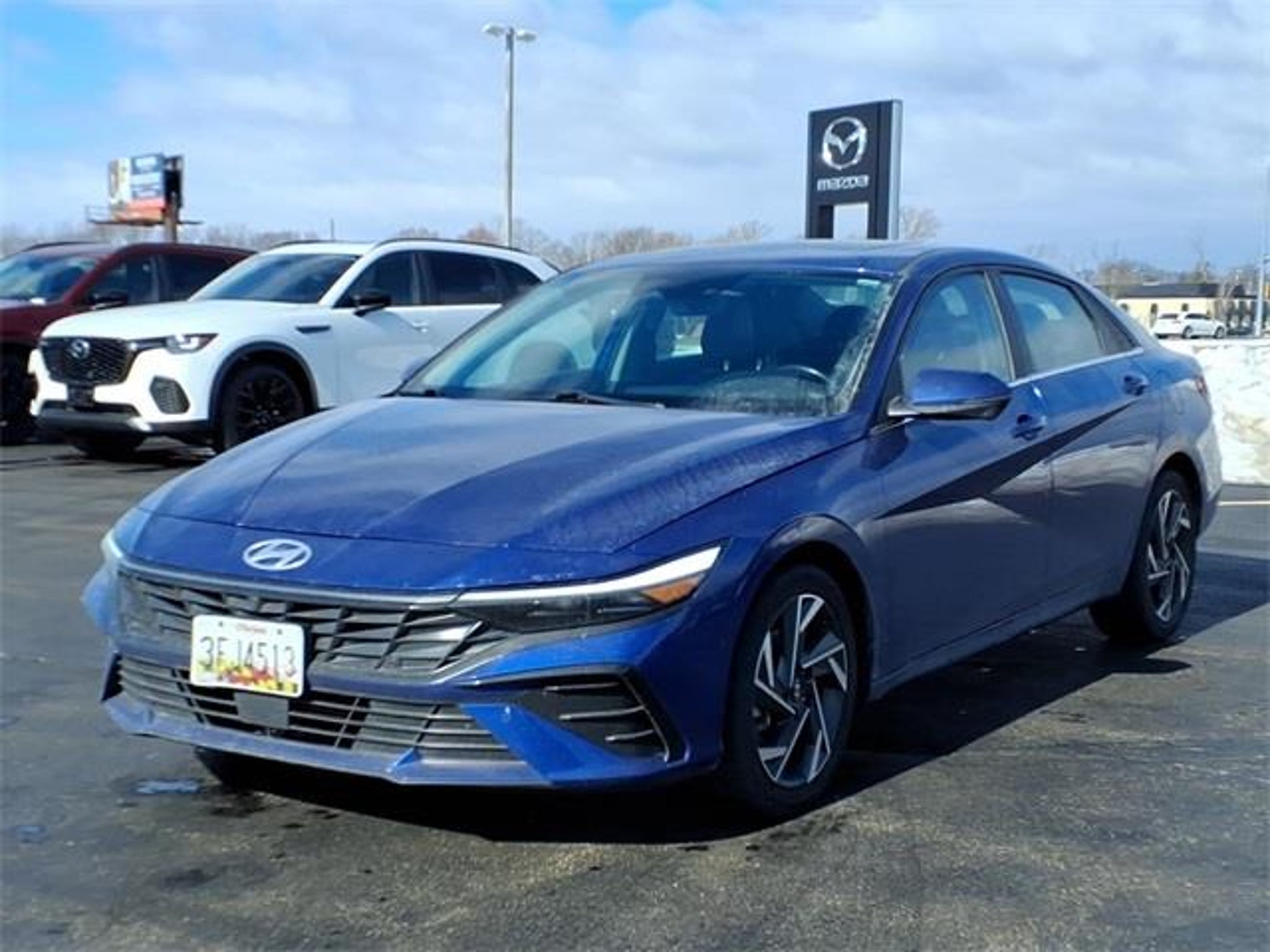 Shop where customers always come first! We're Green on south 6th Street in Springfield. **Green Mazda Internet Price Includes Trade In Assistance. We NEED TRADES. Without trades we run out of vehicles like this to offer to our customers!**See dealer for details. 2024 Hyundai Elantra Limited Intense Blue CVT FWD I4 Priced below KBB Fair Purchase Price! 31/40 City/Highway MPG Option Group 01, 17 x 7.0J Alloy Wheels, 4-Wheel Disc Brakes, 8 Speakers, ABS brakes, Air Conditioning, Alloy wheels, AM/FM radio: SiriusXM, Apple CarPlay & Android Auto, Auto High-beam Headlights, Auto-dimming Rear-View mirror, Automatic temperature control, Brake assist, Bumpers: body-color, Delay-off headlights, Driver door bin, Driver vanity mirror, Dual front impact airbags, Dual front side impact airbags, Electronic Stability Control, Emergency communication system: Bluelink, Front anti-roll bar, Front Bucket Seats, Front Center Armrest, Front dual zone A/C, Front reading lights, Front wheel independent suspension, Fully automatic headlights, Heated door mirrors, Heated Front Bucket Seats, Heated front seats, Illuminated entry, Leatherette Seats, Low tire pressure warning, Navigation System, Occupant sensing airbag, Outside temperature display, Overhead airbag, Overhead console, Panic alarm, Passenger door bin, Passenger vanity mirror, Power door mirrors, Power driver seat, Power moonroof, Power steering, Power windows, Radio: AM/FM/HD/SiriusXM Display Audio, Rear seat center armrest, Rear side impact airbag, Rear window defroster, Remote keyless entry, Security system, Speed control, Speed-sensing steering, Split folding rear seat, Steering wheel mounted audio controls, Tachometer, Telescoping steering wheel, Tilt steering wheel, Traction control, Trip computer, Turn signal indicator mirrors, and Variably intermittent wipers.