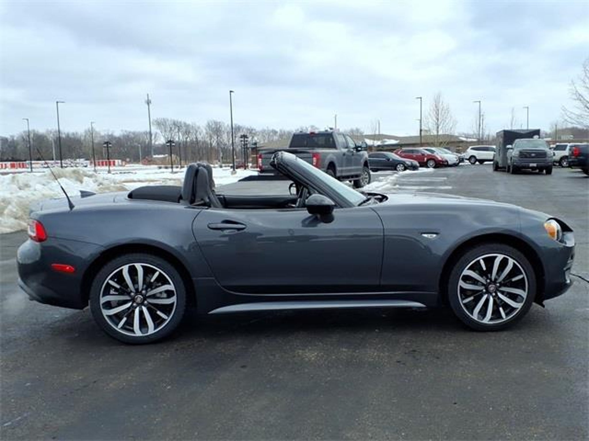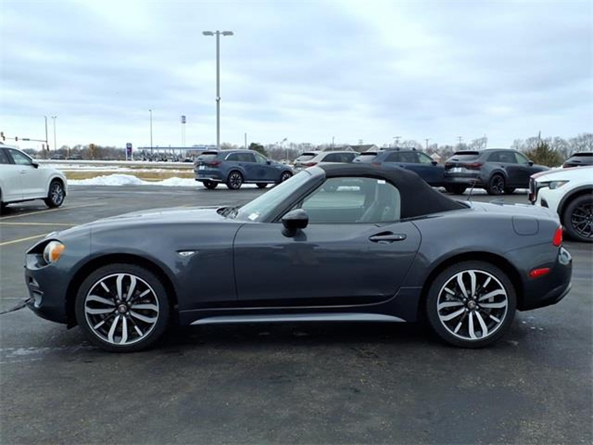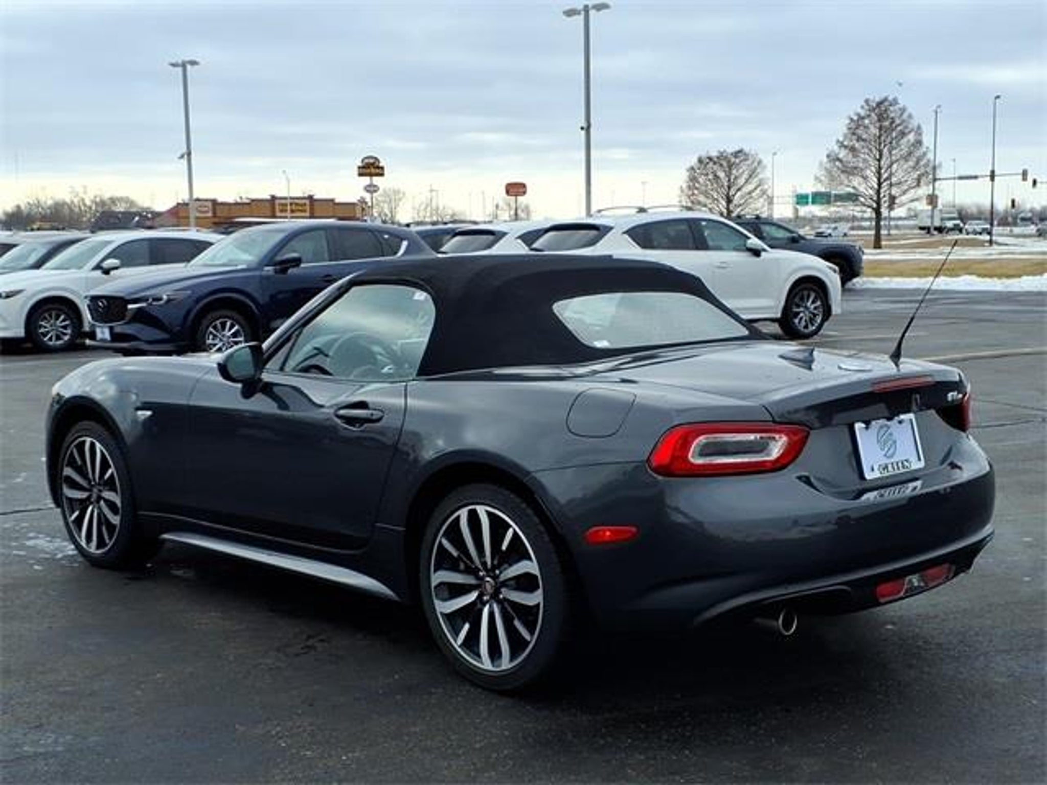 Shop where customers always come first! We're Green on south 6th Street in Springfield. **Green Mazda Internet Price Includes Trade In Assistance. We NEED TRADES. Without trades we run out of vehicles like this to offer to our customers!**See dealer for details. 2019 Fiat 124 Spider Classica Moda Gray Metallic 6-Speed Aisin Automatic RWD 1.4L I4 16V MultiAir Turbocharged Priced below KBB Fair Purchase Price! 25/36 City/Highway MPG Quick Order Package 22F Urbana Edition (1-Yr SiriusXM Radio Service, Bridgestone Brand Tires, Dual Bright Exhaust Tips, Front Fog Lamps, Matte Gray Interior Accents, Piano Black Exterior Accents, SiriusXM Satellite Radio, Urbana Leather/Microfiber Seats, Wheels: 17 x 7.0 Black Diamond Aluminum, Wrapped Instrument Cluster Hood, and Wrapped Lower Instrument Panel), 16 x 6.5 Silver Aluminum Wheels, 4-Wheel Disc Brakes, 6 Speakers, ABS brakes, Air Conditioning, Alloy wheels, AM/FM radio, Brake assist, Bumpers: body-color, Convertible roof lining, Convertible roof wind blocker, Delay-off headlights, Driver vanity mirror, Dual front impact airbags, Dual front side impact airbags, Electronic Stability Control, Exterior Parking Camera Rear, Four wheel independent suspension, Front anti-roll bar, Front Bucket Seats, Front Center Armrest, Front reading lights, Glass rear window, Illuminated entry, Leather Shift Knob, Low tire pressure warning, Manufacturer's Statement of Origin, Occupant sensing airbag, Outside temperature display, Panic alarm, Passenger vanity mirror, Power door mirrors, Power steering, Power windows, Premium Cloth Seats, Radio: AM/FM Bluetooth w/7 Display, Rear anti-roll bar, Rear window defroster, Remote keyless entry, Speed control, Speed-sensing steering, Steering wheel mounted audio controls, Tachometer, Tilt steering wheel, Traction control, Trip computer, and Variably intermittent wipers.