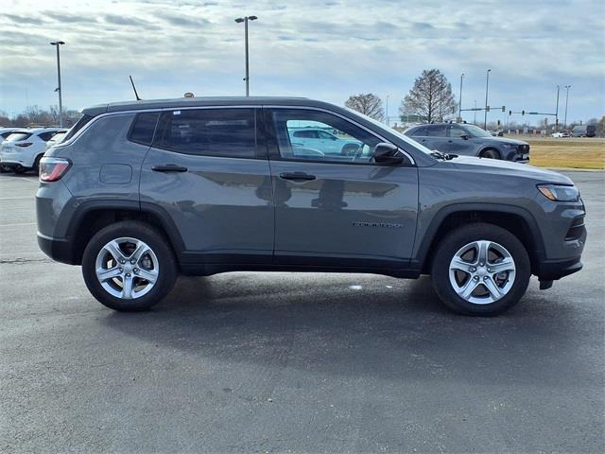 Shop where customers always come first! We're Green on south 6th Street in Springfield. **Green Mazda Internet Price Includes Trade In Assistance. We NEED TRADES. Without trades we run out of vehicles like this to offer to our customers!**See dealer for details. 2023 Jeep Compass Sport Sting-Gray Clearcoat 8-Speed Automatic 4WD 2.0L I4 DOHC Recent Arrival! 24/32 City/Highway MPG MOPAR Interior Protection Package (DISC) (MOPAR All-Weather Floor Mats and MOPAR Molded Cargo Tray), Quick Order Package 29A, 17 x 7.0 Aluminum Wheels, 3.73 Final Drive Ratio, 4-Wheel Disc Brakes, 6 Speakers, ABS brakes, Air Conditioning, Alloy wheels, AM/FM radio: SiriusXM, Brake assist, Bumpers: body-color, Cloth Low-Back Bucket Seats, Compass, Delay-off headlights, Driver door bin, Driver vanity mirror, Dual front impact airbags, Dual front side impact airbags, Electronic Stability Control, Four wheel independent suspension, Front anti-roll bar, Front Bucket Seats, Front Center Armrest w/Storage, Front License Plate Bracket, Front reading lights, Fully automatic headlights, Heated door mirrors, Illuminated entry, Knee airbag, Low tire pressure warning, Occupant sensing airbag, Outside temperature display, Overhead airbag, Overhead console, Panic alarm, ParkView Rear Back-Up Camera, Passenger door bin, Passenger vanity mirror, Power door mirrors, Power steering, Power windows, Radio: Uconnect 5 w/10.1 Display, Rear anti-roll bar, Rear seat center armrest, Rear window defroster, Rear window wiper, Remote keyless entry, Security system, Speed control, Split folding rear seat, Spoiler, Steering wheel mounted audio controls, Tachometer, Telescoping steering wheel, Tilt steering wheel, Traction control, Trip computer, and Variably intermittent wipers.