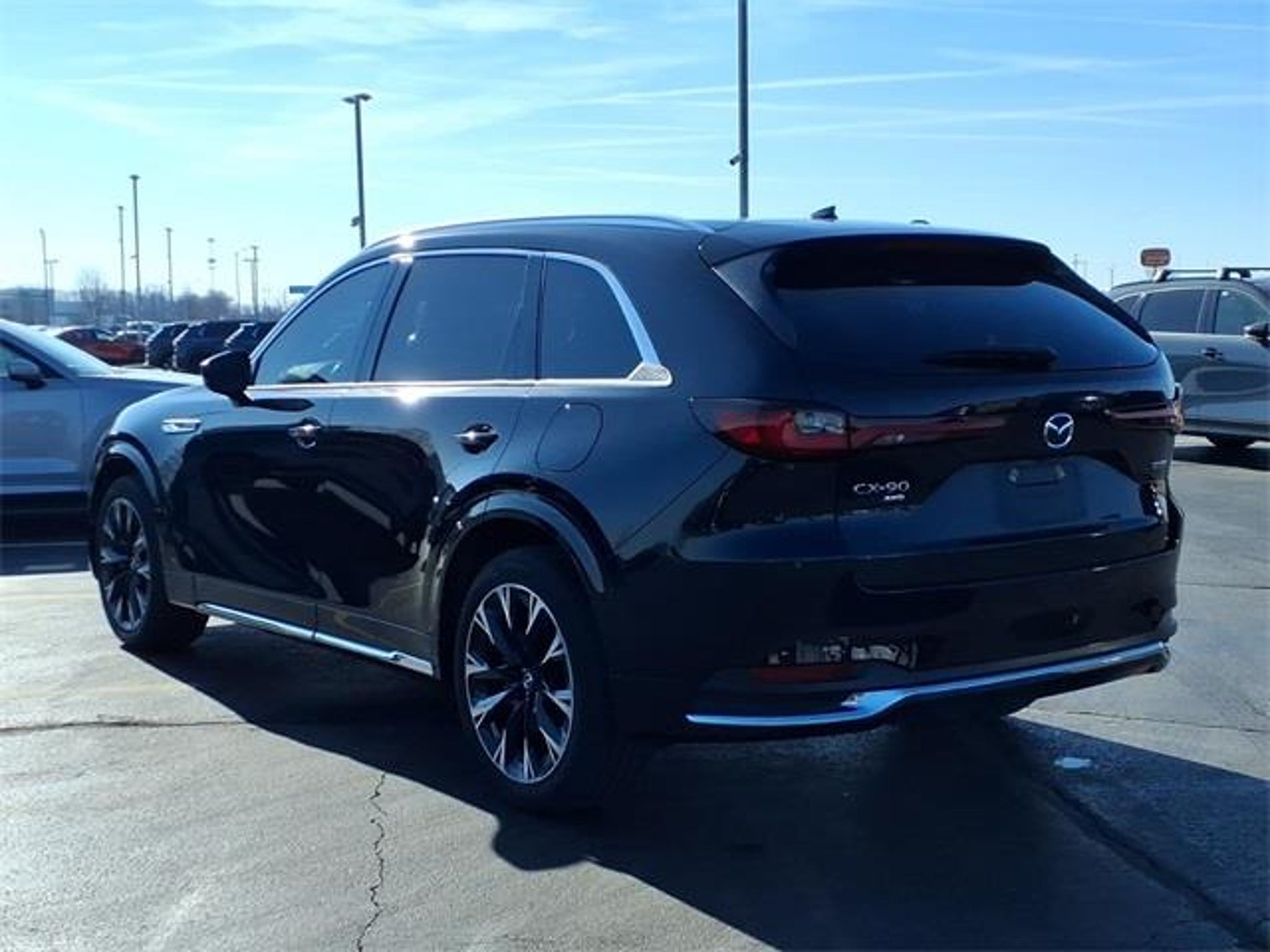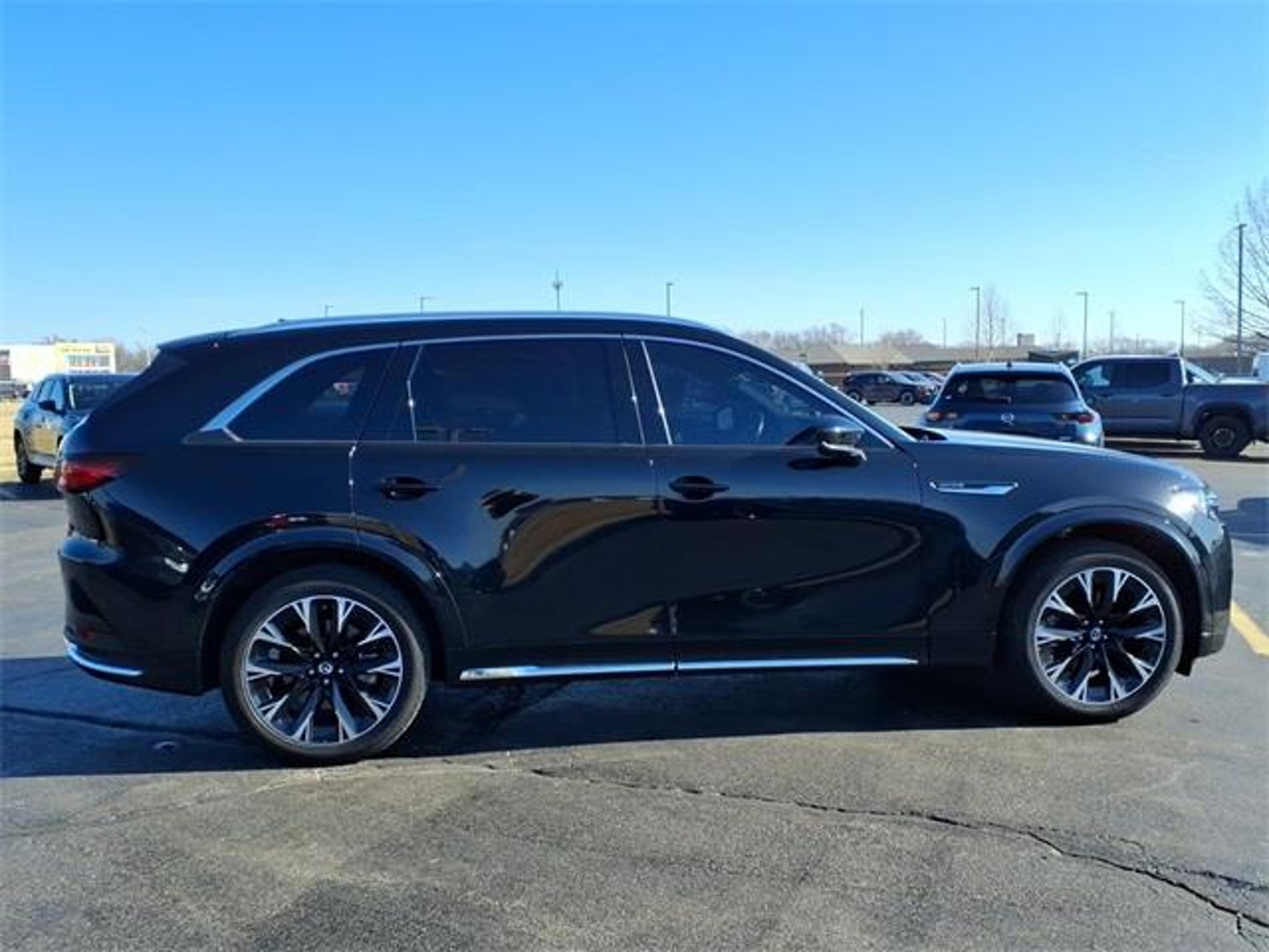 Shop where customers always come first! We're Green on south 6th Street in Springfield. **Green Mazda Internet Price Includes Trade In Assistance. We NEED TRADES. Without trades we run out of vehicles like this to offer to our customers!**See dealer for details. 2024 Mazda CX-90 3.3 Turbo S Premium Plus Jet Black Mica 8-Speed Automatic AWD I6 Turbo Recent Arrival! 23/28 City/Highway MPG 12 Speakers, 3.692 Axle Ratio, 3rd row seats: bench, 4-Wheel Disc Brakes, ABS brakes, Air Conditioning, Alloy wheels, AM/FM radio: SiriusXM, Auto High-beam Headlights, Auto-dimming door mirrors, Auto-dimming Rear-View mirror, Automatic temperature control, Brake assist, Bumpers: body-color, Compass, Delay-off headlights, Driver door bin, Driver vanity mirror, Dual front impact airbags, Dual front side impact airbags, E911 Automatic Emergency Notification, Electronic Stability Control, Emergency communication system: MAZDA CONNECT, Four wheel independent suspension, Front anti-roll bar, Front Bucket Seats, Front Center Armrest w/Storage, Front dual zone A/C, Front reading lights, Fully automatic headlights, Garage door transmitter: HomeLink, Heads-Up Display, Heated door mirrors, Heated front seats, Heated rear seats, Heated steering wheel, Heated/Ventilated Front Bucket Seats, Illuminated entry, Infotainment System Voice Command, Knee airbag, Leather Shift Knob, Leather steering wheel, Low tire pressure warning, Mazda Connected Services, Mazda Navigation System, Memory seat, Nappa Leather Seat Trim w/Quilting, Navigation system: MAZDA CONNECT, Occupant sensing airbag, Outside temperature display, Overhead airbag, Overhead console, Pandora Internet Radio Integration, Panic alarm, Passenger door bin, Passenger vanity mirror, Power door mirrors, Power driver seat, Power Liftgate, Power moonroof, Power passenger seat, Power steering, Power windows, Radio Broadcast Data System Program Information, Radio data system, Radio: AM/FM w/Bose Audio Sound System, Rain sensing wipers, Rear air conditioning, Rear anti-roll bar, Rear reading lights, Rear seat center armrest, Rear window defroster, Rear window wiper, Remote keyless entry, Security system, SMS Text Msg Audio Delivery & Reply, Speed control, Speed-sensing steering, Split folding rear seat, Spoiler, Steering wheel memory, Steering wheel mounted audio controls, Tachometer, Telescoping steering wheel, Tilt steering wheel, Traction control, Trip computer, Turn signal indicator mirrors, Variably intermittent wipers, Ventilated front seats, Ventilated rear seats, and Wheels: 21 x 9.5J Aluminum Alloy.