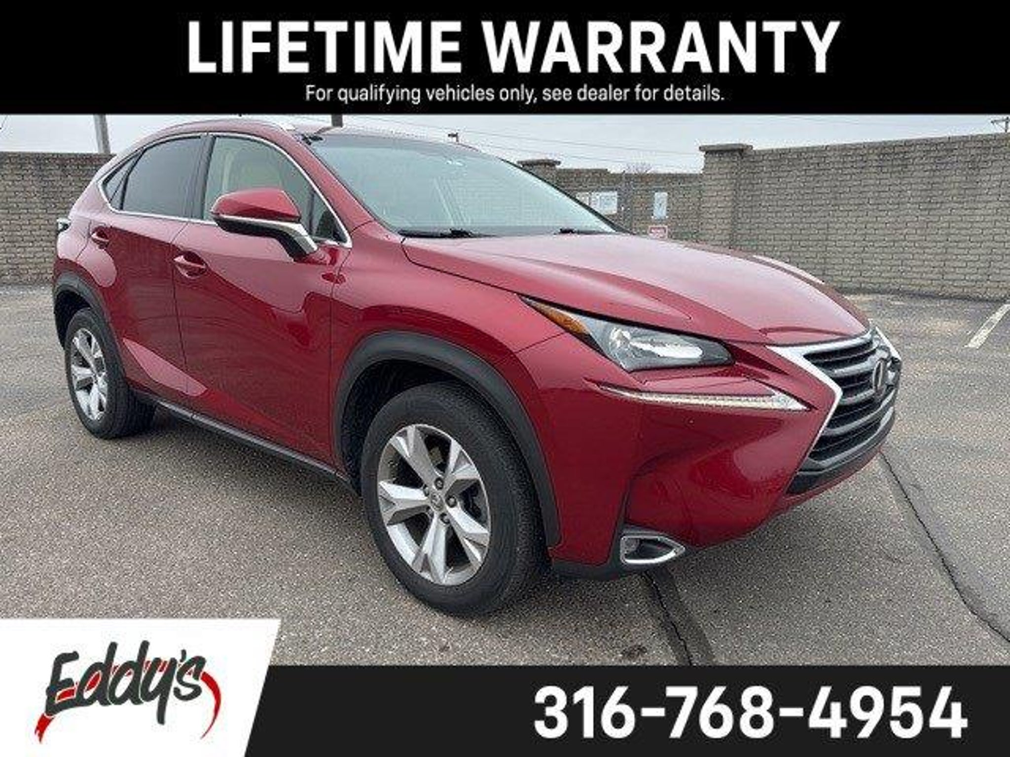 Turn heads and take corners with confidence in this bold and brilliant 2017 Lexus NX 200t dressed in eye-catching Matador Red Mica. With 119,867 miles, this luxury crossover has already mastered the art of smooth commuting, stylish arriving, and making your driveway look significantly more upscale.Powered by a spirited 2.0L 16V DOHC turbocharged engine paired with a 6-speed automatic transmission, this NX 200t delivers the perfect blend of efficiency and yes, it's got some get-up-and-go. The All-Wheel Drive system adds confidence when the weather decides to get dramatic, keeping you steady whether it's rain, snow, or just that one overly aggressive roundabout.Inside, Lexus craftsmanship shines with premium comfort, intuitive technology, and the kind of quiet ride that makes you forget the outside world exists. It's refined without being boring. Athletic without being loud about it. Basically, it wears a tailored suit but still knows how to have fun.With its sharp styling, turbocharged performance, and legendary Lexus reliability, this NX 200t is ready for daily commutes, weekend escapes, and everything in between.Eddy's Chevy - Always Ready!