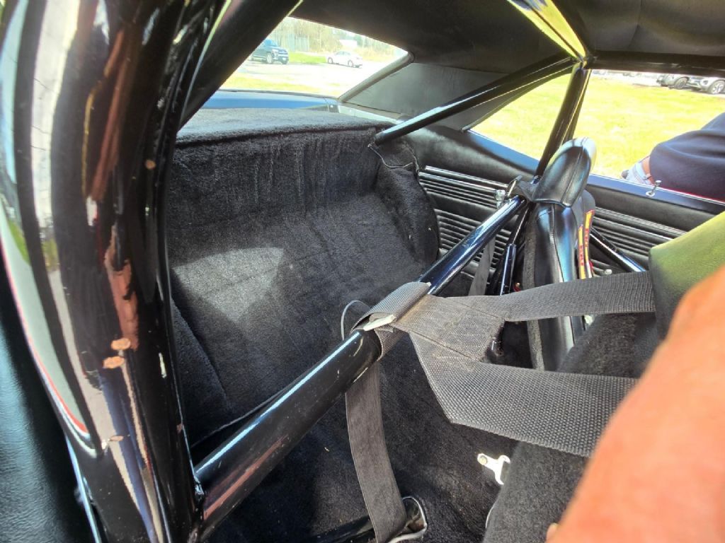 The standard black bucket seat interior is in very nice condition including the seats, carpets, headliner and door panels. It also has full instrumentation, a factory center console with a Hurst 1/4 stick shifter, and a 10-point roll-cage too. It is all VERY-VERY NICE!!