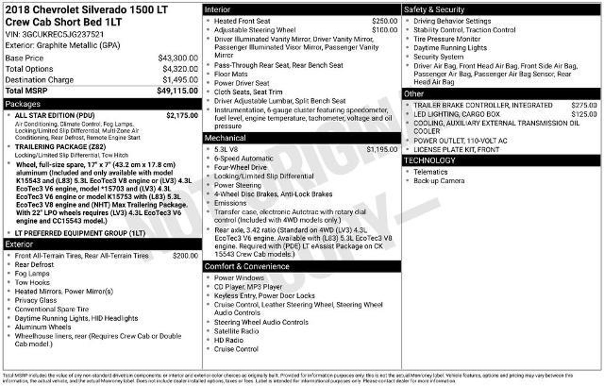 2018 Chevrolet Silverado 1500 LT LT1 Graphite Metallic Certified. Ford Blue Certified. **Every Ford Blue Certified Pre-Owned vehicle comes with a 90 day/4,000-mile comprehensive limited warranty covering more than 1000 components, 24-Hour Roadside Assistance, Rental Car Reimbursement see dealer for full details. Peace of mind comes with the 139-point inspection completed by our own Ford Certified Technician. Upfront pricing, all the time on every vehicle. Vehicle history report. If a vehicle does not meet our strict criteria, we will not certify it! It is that simple! Click on the Options and Tech Specs Below for additional information.