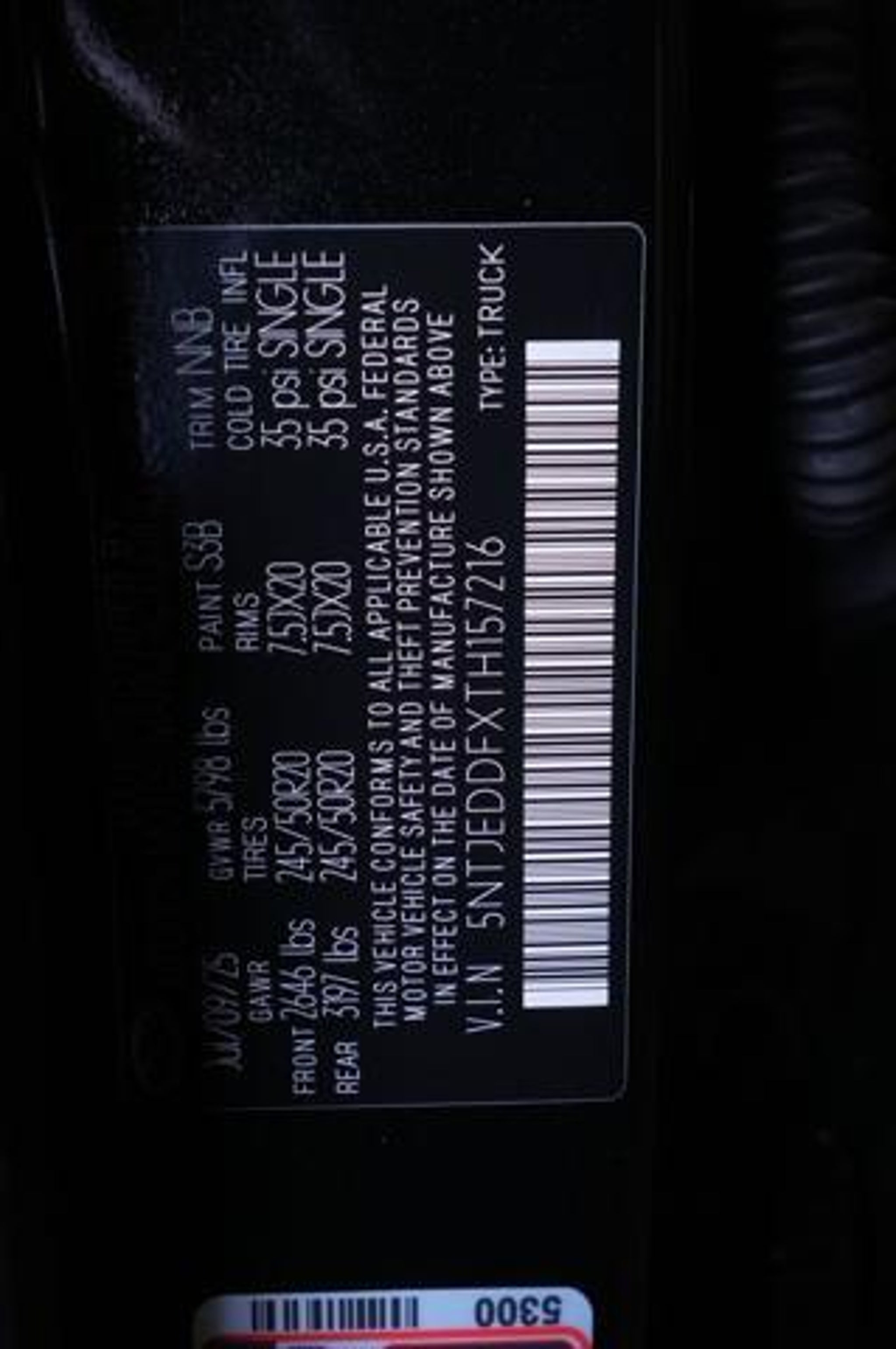 VIN 5NTJEDDFXTH157216