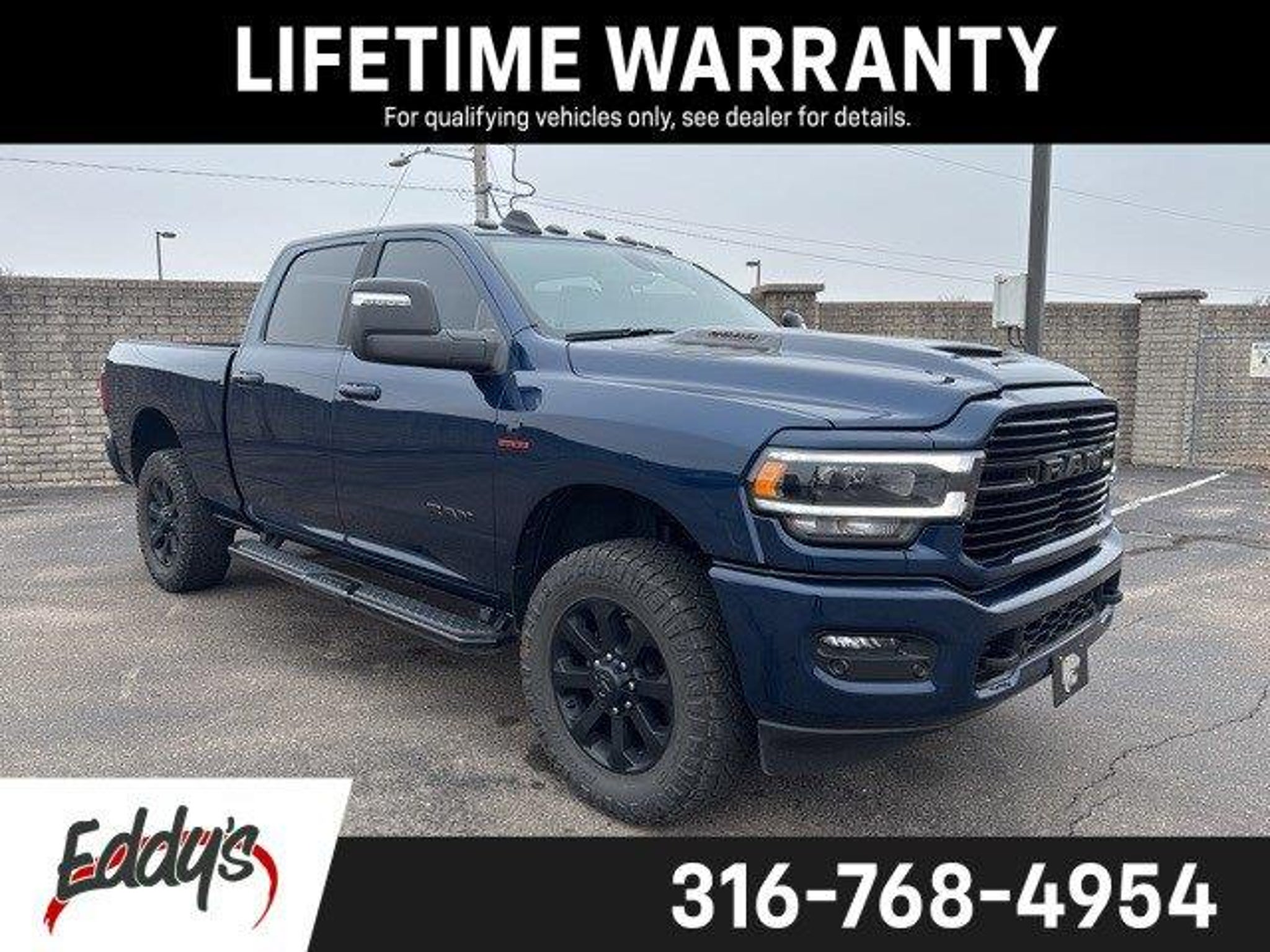 Heavy-duty attitude meets heavy-duty muscle.This 2024 Ram 2500 Laramie Night 4WD in Patriot Blue Pearlcoat isn't just a truck - it's a torque-producing, job-crushing, trailer-taming machine with a tuxedo on.Under the hood sits the legendary Cummins 6.7L I6 Turbodiesel paired with a 6-speed automatic transmission. Translation: mountains become suggestions. Boats, campers, equipment trailers - they all suddenly feel lighter. With 20,769 miles, this diesel powerhouse is just getting warmed up and ready for the long haul.The Laramie Night package brings the blackout treatment that turns heads without trying. Darkened accents, bold stance, and that deep Patriot Blue Pearlcoat give it a look that says, Yes, I work hard - and I clean up well too.Inside, it's all premium comfort and smart tech. Leather-trimmed seating, advanced infotainment, driver-assist features, and a cabin quiet enough to actually enjoy your music - even while that Cummins is out there doing serious business.4WD capability means job sites, back roads, snow days, and hunting trips are all fair game. This truck doesn't ask if it can handle it. It simply handles it.Big torque. Bold style. Built to tow, haul, and haul some more all while looking like it owns the road.If you're ready for diesel strength with Laramie-level refinement, this 2500 Night is waiting.Eddy's Chevy - Always Ready!