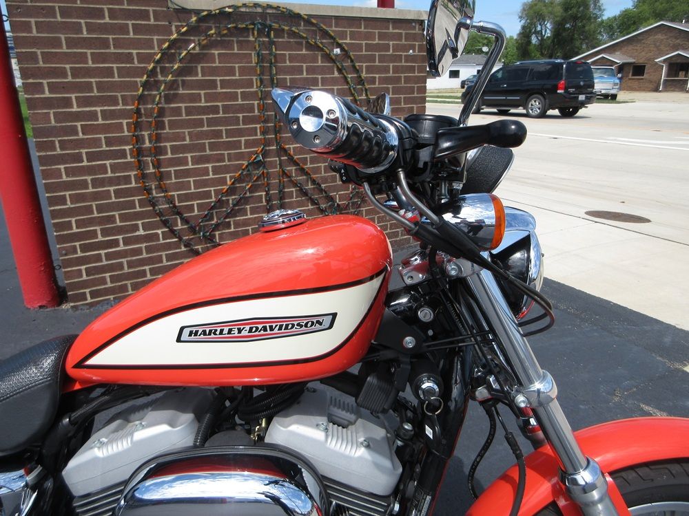 Since 1957 the Sportster has combined quick and responsive handling with a flat torque curve and unmistakable styling that make the Sportster a true American icon. The 1200R Roadster embodies a radical transformation with a redesigned powertrain that boasts high performance cams, high flow combustion chambers & ports and boasts an increased 6000 rpm redline making it a blast to ride! Other features worth mentioning are the dual front disc brakes, the tachometer and a completely redesigned fuel tank adorned with special graphics. This particular example was optioned in Racing Orange and has been accessorized with a factory security system, a quick release passenger backrest, custom driver & passenger footpegs with matching highway pegs, ISO handgrips, a Live to Ride gas cap and it sounds just plain nasty ripping through its performance exhaust system. It was just thoroughly serviced at which time it received a new battery, new tires, a new air filter, a carb kit as well as all new fluids, filters and gaskets. It is in excellent condition and only has 14,105 miles on it. We have priced it below its appraised value of $5,975 for a quick sale so if you like what you see time is of the essence!