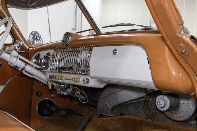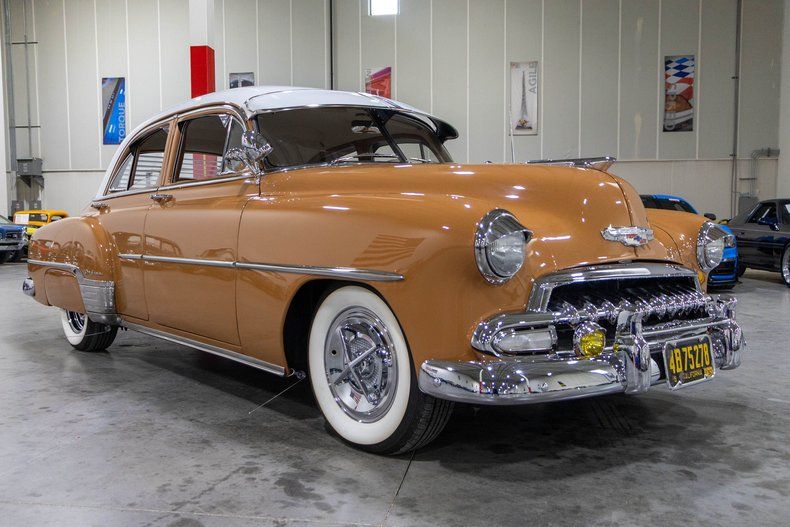 The 1952 Chevrolet Deluxe represents one of the most iconic designs of early post-war American motoring, and this particular example captures that classic look with an unmistakable presence. Finished in a rich caramel brown exterior complemented by a contrasting white roof and period-correct sun shade, this Chevy has an incredibly cool stance that draws attention wherever it goes. Sitting on an adjustable air ride suspension, the car can cruise comfortably or drop down for that perfect low, custom look that highlights its smooth body lines and classic proportions.