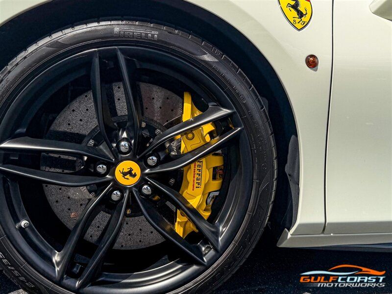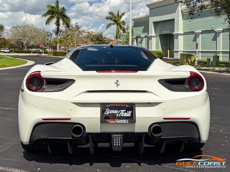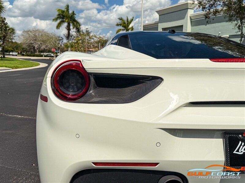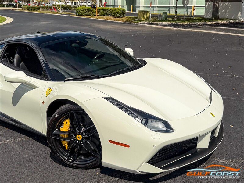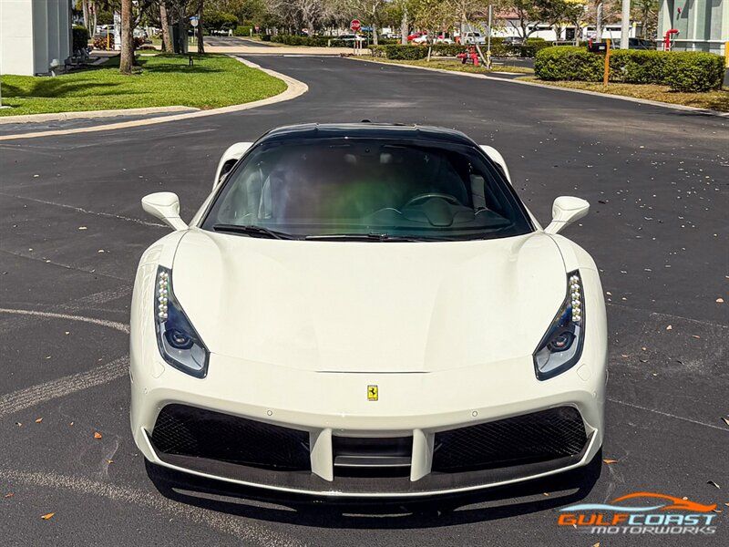 "2017 Ferrari 488 GTB. Bianco Avus Exterior with Nero Leather Interior. Features Include: 660 Horsepower Twin Turbo 3.9L V8 Engine, Seven-Speed Dual Clutch Automatic Transmission, Magnetic Suspension Damping, 20"" 10-Spoke Wheels in a Black Finish, Yellow Calipers, Two Tone Body Painting, Carbon Fiber Rear Air Ducts, Carbon Fiber Side Air Splitter, Carbon Fiber Under-Door Cover, Exterior Sill Kick in Carbon Fiber, Suspension Lifter, Sport Exhaust System, Carbon Fiber Front Spoiler, Scuderia Ferrari Shields, Adaptive Front Light System, LED Tail Lights, LED DRLs, Carbon Fiber Driver Zones + LEDS, Carbon Fiber Central Bridge, Carbon Fiber Upper Tunnel Trim, Dash Inserts in Carbon Fiber, Daytona Style Seats, Cavallino Stitched on Head Rests, Passenger Display, White Rev Counter, Full Electric Seats, Colored Special Stitching, Alcantara Perforated Inserts, Upper Part in Colored Leather, Parking Camera, Front & Rear Parking Sensors, Power Folding Outside Mirrors, Keyless Access & Ignition with Push Button Start, Smartphone Integration, Bluetooth, Navigation, HomeLink. Priced at only $279,995.00. Financing available. We ship worldwide. We pay top dollar for lightly used sports cars! Call or text our Product Specialists today at 239-522-2262 or email us at sales@gcmworks.com. Fees and Taxes: $1199.00 Doc Fee on all Purchases. Out of state buyers are responsible for all state, county, city taxes and fees, as well as title/registration fees in the state that the vehicle will be registered. -- INSTALLED FEATURES: Air filtration, Front air conditioning: automatic climate control, Front air conditioning zones: dual, Airbag deactivation: passenger switch, Front airbags: dual, Side airbags: front, Antenna type: diversity / element, Auxiliary audio input: Bluetooth / iPod/iPhone / jack / USB, Hard drive: 30GB, In-Dash CD: DVD audio / MP3 Playback / single disc, Premium brand: JBL, Radio: AM/FM / touch screen display / voice operated, Radio data system, Satellite radio: SiriusXM, Speed sensitive volume control, Subwoofer: 1, Total speakers: 12, Watts: 1280, ABS: 4-wheel, Electronic brakeforce distribution, Electronic parking brake, Front brake type: carbon ceramic disc, Power brakes, Premium brakes: Brembo, Rear brake type: carbon ceramic disc, Center console trim: leather, Dash trim: leather, Door sill trim: aluminum, Door trim: leather, Floor mat material: carpet, Floor material: carpet, Floor mats: front, Foot pedal trim: aluminum, Interior accents: aluminum, Steering wheel trim: alloy / leather, Cargo area light, Center console: front console with armrest and storage, Cruise control, Cupholders: front, Multi-function remote: keyless entry / panic alarm / trunk release, One-touch windows: 2, Power outlet(s): 12V front, Power steering: variable/speed-proportional, Power windows: lockout button, Push-button start, Reading lights: front, Rearview mirror: manual day/night, Steering wheel: tilt and telescopic, Steering wheel mounted controls: audio / paddle shifter / phone, Storage: door pockets, Tool kit, Vanity mirrors: passenger, Door handle color: body-color, Exhaust: dual tip, Exhaust tip color: stainless steel, Front bumper color: body-color, Grille color: black, Ground effects/lower spoilers, Mirror color: body-color, Rear bumper color: body-color, Rear spoiler: lip, Rear spoiler color: body-color, Window trim: black, Smartphone integration: Apple CarPlay, Clock, Compass, Customizable instrument cluster, Digital odometer, External temperature display, Fuel economy display: MPG / range, Gauge: tachometer, Instrument cluster screen size: 5 in. (dual), Multi-function display, Trip odometer, Warnings and reminders: coolant temperature warning / lamp failure / low battery / low fuel level / low oil pressure / low washer fluid / maintenance due, Daytime running lights: LED, Headlight cleaners, Headlights: auto delay off / auto on/off / HID/Xenon / self-leveling, Rear fog lights, Taillights: LED, Side mirror adjustments: power / power folding, Side mirrors: heated, Auto start/stop, Battery: maintenance-free, Battery saver, Drive mode selector, Limited slip differential: rear, Mid-mounted engine, Automatic hazard warning lights, Crumple zones: front / rear, Emergency interior trunk release, Impact sensor: fuel cut-off, Parking sensors: rear, Emergency locking retractors: front, Front seatbelts: 3-point, Seatbelt force limiters: front, Seatbelt pretensioners: front, Seatbelt warning sensor: front, Driver seat manual adjustments: 4 / reclining, Front headrests: 2 / integrated, Front seat type: sport bucket, Passenger seat manual adjustments: 4 / reclining, Upholstery: premium leather, Anti-theft system: alarm / interior motion sensor / perimeter alarm / vehicle immobilizer, Power door locks: auto-locking, Stability control, Traction control, Active suspension, Driver adjustable suspension: ride control, Front shock type: monotube, Front spring type: coil, Front stabilizer bar, Front struts, Front suspension classification: independent, Front suspension type: double wishbone, Rear shock type: monotube, Rear spring type: coil, Rear stabilizer bar, Rear suspension classification: independent, Rear suspension type: multi-link, Suspension control: magnetic, Tuned suspension: sport, Electronic messaging assistance: voice operated / with read function, Navigation system: hard drive / touch screen display / voice operated, Wireless data link: Bluetooth, Spare tire kit: inflator kit / tire sealant, Tire Pressure Monitoring System, Wheels: aluminum alloy, Front wipers: rain sensing / variable intermittent, Power windows: safety reverse, Tinted glass, Window defogger: rear"