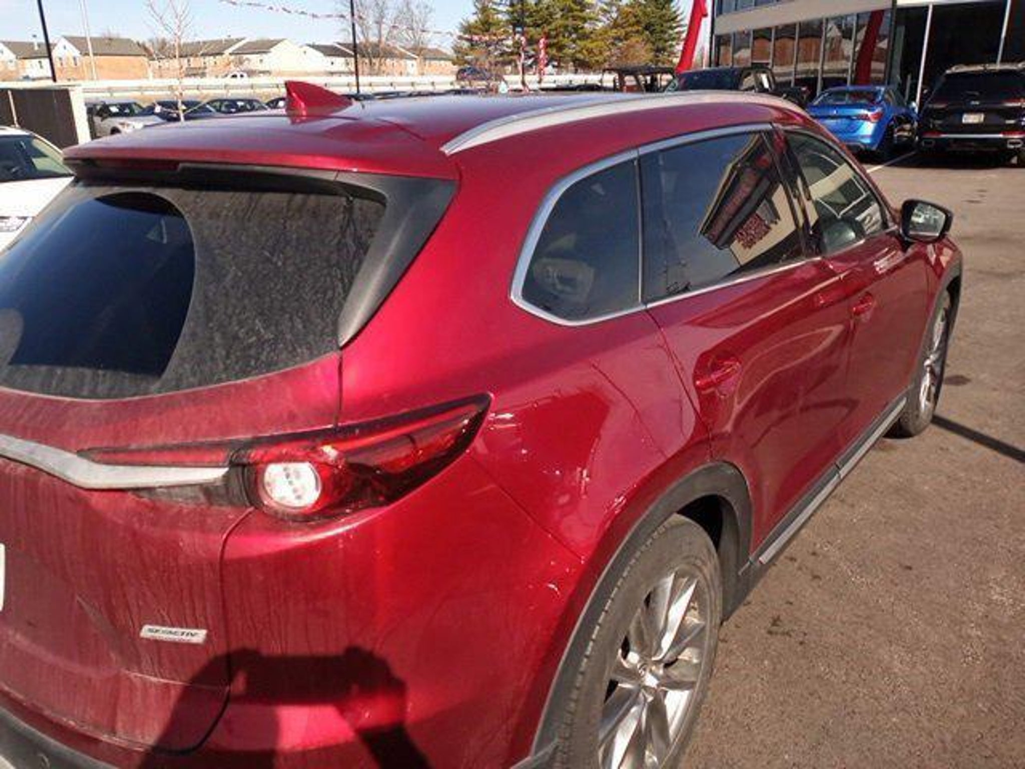 Jeff Wyler Eastgate Auto Mall is excited to offer this fantastic-looking 2019 Mazda CX-9 Grand Touring in Soul Red Crystal Metallic. Well equipped with: 12 Speakers, 3rd row seats: bench, 4-Wheel Disc Brakes, ABS brakes, Aha Internet Radio, Air Conditioning, Alloy wheels, AM/FM radio: SiriusXM, AppLink/Apple CarPlay and Android Auto, Auto High-beam Headlights, Auto-dimming Rear-View mirror, Automatic temperature control, Axle Ratio: 4.411, Brake assist, Bumpers: body-color, Compass, Delay-off headlights, Driver door bin, Driver vanity mirror, Dual front impact airbags, Dual front side impact airbags, E911 Automatic Emergency Notification, Electronic Stability Control, Emergency communication system: MAZDA CONNECT, Four wheel independent suspension, Front anti-roll bar, Front Bucket Seats, Front Center Armrest, Front dual zone A/C, Front fog lights, Front reading lights, Fully automatic headlights, Garage door transmitter: HomeLink, Heads-Up Display, Heated door mirrors, Heated front seats, Heated rear seats, Heated steering wheel, Heated/Ventilated Front Bucket Seats, Illuminated entry, Infotainment System Voice Command, Leather Shift Knob, Leather steering wheel, Leather-Trimmed Seats, Low tire pressure warning, Mazda Navigation System, Memory seat, Navigation System, Occupant sensing airbag, Outside temperature display, Overhead airbag, Overhead console, Pandora Internet Radio, Panic alarm, Passenger door bin, Passenger vanity mirror, Power door mirrors, Power driver seat, Power Liftgate, Power moonroof, Power passenger seat, Power steering, Power windows, Radio Broadcast Data System Program Information, Radio data system, Radio: AM/FM Sound System w/Bose Audio, Rain sensing wipers, Rear air conditioning, Rear anti-roll bar, Rear reading lights, Rear seat center armrest, Rear window defroster, Rear window wiper, Remote keyless entry, Roof rack: rails only, SiriusXM Satellite Radio, SMS Text Msg Audio Delivery & Reply, Speed control, Speed-sensing steering, Split folding rear seat, Spoiler, Steering wheel mounted audio controls, Stitcher Internet Radio, Tachometer, Telescoping steering wheel, Tilt steering wheel, Traction control, Trip computer, Turn signal indicator mirrors, Variably intermittent wipers, Ventilated front seats, and Wheels: 20 x 8.5J Aluminum Alloy. Clean CARFAX. Awards: * 2019 KBB.com Brand Image Awards Ask about available certifications. Used vehicles 10 years of age or newer with less than 100,000 miles are eligible for the Wyler Assurance Program, but eligible vehicles must pass our reconditioning process and multi-point inspection. Provided the vehicle passes inspection, vehicles will be eligible for the 6 month/6,000 mile limited warranty. The 6 month/6,000 mile limited warranty is NOT available on AS-IS vehicles, wholesale vehicles, lease buyback/pass-thru vehicles or un-inspected vehicles. Note that this program can also apply to vehicles where the remaining factory coverage is less than 6 months or 6,000 miles. Please check the Federal Trade Commission (FTC) Buyers guide on the vehicle for full details as to whether or not warranty coverage may apply. Contact Dealer for additional details. The Wyler Assurance 6 month/6,000 Mile limited warranty ends 6 months from the date of the Retail Purchase Agreement (BUYERS ORDER) or when the vehicle's odometer registers 6,000 additional miles to the mileage listed on the BUYERS ORDER, whichever comes first. Your Deductible - The warranty holder on your contract pays the first $100 of each covered repair.