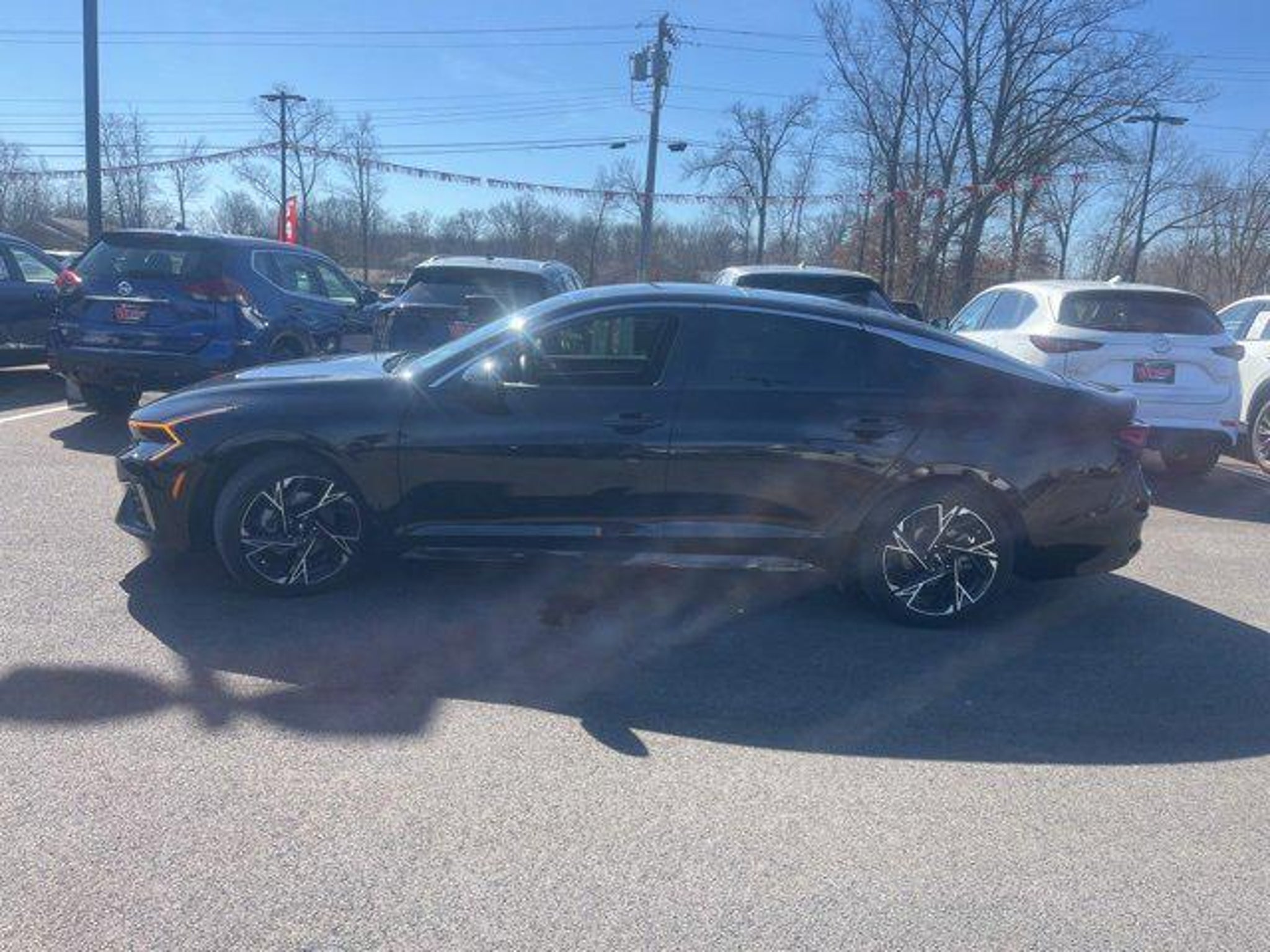 Jeff Wyler Eastgate Auto Mall is very proud to offer this charming 2025 Kia K5 GT-Line in Aurora Black Pearl. Well equipped with: GT-Line Premium Package (Active Sound Design, Bose Premium Audio, LED Interior Lighting, and Panoramic Sunroof), 4-Wheel Disc Brakes, 6 Speakers, ABS brakes, Air Conditioning, Alloy wheels, AM/FM radio: SiriusXM, Auto High-beam Headlights, Automatic temperature control, Brake assist, Bumpers: body-color, Carpeted Floor Mats, Delay-off headlights, Driver door bin, Driver vanity mirror, Dual front impact airbags, Dual front side impact airbags, Electronic Stability Control, Emergency communication system: Kia Connect (includes 1 year free trial), Four wheel independent suspension, Front anti-roll bar, Front Bucket Seats, Front Center Armrest, Front dual zone A/C, Front fog lights, Front reading lights, Fully automatic headlights, Heated door mirrors, Heated Front Bucket Seats, Heated front seats, Heated steering wheel, Illuminated entry, Knee airbag, Leather Shift Knob, Leather steering wheel, Low tire pressure warning, Navigation System, Occupant sensing airbag, Outside temperature display, Overhead airbag, Overhead console, Panic alarm, Passenger door bin, Passenger vanity mirror, Power door mirrors, Power driver seat, Power steering, Power windows, Radio data system, Radio: AM/FM Audio System, Rear anti-roll bar, Rear seat center armrest, Rear side impact airbag, Rear window defroster, Remote keyless entry, Security system, Speed control, Speed-sensing steering, Split folding rear seat, Sport steering wheel, Steering wheel mounted audio controls, Tachometer, Telescoping steering wheel, Tilt steering wheel, Traction control, Trip computer, Turn signal indicator mirrors, Variably intermittent wipers, and Wheels: 18 x 7.5J Gloss Black Machined Finish Alloy. Clean CARFAX. Ask about available certifications. Used vehicles 10 years of age or newer with less than 100,000 miles are eligible for the Wyler Assurance Program, but eligible vehicles must pass our reconditioning process and multi-point inspection. Provided the vehicle passes inspection, vehicles will be eligible for the 6 month/6,000 mile limited warranty. The 6 month/6,000 mile limited warranty is NOT available on AS-IS vehicles, wholesale vehicles, lease buyback/pass-thru vehicles or un-inspected vehicles. Note that this program can also apply to vehicles where the remaining factory coverage is less than 6 months or 6,000 miles. Please check the Federal Trade Commission (FTC) Buyers guide on the vehicle for full details as to whether or not warranty coverage may apply. Contact Dealer for additional details. The Wyler Assurance 6 month/6,000 Mile limited warranty ends 6 months from the date of the Retail Purchase Agreement (BUYERS ORDER) or when the vehicle's odometer registers 6,000 additional miles to the mileage listed on the BUYERS ORDER, whichever comes first. Your Deductible - The warranty holder on your contract pays the first $100 of each covered repair.