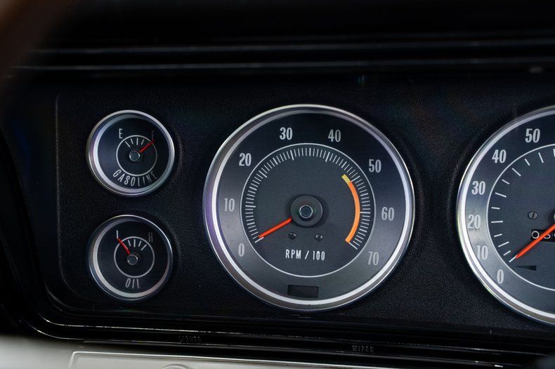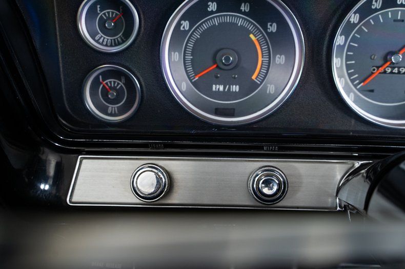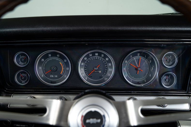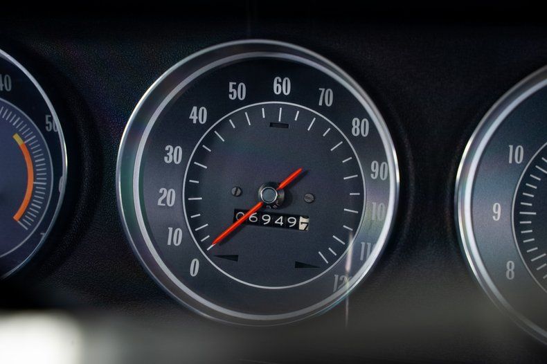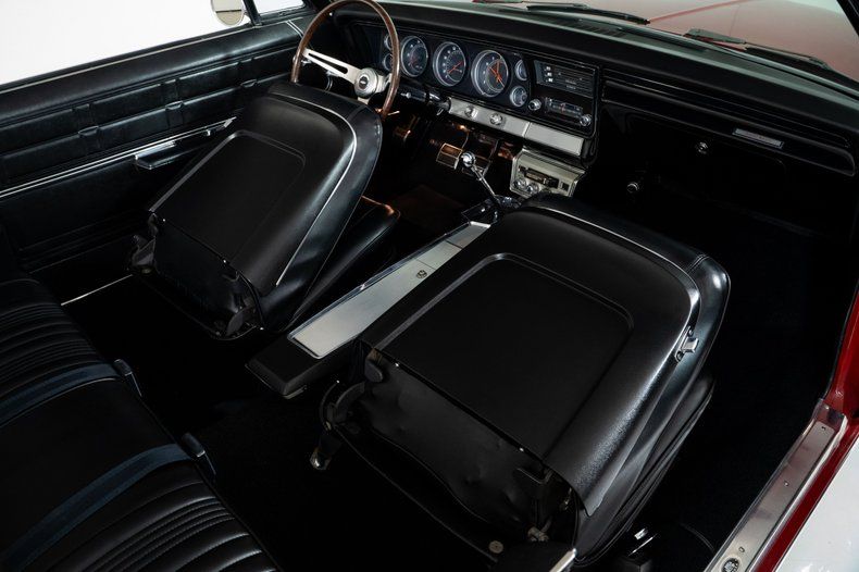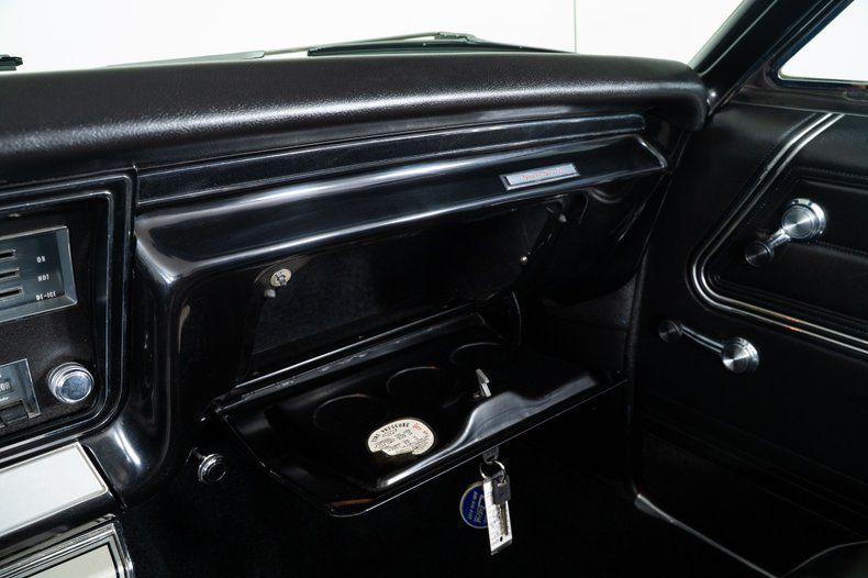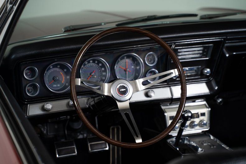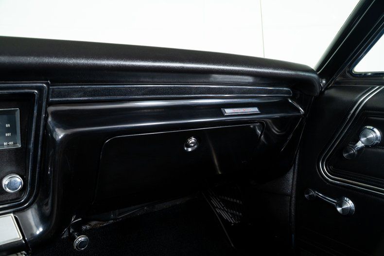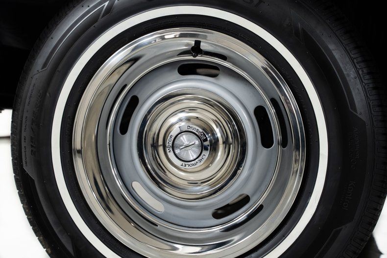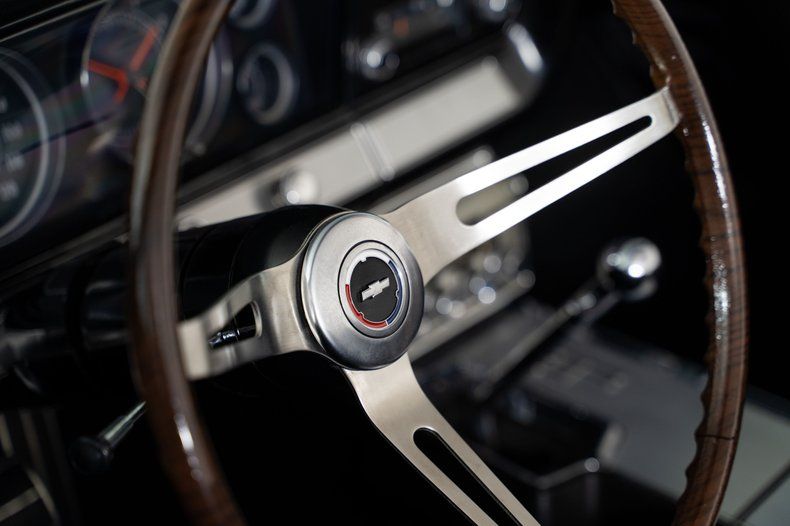 Inside, the black vinyl bucket seats and center console reinforce the Super Sport character of this Impala Super Sport. Power steering and power front disc brakes add comfort and confidence behind the wheel, and the factory-installed 8-track player is a great vintage touch that reflects the era.