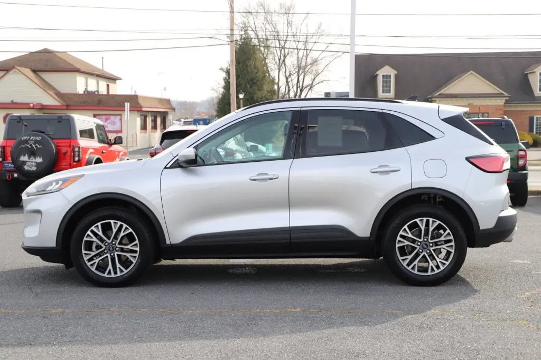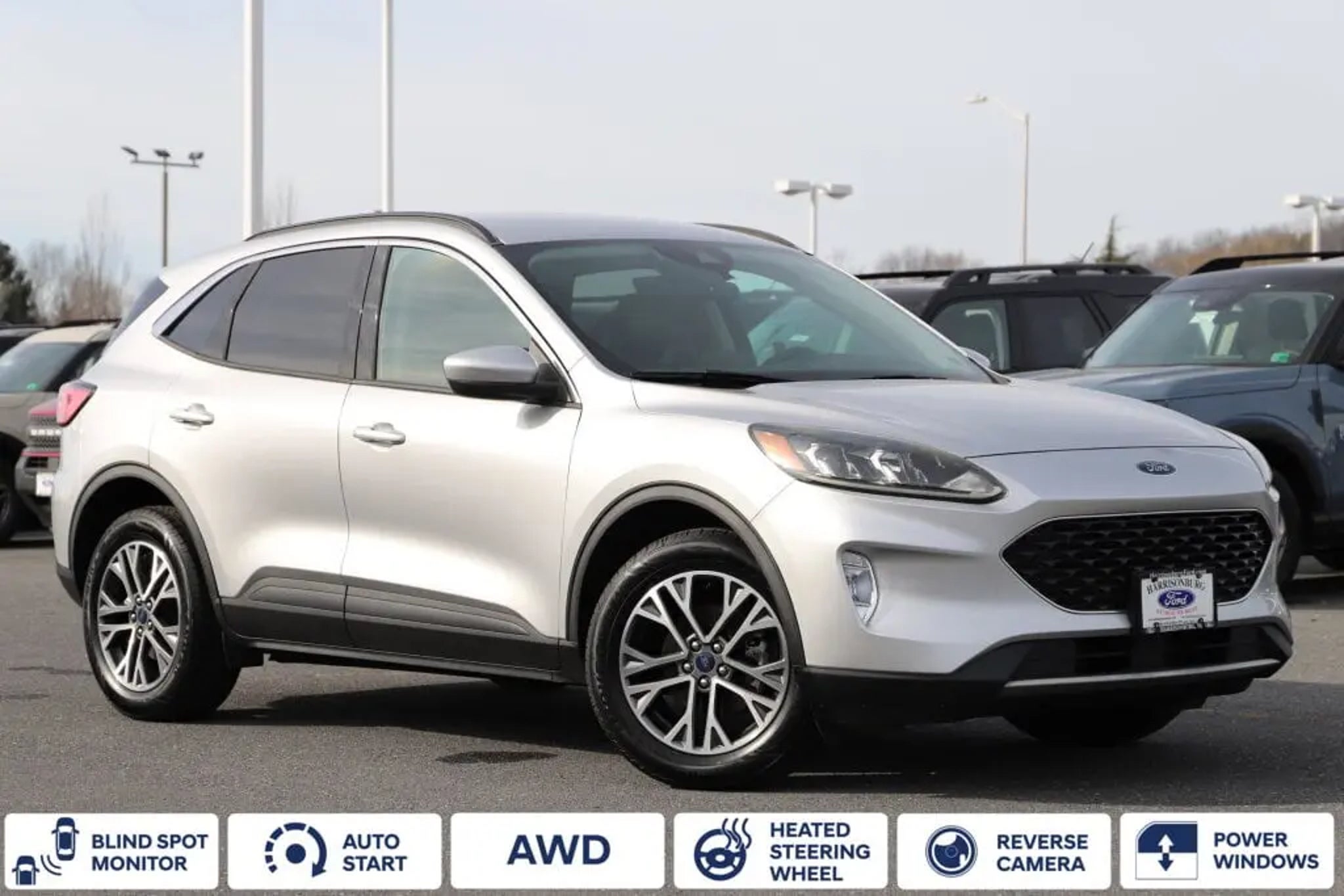 Recent Arrival! Escape SEL, 4D Sport Utility, 1.5L EcoBoost, 8-Speed Automatic, AWD, Ingot Silver, Ebony, 18 Machined-Face Aluminum Wheels, 3.81 axle ratio, 4-Wheel Disc Brakes, 6 Speakers, ABS brakes, Adaptive Cruise Control w/Stop-and-Go, Air Conditioning, Auto High-beam Headlights, Automatic temperature control, Brake assist, Bumpers: body-color, Compass, Delay-off headlights, Driver door bin, Driver vanity mirror, Dual front impact airbags, Dual front side impact airbags, Electronic Stability Control, Emergency communication system: SYNC 3 911 Assist, Equipment Group 301A, Exterior Parking Camera Rear, Ford Co-Pilot360 Assist, FordPass Connect, Four wheel independent suspension, Front anti-roll bar, Front Bucket Seats, Front Center Armrest, Front fog lights, Front reading lights, Fully automatic headlights, Heated ActiveX Front Sport Contour Bucket Seats, Heated door mirrors, Heated front seats, Heated steering wheel, Illuminated entry, Knee airbag, Leather steering wheel, Low tire pressure warning, Memory seat, Occupant sensing airbag, Outside temperature display, Overhead airbag, Overhead console, Panic alarm, Passenger door bin, Passenger vanity mirror, Power door mirrors, Power driver seat, Power Liftgate, Power steering, Power windows, Rear anti-roll bar, Rear reading lights, Rear seat center armrest, Rear window defroster, Rear window wiper, Remote keyless entry, Speed-sensing steering, Split folding rear seat, Spoiler, Steering wheel mounted audio controls, SYNC 3 Communications & Entertainment System, Tachometer, Telescoping steering wheel, Tilt steering wheel, Traction control, Trip computer, Variably intermittent wipers, Voice-Activated Touchscreen Navigation System. CARFAX One-Owner. Ingot Silver 2020 Ford Escape 8-Speed Automatic AWD 1.5L EcoBoost SEL ASK ABOUT OUR VETERAN'S DISCOUNT!! 26/31 City/Highway MPG Awards: * JD Power Automotive Performance, Execution and Layout (APEAL) Study