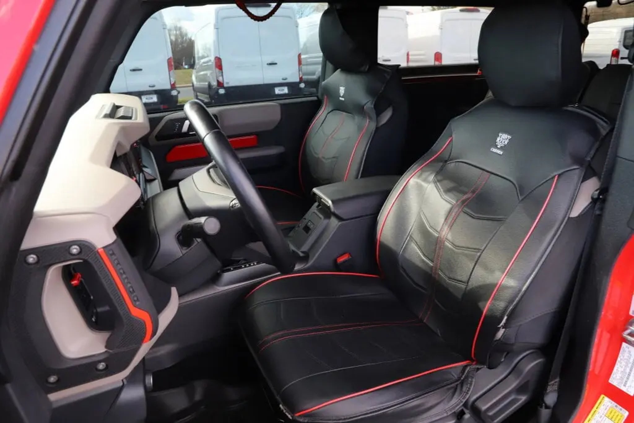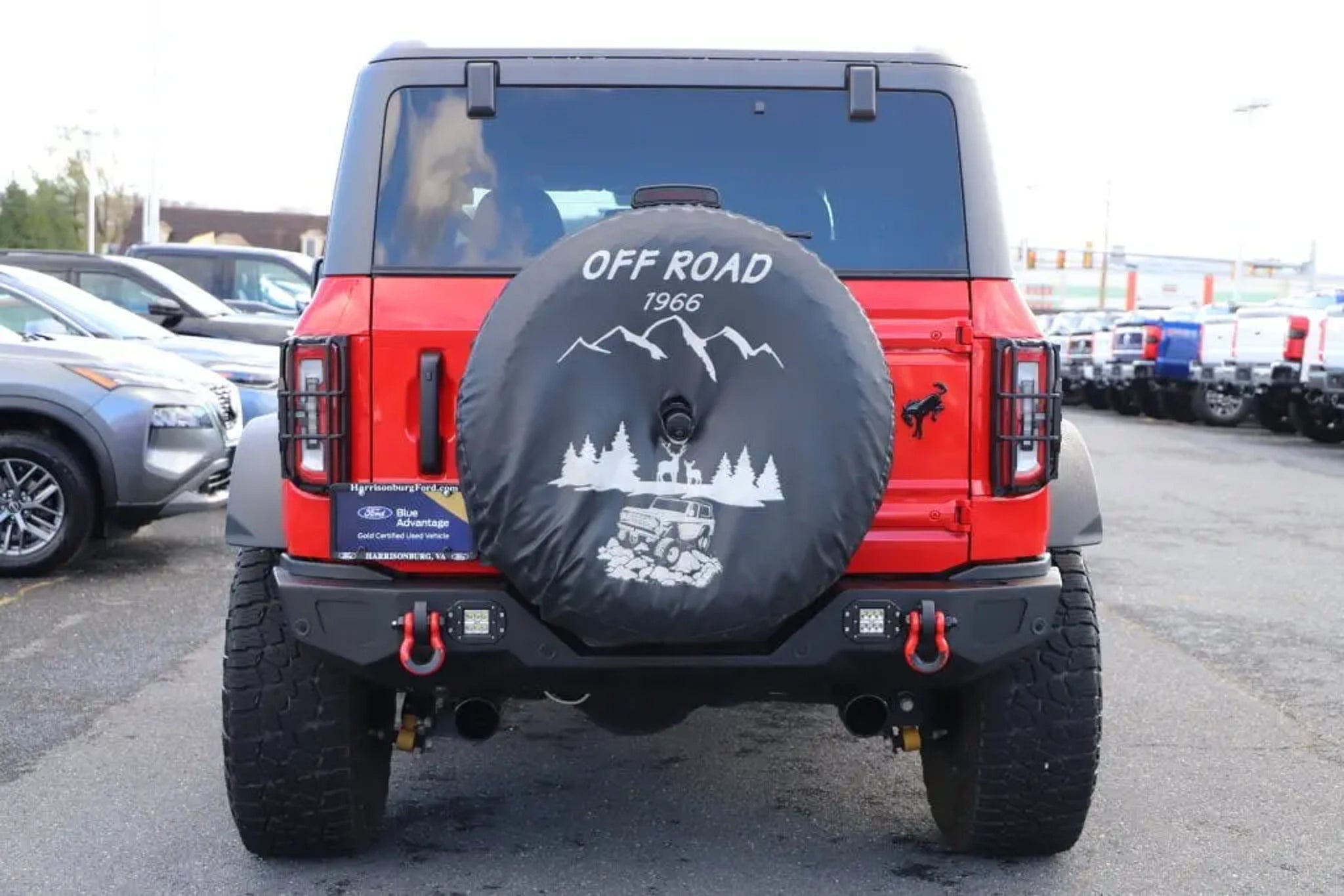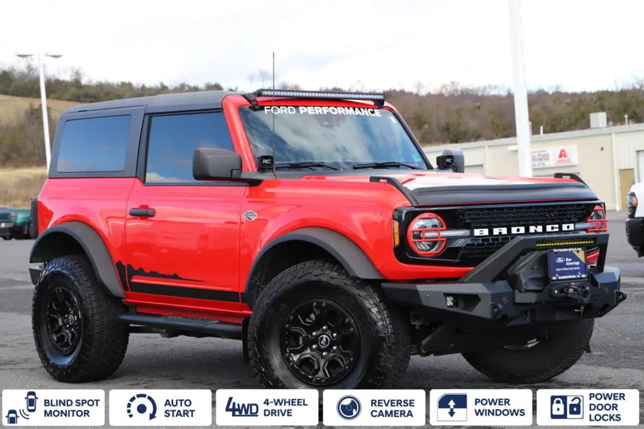 Recent Arrival! Certified Ford Dealer, CUSTOM WINCH, Bronco Wildtrak, 2D Sport Utility, 2.7L EcoBoost V6, 10-Speed Automatic, 4WD, Race Red, Black Onyx Cloth, 4-Wheel Disc Brakes, 4.7 Axle Ratio, 6 Speakers, ABS brakes, Air Conditioning, Alloy wheels, AM/FM radio: SiriusXM with 360L, AM/FM Stereo, Auto High-beam Headlights, Auto-dimming Rear-View mirror, Automatic temperature control, Brake assist, Compass, Connected Navigation, Convertible HardTop, Convertible roof lining, Delay-off headlights, Driver door bin, Driver vanity mirror, Dual front impact airbags, Dual front side impact airbags, Electronic Stability Control, Emergency communication system: 911 Assist, Equipment Group 352A Mid Package, Exterior Parking Camera Rear, Front anti-roll bar, Front Bucket Seats, Front Center Armrest, Front dual zone A/C, Front fog lights, Front reading lights, Front wheel independent suspension, Fully automatic headlights, Glass rear window, Heated Cloth Bucket Seats, Heated door mirrors, Heated front seats, Illuminated entry, Integrated roll-over protection, Leather Shift Knob, Low tire pressure warning, Navigation system: Connected Navigation, Occupant sensing airbag, Outside temperature display, Overhead airbag, Overhead console, Panic alarm, Passenger door bin, Passenger vanity mirror, Power door mirrors, Power steering, Power windows, Radio data system, Rear window defroster, Rear window wiper, Remote keyless entry, Security system, SiriusXM Radio w/360L, Speed control, Split folding rear seat, Steering wheel mounted audio controls, SYNC 4, Tachometer, Telescoping steering wheel, Tilt steering wheel, Traction control, Trip computer, Variably intermittent wipers, Voltmeter, Wheels: 17 Black High Gloss-Painted Aluminum, Wildtrak Bodyside Graphic. CARFAX One-Owner. Certified. Priced below KBB Fair Purchase Price!Race Red 2022 Ford Bronco 10-Speed Automatic 4WD 2.7L EcoBoost V6 WildtrakFord Gold Certified Details:? * Powertrain Limited Warranty: 84 Month/100,000 Mile (whichever comes first) from original in-service date? * Vehicle History? * Roadside Assistance? * and 22,000 FordPass Rewards Points to use toward first two maintenance visits? * Warranty Deductible: $100? * 172 Point Inspection? * Transferable Warranty? * Limited Warranty: 12 Month/12,000 Mile (whichever comes first) after new car warranty expires or from certified purchase dateAwards:? * NACTOY 2022 North American Utility of the Year