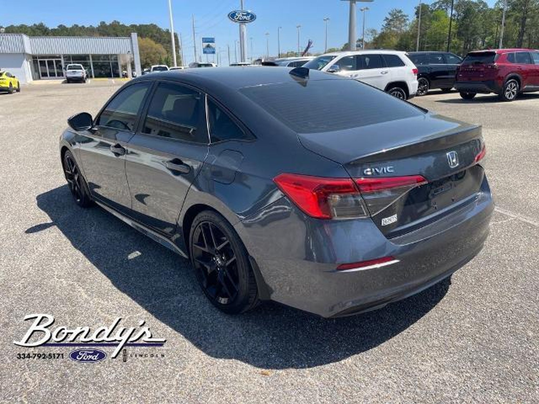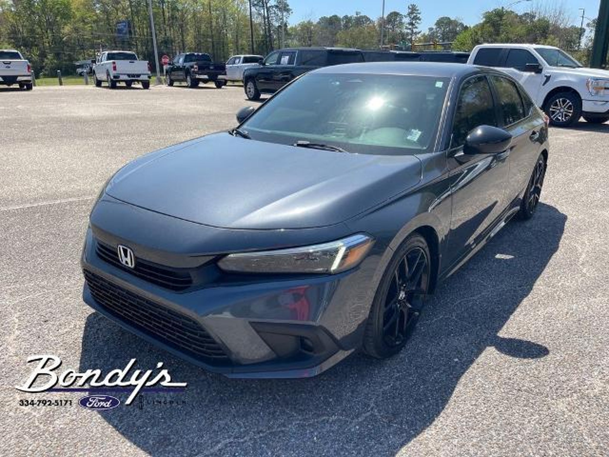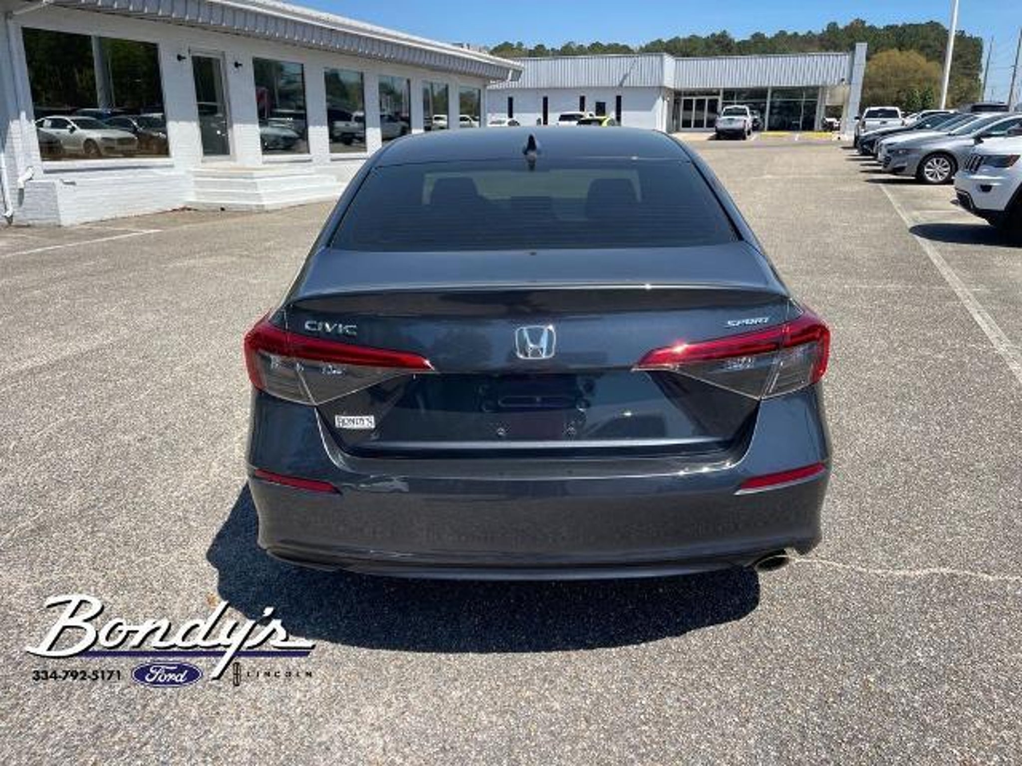 CARFAX One-Owner. 2023 Honda Civic Sport Cloth, 4-Wheel Disc Brakes, 8 Speakers, ABS brakes, Adaptive Cruise Control: Adaptive Cruise Control (ACC) with Low-Speed Follow, Air Conditioning, Alloy wheels, AM/FM radio, Apple CarPlay/Android Auto, Auto High-beam Headlights, Automatic temperature control, Brake assist, Bumpers: body-color, Cloth Seat Trim, Delay-off headlights, Driver door bin, Driver vanity mirror, Dual front impact airbags, Dual front side impact airbags, Electronic Stability Control, Emergency communication system: HondaLink, Exterior Parking Camera Rear, Four wheel independent suspension, Front anti-roll bar, Front Bucket Seats, Front Center Armrest, Front reading lights, Fully automatic headlights, Illuminated entry, Knee airbag, Leather Shift Knob, Leather steering wheel, Low tire pressure warning, Occupant sensing airbag, Outside temperature display, Overhead airbag, Panic alarm, Passenger door bin, Passenger vanity mirror, Power door mirrors, Power steering, Power windows, Radio data system, Radio: 180-Watt Audio System w/8 Speakers, Rear anti-roll bar, Rear side impact airbag, Rear window defroster, Remote keyless entry, Security system, Speed control, Speed-sensing steering, Steering wheel mounted audio controls, Tachometer, Telescoping steering wheel, Tilt steering wheel, Traction control, Trip computer, Wheels: 18 Gloss Black Alloy, Cloth. FWD 2.0L I4 DOHC 16V i-VTEC CVT THIS VEHICLE IS LOCATED AT BONDY'S FORD LINCOLN AT 3615 ROSS CLARK CIRCLE DOTHAN, AL 36303. PLEASE CALL US AT 800-239-5171 TO ASK US ANY QUESTIONS! MON-FRI SALES IS HERE FROM 8:30 TO 7:00 AND SAT 8:30 TO 6:00. WE ARE CLOSED ON SUNDAYS. Call Toll Free 800-239-5171 or 334-792-5171.