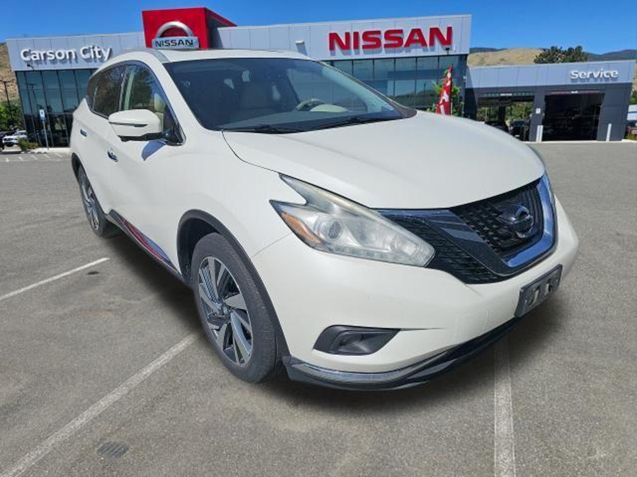 * Save money on sales tax over buying in Reno! This stunning 2018 Nissan Murano Platinum is a true standout in its class. With its sleek white exterior and premium Platinum trim, this Murano commands attention wherever it goes. But the real story lies in the impressive array of features that make this vehicle a must-have for the discerning driver. - Automatic temperature control - Front dual zone A/C - Memory seat - Power Liftgate - Blind Spot Warning - Front fog lights - Fully automatic headlights - Security system - Spoiler - Turn signal indicator mirrors - Apple CarPlay/Android Auto - Garage door transmitter: HomeLink - Heated steering wheel - NissanConnect Services Powered By SiriusXM - Heated front seats - Heated rear seats - Leather Appointed Seat Trim - Wheels: 20 Machined Aluminum-Alloy This Murano Platinum is more than just a pretty face. Under the hood, you'll find a powerful 3.5L V6 DOHC 24V engine mated to a smooth CVT with Xtronic and All-Wheel Drive. With an EPA-estimated 21 MPG in the city and 28 MPG on the highway, this Murano delivers the perfect balance of performance and efficiency. But the true standout features of this Murano are the premium amenities that elevate the driving experience. Imagine sinking into the plush, leather-appointed seats while the dual-zone climate control keeps you and your passengers comfortable. The power liftgate and Blind Spot Warning system add convenience and safety, while the Bose audio system and NissanConnect infotainment with Apple CarPlay and Android Auto keep you connected and entertained. This Murano Platinum is not just a vehicle "“ it's a statement. It's a testament to your discerning taste and your desire for a premium driving experience. With its stunning looks, impressive performance, and unparalleled features, this Murano is sure to turn heads and make a lasting impression. Don't miss your chance to make this Murano Platinum your own. Schedule a test drive today and experience the difference for yourself. We're confident you'll be impressed. * Save on sales tax over buying in Reno! We may be the newest and fastest-growing franchise dealership in Nevada, but that hasn't stopped us from recruiting an automotive dream team. Our staff includes long-time Nissan product experts on both our sales and management teams. Our goal is to make buying your car a fun and easy experience. Se habla español en cada parte de la empresa: ventas, finanzas, reparación y en la oficina. Si prefiere visitar este sitio en español, seleccione En Español al pie de la página.