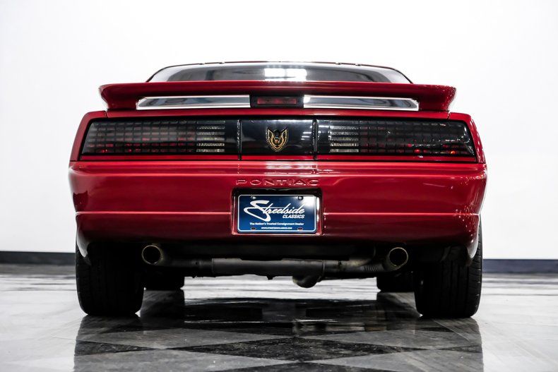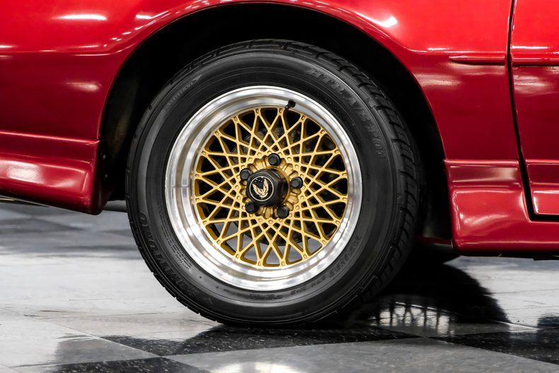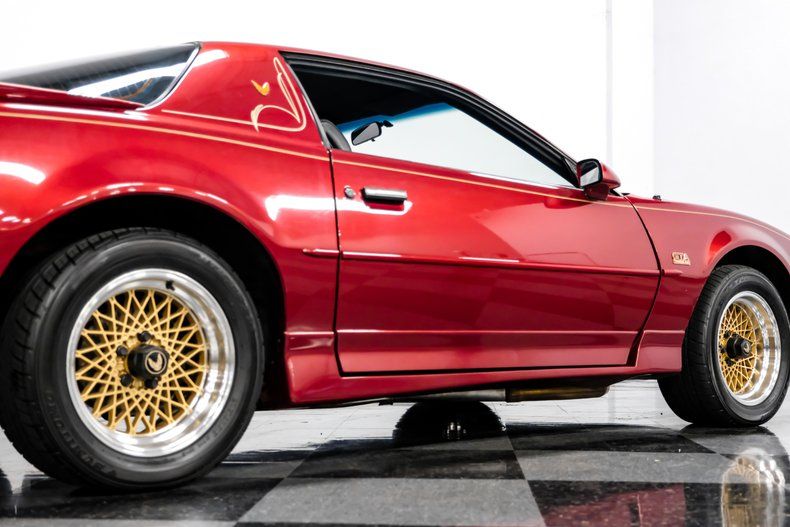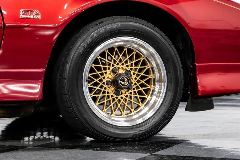 Dressed in an outstanding color scheme that pairs factory correct Flame Red Metallic paint with a signature gold "Screaming Chicken" hood logo, this 1988 Pontiac Firebird Trans Am GTA represents its model in its strikingly aerodynamic third generation form. That attention grabbing paint combo, contrasted by a set of factory-correct wheels that come by way of its upper tier GTA (Grand Touring American) status really draw you in, and while at very close range you may find some subtle evidence of passing years here and there, make no mistake, this classic is an absolute head turner. Better still, with an unusually low 42,638 miles under its belt, this Firebird is ready and waiting for plenty more asphalt enjoyment.