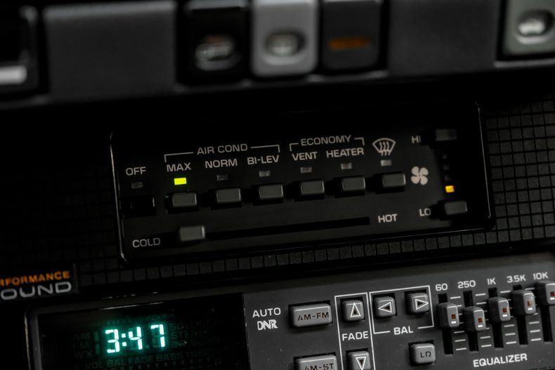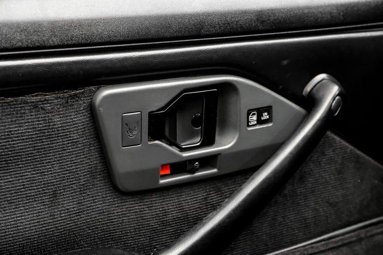 All the outward signs show that this Pontiac has seen consistent sheltering over its lifetime. The interior is in clean shape, with the surfaces of its black vinyl upholstery showing no tearing or noticeable stains and the carpeting still looks fresh and well-fitted. Pontiac got adventurous with its dash configurations when the Trans Am's third generation arrived, and this specimen ably demonstrates that trend. Check out the AM/FM/Cassette stereo at the center of the dash, with its integrated equalizer offering a multitude of knobs to get the interior sound to your liking. Or the assembly of factory gauges in their digital configuration that marked a big change from previous aesthetic norms. The functionality inside these doors has held up well over the years, so the factory air conditioning is blowing strong and cold, and the sound system is still in fine form.