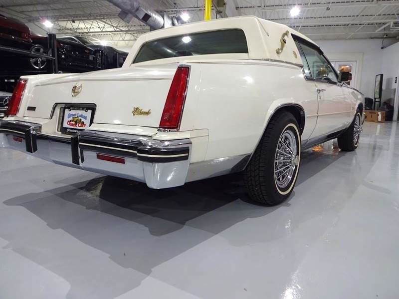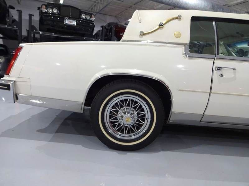 1985 Cadillac Eldorado Biarritz Commemorative Edition " White over Blue and White two-tone Leather ! Step back into the golden age of American luxury with this stunning 1985 Cadillac Eldorado Commemorative Edition. Finished in a classic White exterior with a White cabriolet top, this Eldorado represents the elegance and prestige that made Cadillac the standard of the world. With an incredibly low 12,948 original miles, this Eldorado is a true collector-quality time capsule that has been exceptionally preserved. If you're looking for a classic Cadillac that turns heads at shows or provides smooth weekend cruising, this one checks every box. Under the hood sits Cadillacs smooth 4.1L V-8 engine with digital fuel injection, paired with an automatic transmission for effortless driving. Power steering and power brakes deliver the comfortable, confident ride Cadillac is famous for. Inside, youre welcomed by a beautiful White and Blue leather interior loaded with luxury features including power windows, locks, and mirrors, electronic climate control, tilt steering column, and cruise control. Every detail reflects Cadillacs dedication to comfort and sophistication. This Commemorative Edition also features standout exterior details like the Gold Crest hood ornament, chrome rocker moldings, bumpers, and grille, and tinted glass. It rides on chrome wire spoke wheels wrapped in classic whitewall radial tires, completing the unmistakable Cadillac look. WE HAVE THE BUILD SHEET AND DEALER BROCHURES Highlights: - Only 12,948 original miles - 4.1L V-8 engine with digital fuel injection - Automatic transmission - Power steering & power brakes - White exterior with White cabriolet top -White & Blue leather interior - Power windows, locks & mirrors - Electronic climate control - Tilt steering column & cruise control - Gold Crest hood ornament - Chrome rocker moldings, bumpers & grille - Tinted glass - Chrome wire spoke wheels - Whitewall radial tires A rare opportunity to own a beautifully preserved luxury classic from Cadillacs iconic Eldorado line. Low miles. Timeless style. True Cadillac luxury. WE SHIP NATIONWIDE