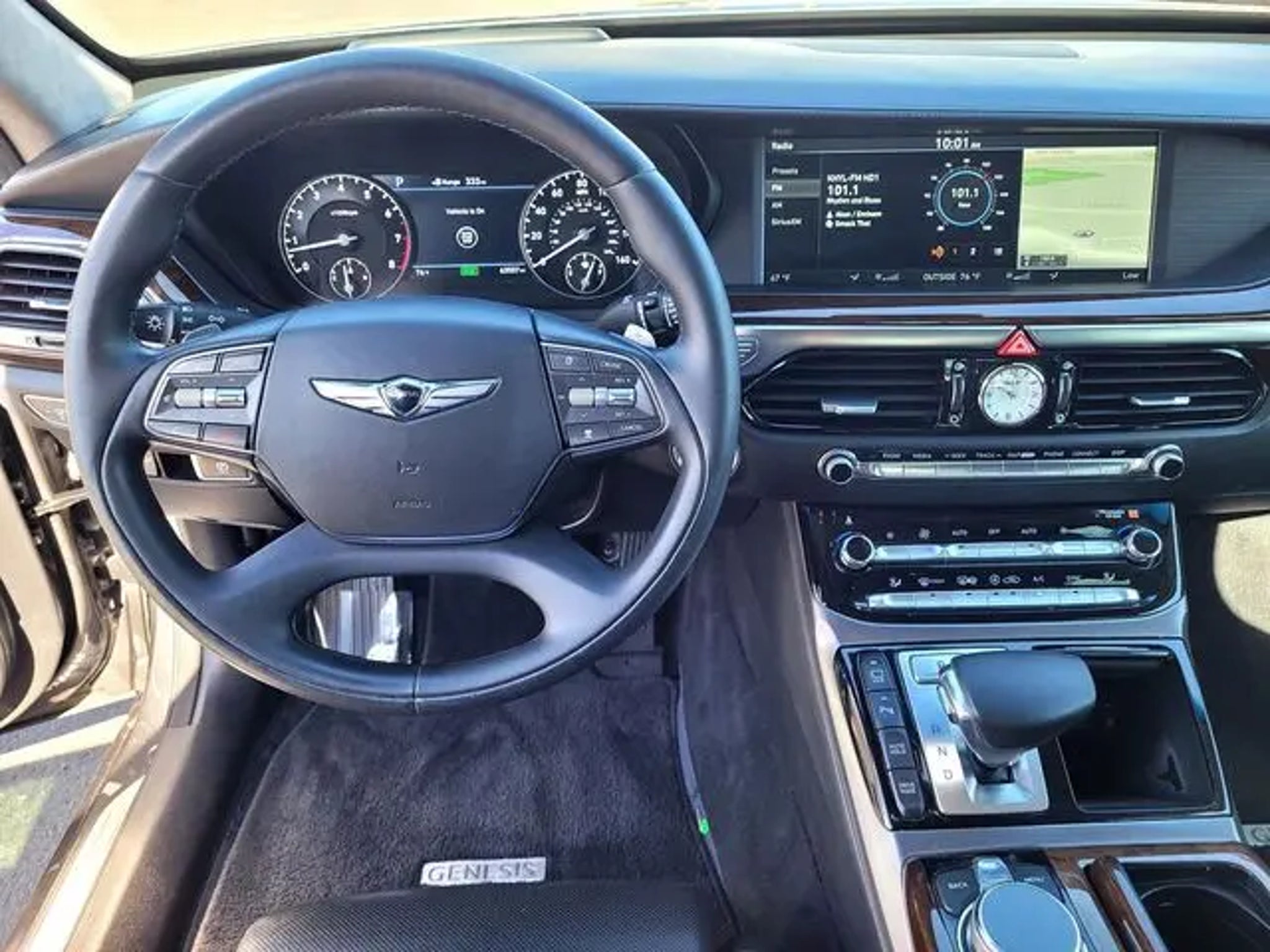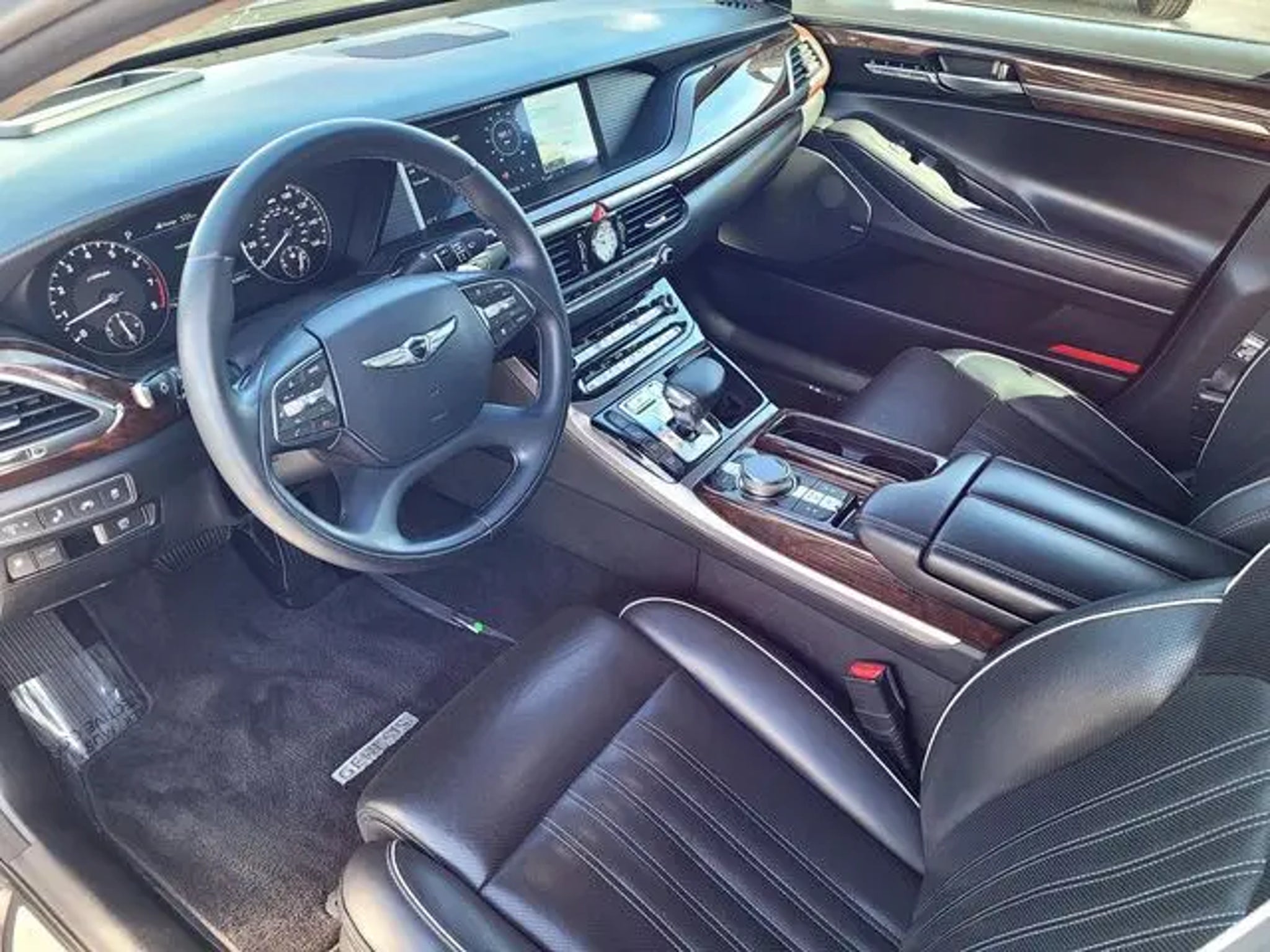 Memory seat,Power Windows,Remote keyless entry,Auto-Dim Door Mirrors,Driver door bin,Intermittent Wipers,Door auto-latch,Steering Wheel Audio Control,Rear window blind,Power Seat,Radio: AM/FM/HD/SiriusXM/CD/DVD Audio System,Traction Control,Auto-Dimming Rear-View Mirror,Rear seat center armrest,Delay-off headlights,Panic alarm,Rear Window Defroster,Electronic Stability,Heads-Up Display,Tilt-Away Steering Wheel,Power moonroof,Adaptive suspension,ABS brakes,Heated door mirrors,DVD-Audio,Steering Wheel Memory,Automatic Headlights,Radio data system,Power adjustable front head restraints,Rain sensing wipers,Rear reading lights,Power Steering,Front reading lights,Speed control,Tachometer,Nappa Leather Seating Surfaces,Remote CD player,Front Side Air Bags,Compass,Leather steering wheel,4-Wheel Disc Brakes,17 Speakers,Wood Door Panel Insert,Outside temperature display,Occupant sensing airbag,Power passenger seat,AM/FM radio: SiriusXM,Alloy Wheels,4-Wheel Independent Susp.,Heated Front Seats,Air Conditioning,Front anti-roll bar,Heated rear seats,Speed-Sensitive Wipers,Knee airbag,Automatic temperature control,Rear anti-roll bar,Security System,Rear air conditioning,Front Head Restraints,Head restraints memory,Heated Steering Wheel,Speed-sensing steering,Ventilated front seats,Illuminated entry,Bumpers: body-color,Front center armrest,Telescoping steering wheel,Overhead Console,Passenger vanity mirror,Auto-leveling suspension,Power door mirrors,Rear side impact airbag,Overhead airbag,Wheels: 19 Chrome Alloy,Auto high-beam headlights,Emergency communication system: Genesis Connected Services,Wood Dashboard Insert,Front Bucket Seats,Heated & Ventilated Front Bucket Seats w/Memory,Navigation System,Tilt steering wheel,Turn signal mirrors,Front dual zone A/C,Brake assist,Low tire pressure warning,Passenger door bin,Leather shift knob,HomeLink,Driver vanity mirror