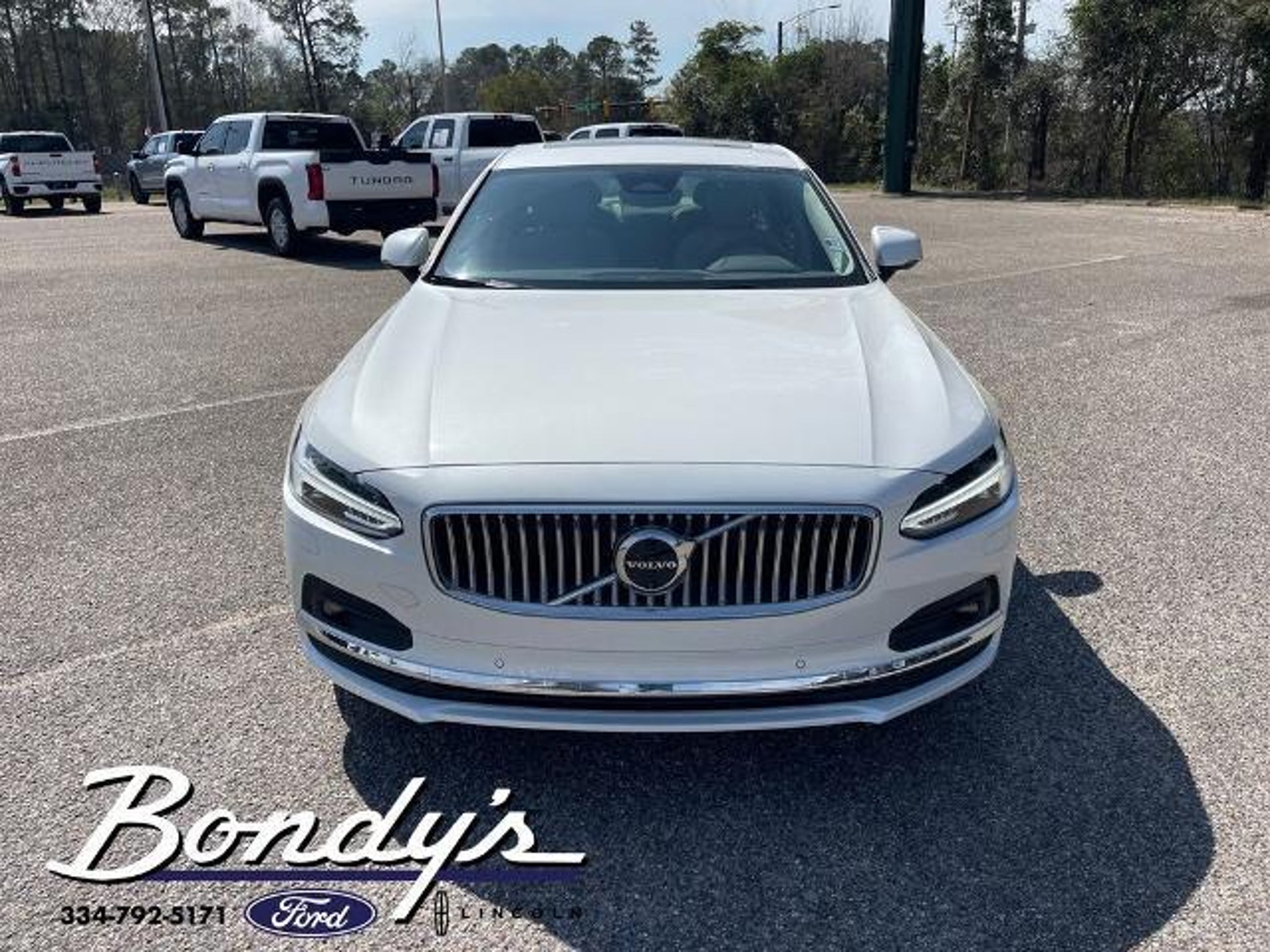 CARFAX One-Owner. 2024 Volvo S90 B6 Plus 10 Speakers, 4-Wheel Disc Brakes, ABS brakes, Air Conditioning, Alloy wheels, AM/FM radio, Anti-whiplash front head restraints, Apple CarPlay/Android Auto, Auto High-beam Headlights, Auto-dimming door mirrors, Auto-dimming Rear-View mirror, Automatic temperature control, Bodyside moldings, Brake assist, Bumpers: body-color, Delay-off headlights, Driver door bin, Driver vanity mirror, Dual front impact airbags, Dual front side impact airbags, Electronic Stability Control, Emergency communication system, Four wheel independent suspension, Front anti-roll bar, Front Bucket Seats, Front Center Armrest w/Storage, Front dual zone A/C, Front fog lights, Front reading lights, Fully automatic headlights, Garage door transmitter: HomeLink, Genuine wood console insert, Genuine wood dashboard insert, Genuine wood door panel insert, harman/kardon Premium Sound, Heated door mirrors, Heated Front Bucket Seats, Heated front seats, Heated rear seats, Heated steering wheel, Illuminated entry, Knee airbag, Leather Seating Surfaces, Leather Shift Knob, Low tire pressure warning, Memory seat, Navigation system: Sensus Navigation, Occupant sensing airbag, Outside temperature display, Overhead airbag, Panic alarm, Passenger door bin, Passenger vanity mirror, Power door mirrors, Power driver seat, Power moonroof, Power Operated Trunklid, Power passenger seat, Power steering, Power windows, Radio data system, Radio: High Performance Audio, Rain sensing wipers, Rear air conditioning, Rear anti-roll bar, Rear dual zone A/C, Rear fog lights, Rear reading lights, Rear seat center armrest, Rear Window Blind, Rear window defroster, Remote keyless entry, Security system, Speed control, Speed-sensing steering, Split folding rear seat, Steering wheel mounted audio controls, Tachometer, Telescoping steering wheel, Tilt steering wheel, Traction control, Trip computer, Turn signal indicator mirrors, Variably intermittent wipers, Wheels: 19 10-Spoke Black Diamond-Cut Alloy, Wheels: 20 8 Multi-Spoke Black Diamond-Cut Alloy. Crystal White AWD 2.0L I4 Automatic with Geartronic THIS VEHICLE IS LOCATED AT BONDY'S FORD LINCOLN AT 3615 ROSS CLARK CIRCLE DOTHAN, AL 36303. PLEASE CALL US AT 800-239-5171 TO ASK US ANY QUESTIONS! MON-FRI SALES IS HERE FROM 8:30 TO 7:00 AND SAT 8:30 TO 6:00. WE ARE CLOSED ON SUNDAYS. Call Toll Free 800-239-5171 or 334-792-5171.