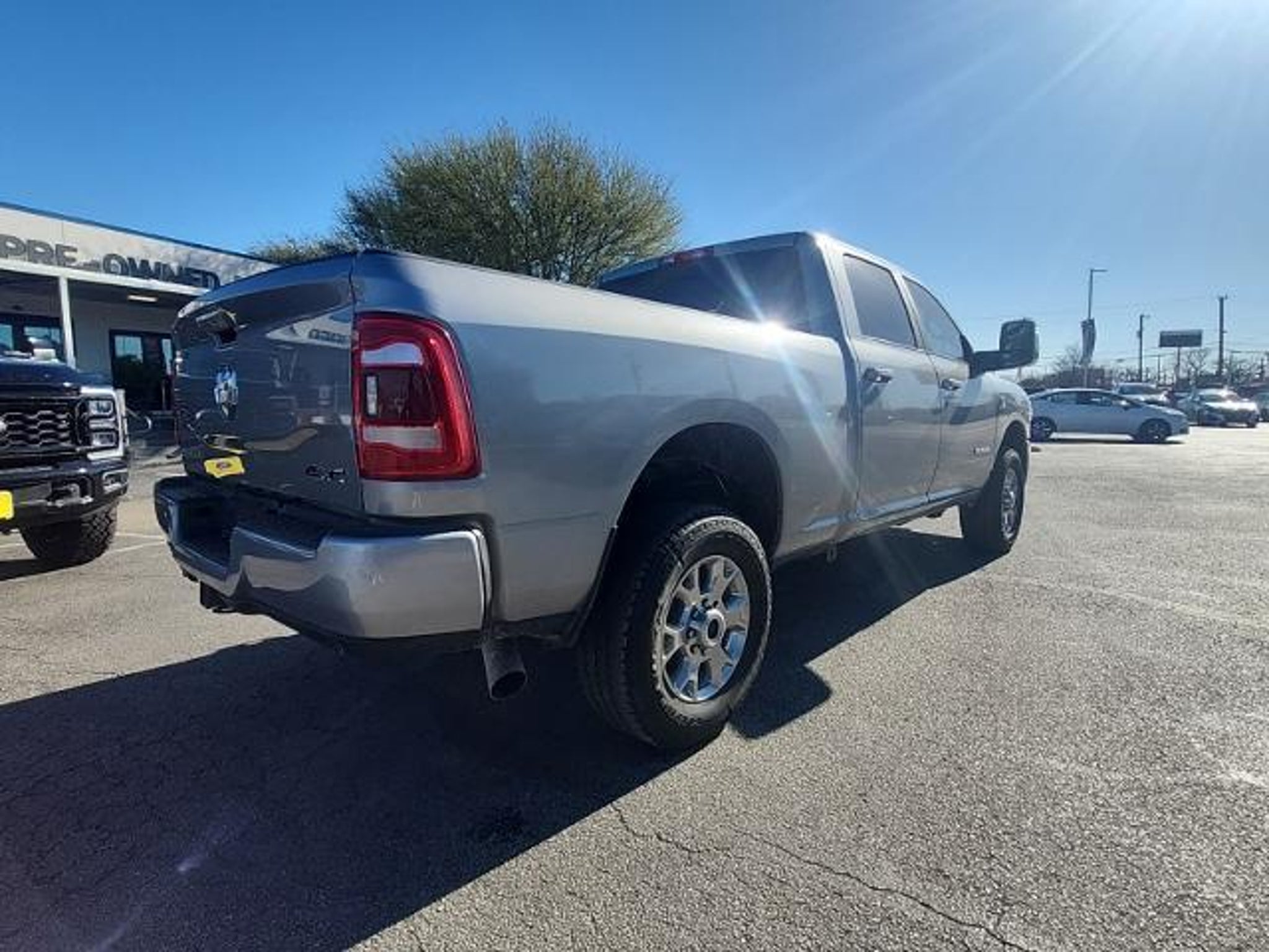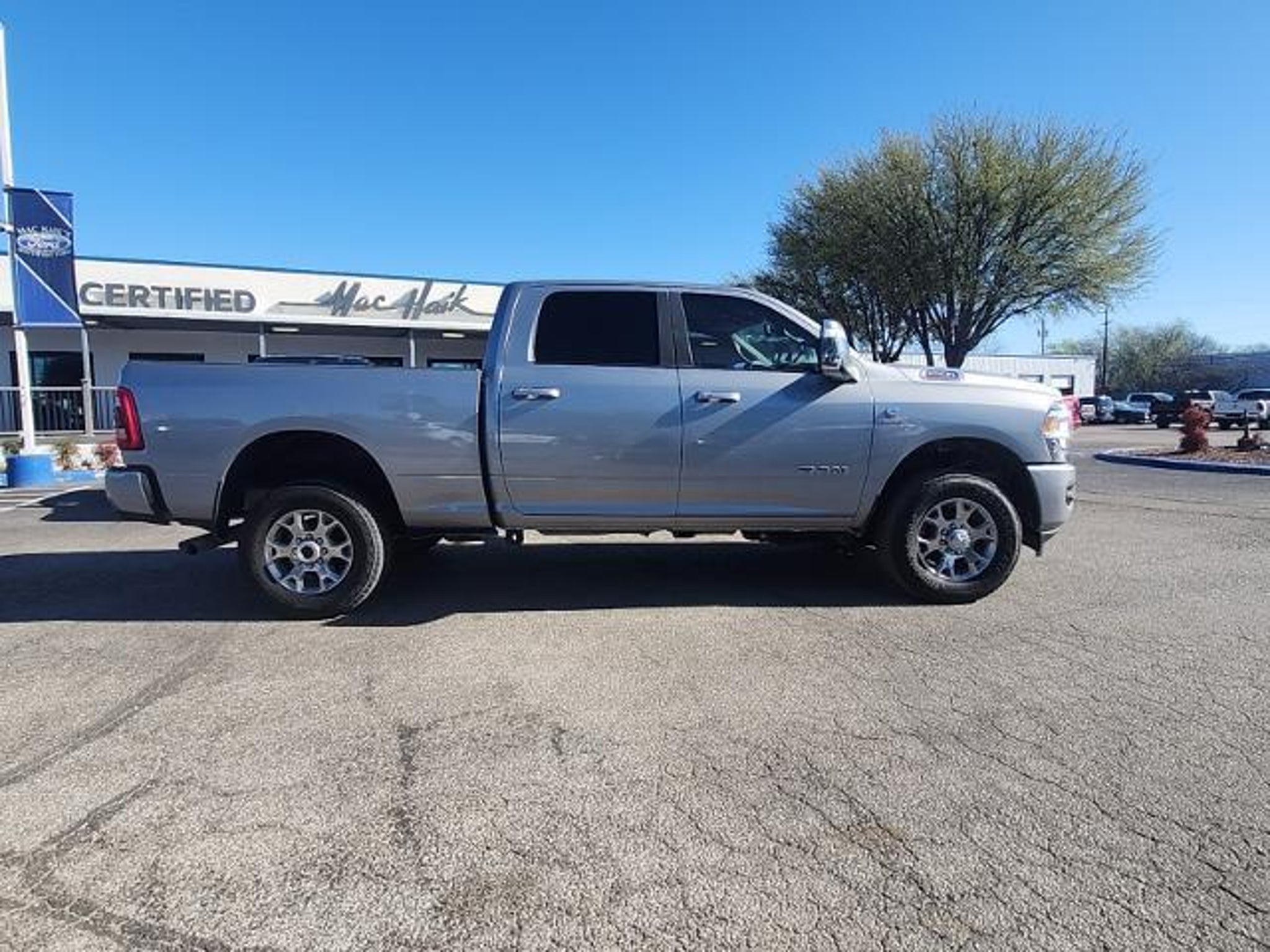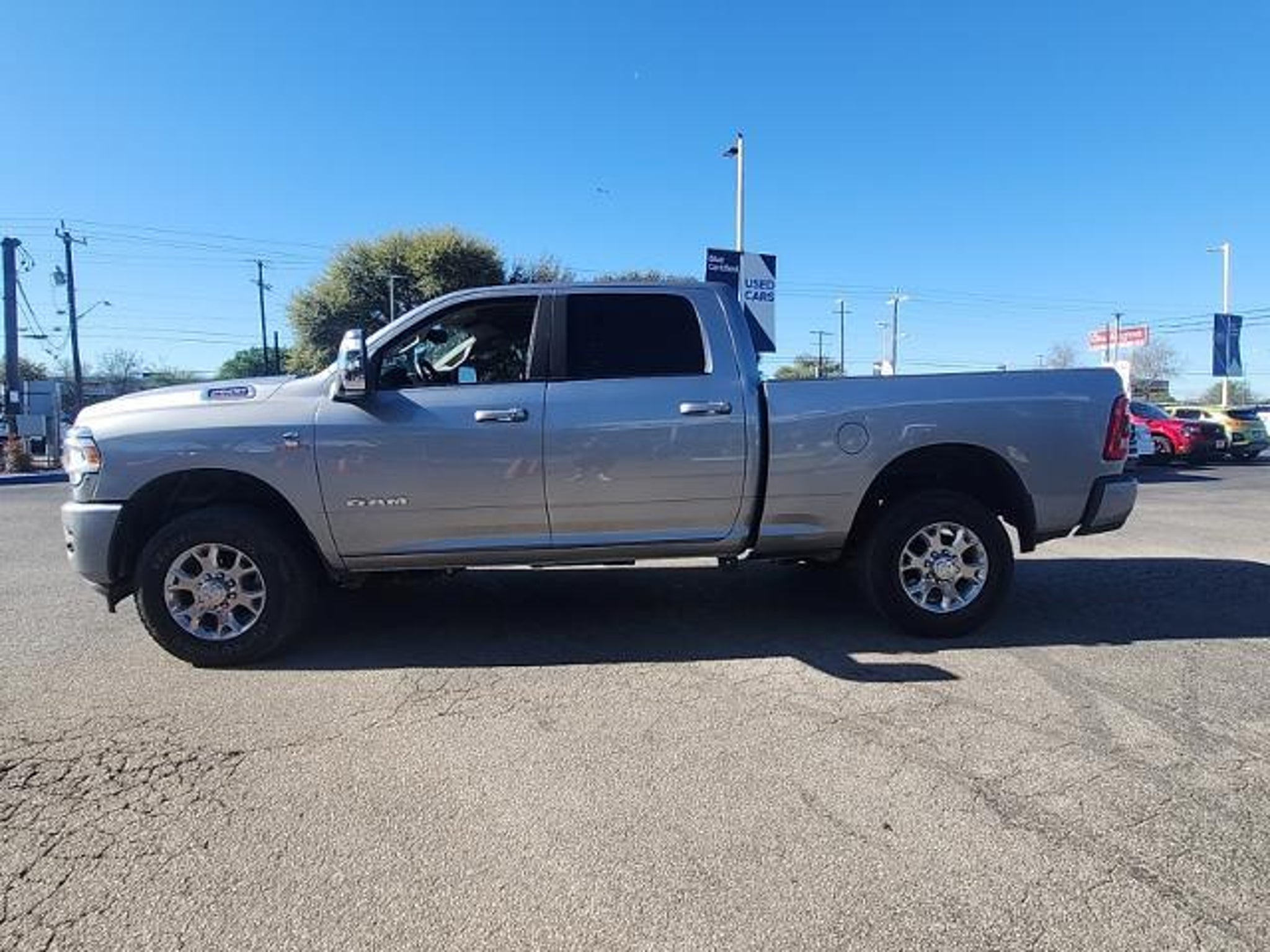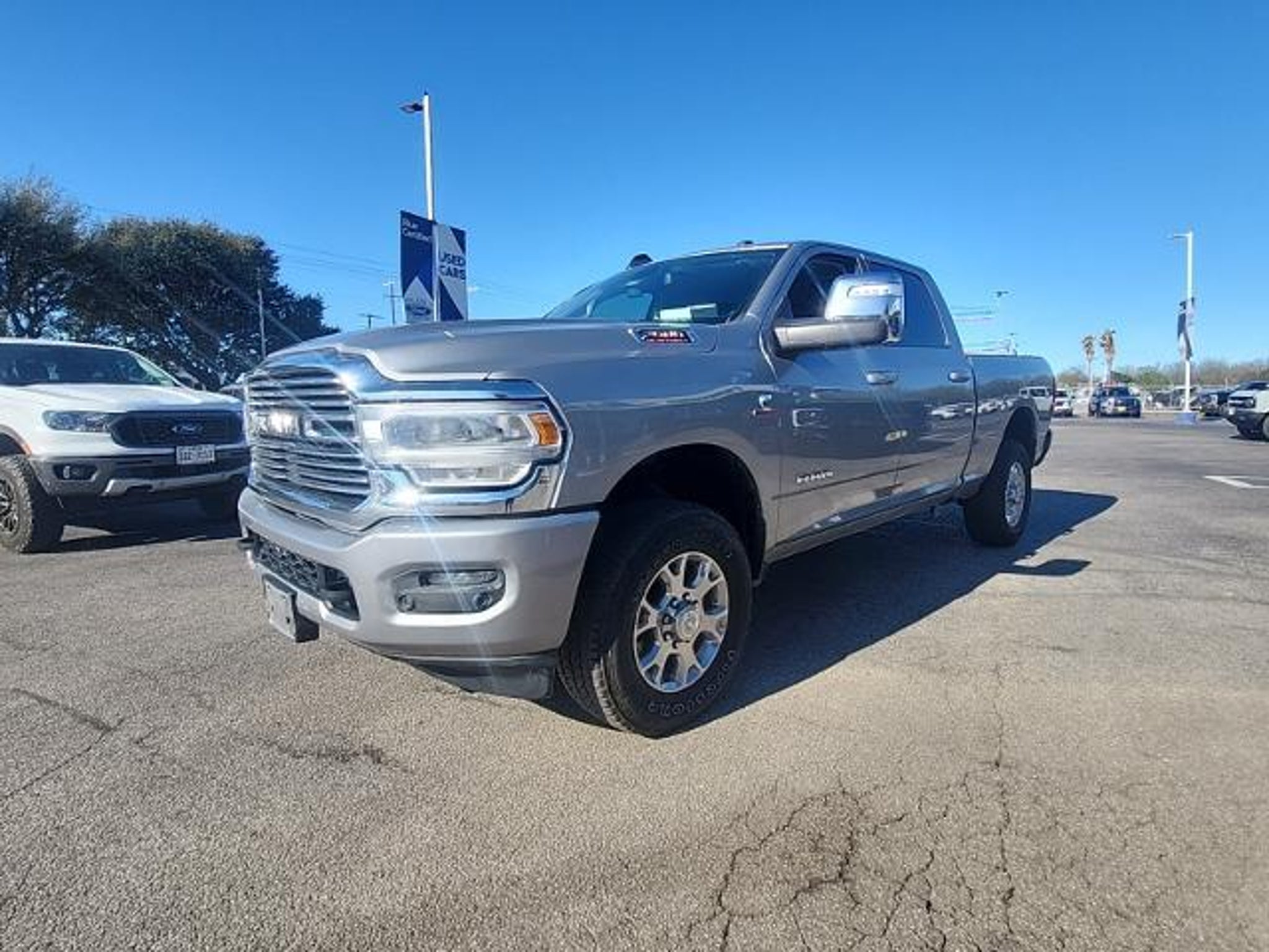 This 2024 Ram 2500 Laramie in Billet Silver Metallic Clearcoat includes the following features: Cummins 6.7L I6 Turbodiesel 6-Speed Automatic 4WD Laramie Level 1 Equipment Group (12 Touchscreen Display, 2nd Row In Floor Storage Bins, 4G LTE Wi-Fi Hot Spot, Alexa Built-In, Apple CarPlay, Auto Adjust In Reverse Exterior Mirrors, Auto Dim Exterior Mirror, Auto High Beam Headlamp Control, Auto Power-Folding Mirrors, Auto-Dimming Exterior Passenger Mirror, Blind Spot & Cross Path Detection, Center Hub, Chrome Exterior Mirrors, Connected Travel & Traffic Services, Connectivity - US/Canada, Disassociated Touchscreen Display, Exterior Mirrors Courtesy Lamps, Exterior Mirrors w/Heating Element, Exterior Mirrors w/Memory, Exterior Mirrors w/Supplemental Signals, Foam Bottle Insert (Door Trim Panel), For Details, Visit DriveUconnect.com, For More Info, Call 800-643-2112, Forward & Reverse Utility Lights, Front LED Fog Lamps, Global Telematics Box Module (TBM), Google Android Auto, GPS Antenna Input, GPS Navigation, HD Radio, Integrated Voice Command w/Bluetooth, LED Reflector Headlamps, LED Tail Lamps, Mirror Running Lights, Off-Road Information Pages, ParkSense Front/Rear Park Assist System, Power Adjust Mirrors, Power Adjustable Convex Aux Mirrors, Power Adjustable Pedals w/Memory, Power Heated Fold Telescopic Mirrors w/Memory, Power Telescoping Mirrors, Radio: Uconnect 5 Nav w/12.0 Display, Rain Sensitive Windshield Wipers, Rear Power Sliding Window, Rear Window Defroster, Remote Tailgate Release, Selectable Tire Fill Alert, SiriusXM Radio Service, SiriusXM w/360L, Trailer Tow Pages, and Wheels: 18 x 8.0 Polished Aluminum), Quick Order Package 2HH Laramie, 10 Speakers, 115V Auxiliary Rear Power Outlet, 2 Way Rear Headrest Seat, 220 Amp Alternator, 3.73 Axle Ratio, 4 Way Front Headrests, 4-Wheel Disc Brakes, ABS brakes, Active Noise Control System, Air Conditioning, Alloy wheels, AM/FM radio: SiriusXM with 360L, Apple CarPlay/Android Auto, Automatic temperature control, Brake assist, Bumpers: body-color, Compass, Delay-off headlights, Driver door bin, Driver vanity mirror, Dual front impact airbags, Dual front side impact airbags, Electronic Stability Control, Electronically Controlled Throttle, Front anti-roll bar, Front Center Armrest w/Storage, Front dual zone A/C, Front License Plate Bracket, Front reading lights, Front Seat Back Map Pockets, Fully automatic headlights, Garage door transmitter, Heated door mirrors, Heated Front Seats, Heated front seats, Heated Steering Wheel, Heated steering wheel, Illuminate