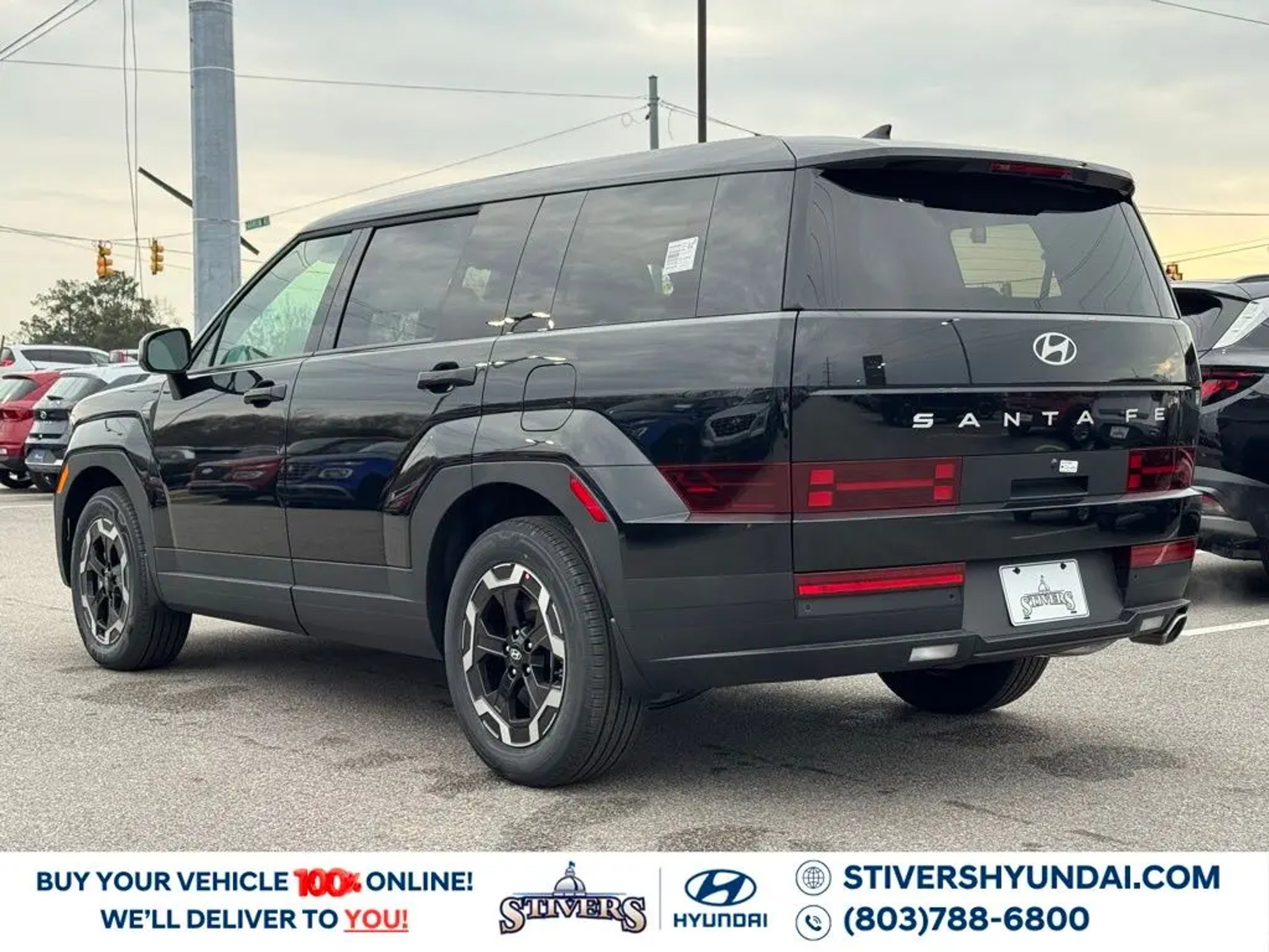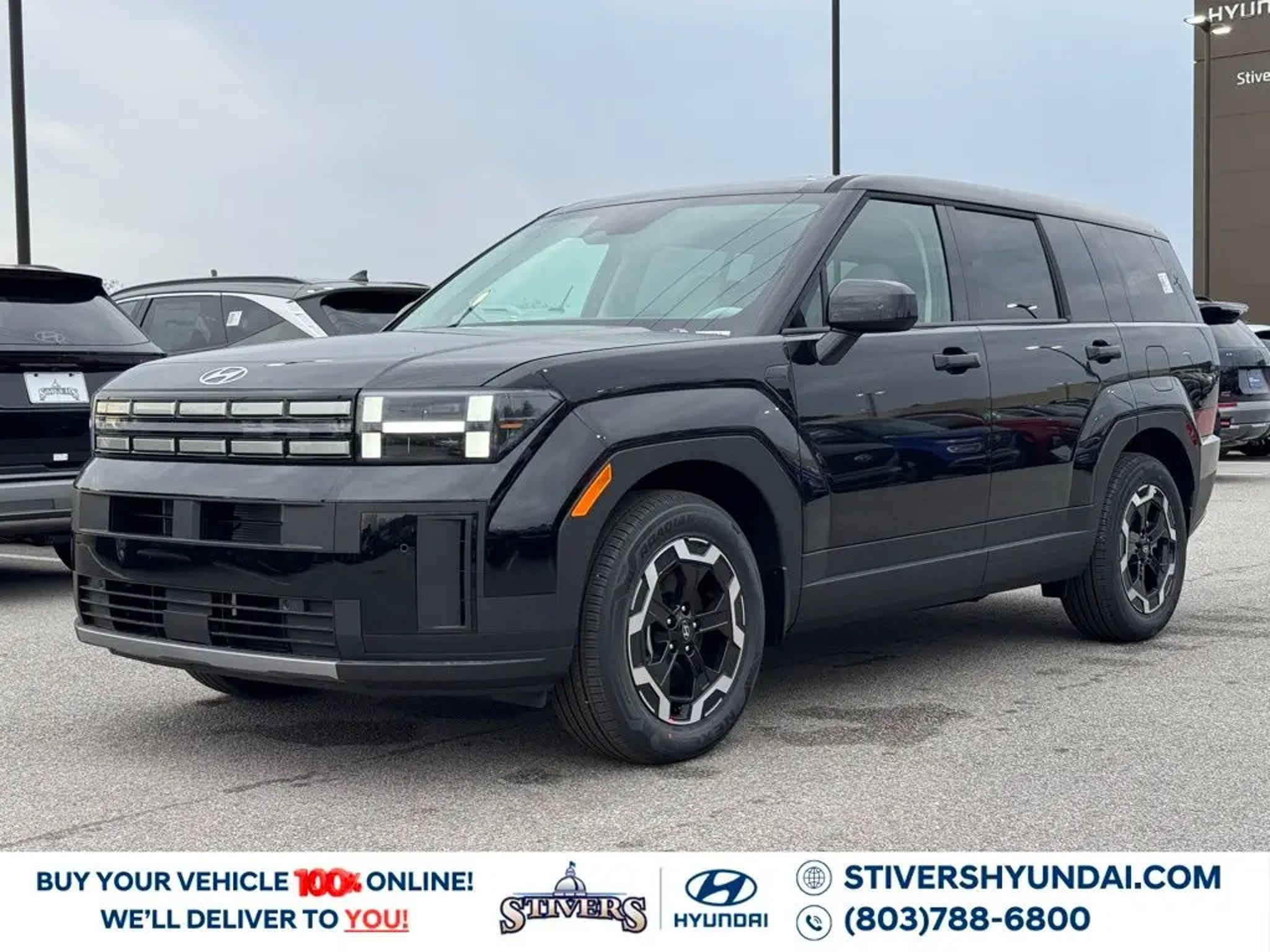 2026 Hyundai Santa Fe SE Phantom Black FWD 8-Speed Automatic with SHIFTRONIC 2.5L I4 Gray Cloth. Check out all these options: Option Group 01, Gray Cloth, 18 x 7.5J Alloy Wheels, 3rd row seats: bench, 4-Wheel Disc Brakes, 6 Speakers, ABS brakes, Air Conditioning, All Season Fitted Liners, Alloy wheels, AM/FM radio: SiriusXM, Apple CarPlay & Android Auto, Auto High-beam Headlights, Brake assist, Bumpers: body-color, Cargo Blocks, Cargo Organizer, Carpeted Floor Mats, Delay-off headlights, Driver door bin, Driver vanity mirror, Dual front impact airbags, Dual front side impact airbags, Electronic Stability Control, Emergency communication system, Exterior Parking Camera Rear, First Aid Kit, Four wheel independent suspension, Front anti-roll bar, Front Bucket Seats, Front Center Armrest, Front reading lights, Fully automatic headlights, Heated door mirrors, Illuminated entry, Knee airbag, Leather steering wheel, Low tire pressure warning, Mudguards, Occupant sensing airbag, Outside temperature display, Overhead airbag, Overhead console, Panic alarm, Passenger door bin, Passenger vanity mirror, Power door mirrors, Power Liftgate, Power steering, Power windows, Radio: AM/FM/HD Display Audio, Rear anti-roll bar, Rear seat center armrest, Rear side impact airbag, Rear window defroster, Rear window wiper, Remote keyless entry, Security system, Speed control, Speed-sensing steering, Split folding rear seat, Spoiler, Steering wheel mounted audio controls, Tachometer, Telescoping steering wheel, Tilt steering wheel, Traction control, Trip computer, Variably intermittent wipers, and YES Essentials Stain-Resistant Cloth Seat Trim. 20/29 City/Highway MPG Serving Columbia, West Columbia, Irmo, Lexington, Chapin, Lugoff, Elgin, Sumter, Florence, Blythewood, Camden, Fort Jackson,Cayce, Bishopville, Hartsville, Orangeburg, Gilbert, Clinton, Batesburg, Lamar, and Darlington for your automotive needs. Internet price does not include any dealer installed accessories. Price is based on factory options only, see dealer for details.