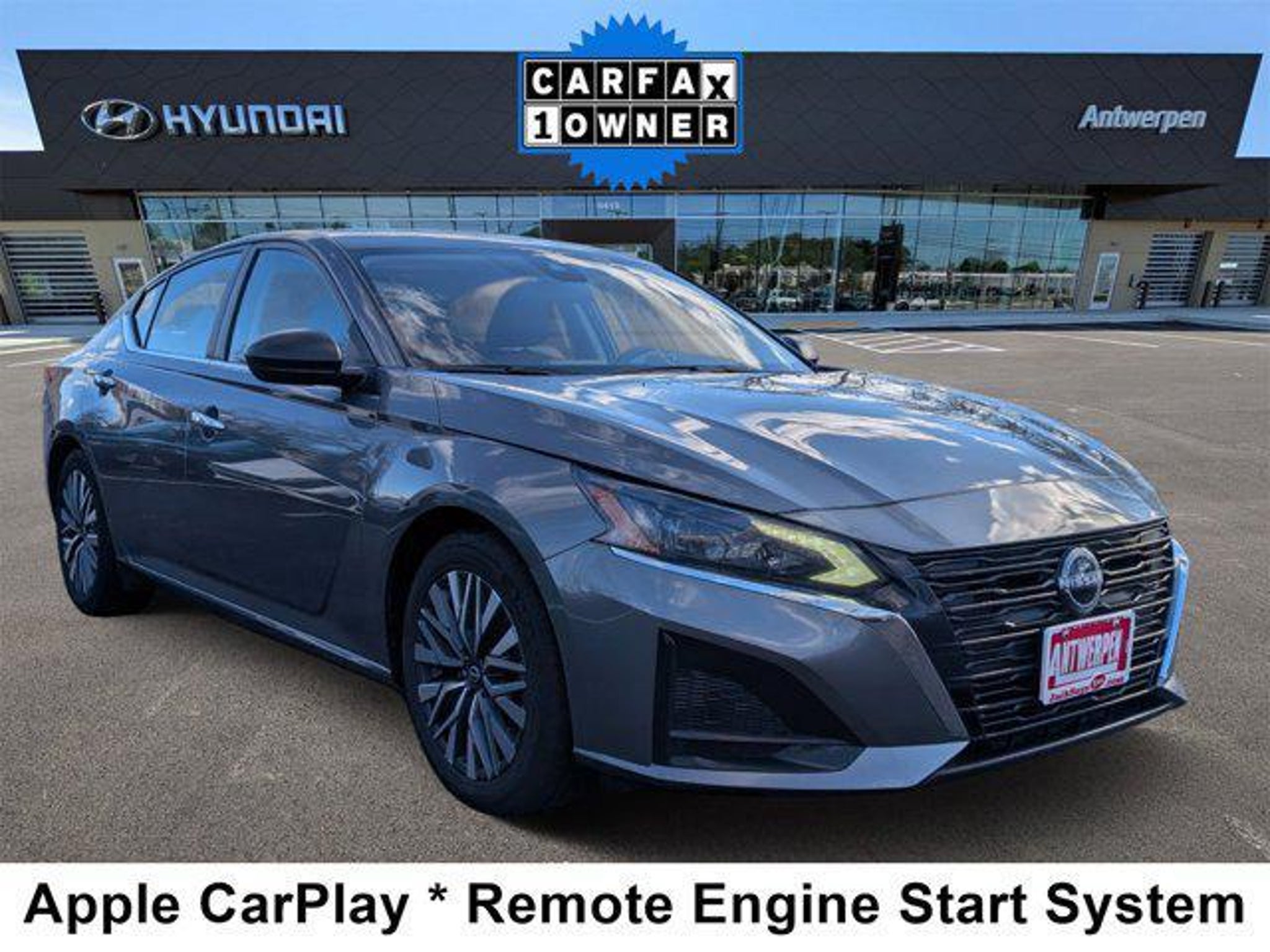 Elevate your driving experience with this stunning 2024 Nissan Altima 2.5 SV. This sleek and sophisticated sedan is the perfect blend of style, performance, and cutting-edge technology, making it the ideal choice for the discerning driver.Boasting an impressive array of features, this Altima stands out from the crowd. Key highlights include:- Bluetooth hands-free phone system- Backup camera- Blind-spot monitoring- Android Auto/Apple CarPlay integration- CARFAX one-owner vehicle- Lane departure system- Push-button startComplementing these advanced amenities are a host of convenience-enhancing elements, such as floor mats, a trunk mat, and a hideaway net, ensuring a seamless and organized driving experience.Under the hood, the Altima's 2.5L 4-cylinder DOHC 16V engine, paired with a CVT with Xtronic transmission, delivers a remarkable balance of power and efficiency. With an EPA-estimated 27 mpg in the city and an impressive 39 mpg on the highway, this Nissan offers unparalleled fuel economy, making it an exceptional choice for the modern commuter.The exterior of this Altima exudes a sophisticated charm, with its sleek Gray finish accentuating the vehicle's dynamic lines and curves. The 17-inch alloy wheels add a touch of elegance, while the speed-sensitive wipers and fully automatic headlights provide added convenience and safety.Step inside the cabin, and you'll be greeted by a spacious and well-appointed interior. Cloth seat trim, a front center armrest, and a split-folding rear seat ensure both comfort and versatility. The NissanConnect system, featuring Apple CarPlay, seamlessly integrates your smartphone, keeping you connected and entertained on the go.With its comprehensive suite of advanced safety features, including ABS brakes, dual front impact airbags, and an electronic stability control system, this Altima prioritizes your well-being, providing a secure and confident driving experience.At Antwerpen Automotive, every pre-owned vehicle is hand-selected, fully inspected, and backed by our commitment to quality and transparency. With over 500 used cars in stock across all price ranges, you'll always find the right vehicle at the right value. We make the process fast and hassle-free "” because at Antwerpen, Jack Says Yes! to great deals, top-dollar trade-ins, and a customer experience that keeps you coming back.