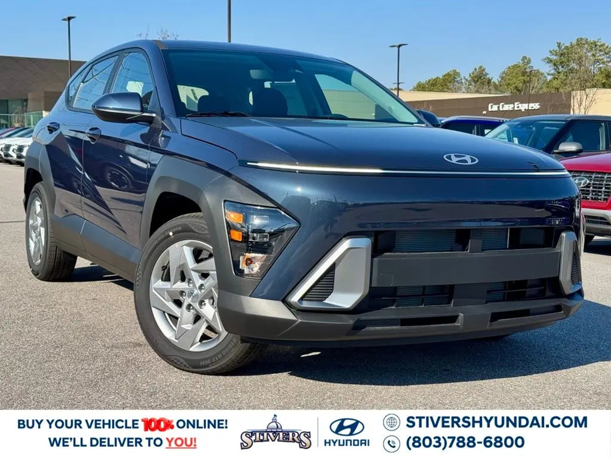 2026 Hyundai Kona SE Denim Blue Pearl FWD CVT 2.0L I4 DOHC 16V Check out all these options: Option Group 01, 4-Wheel Disc Brakes, 6 Speakers, ABS brakes, Air Conditioning, All Season Fitted Liners, Alloy wheels, AM/FM radio: SiriusXM, Apple CarPlay & Android Auto, Auto High-beam Headlights, Brake assist, Bumpers: body-color, Cargo Net, Cargo Tray, Carpeted Floor Mats, Cloth Seat Trim, Delay-off headlights, Driver door bin, Driver vanity mirror, Dual front impact airbags, Dual front side impact airbags, Electronic Stability Control, Emergency communication system: None, Exterior Parking Camera Rear, First Aid Kit, Front anti-roll bar, Front Bucket Seats, Front Center Armrest, Front reading lights, Front wheel independent suspension, Fully automatic headlights, Illuminated entry, Low tire pressure warning, Occupant sensing airbag, Outside temperature display, Overhead airbag, Panic alarm, Passenger door bin, Passenger vanity mirror, Power door mirrors, Power steering, Power windows, Radio: AM/FM/SiriusXM/HD Audio System, Rear window defroster, Rear window wiper, Remote keyless entry, Security system, Speed control, Speed-sensing steering, Split folding rear seat, Spoiler, Steering wheel mounted audio controls, Tachometer, Telescoping steering wheel, Tilt steering wheel, Traction control, Trip computer, Variably intermittent wipers, and Wheels: 17 x 7.0J Steel Gray Alloy. 29/34 City/Highway MPG Serving Columbia, West Columbia, Irmo, Lexington, Chapin, Lugoff, Elgin, Sumter, Florence, Blythewood, Camden, Fort Jackson,Cayce, Bishopville, Hartsville, Orangeburg, Gilbert, Clinton, Batesburg, Lamar, and Darlington for your automotive needs. Internet price does not include any dealer installed accessories. Price is based on factory options only, see dealer for details.