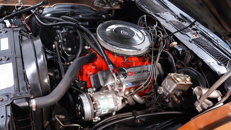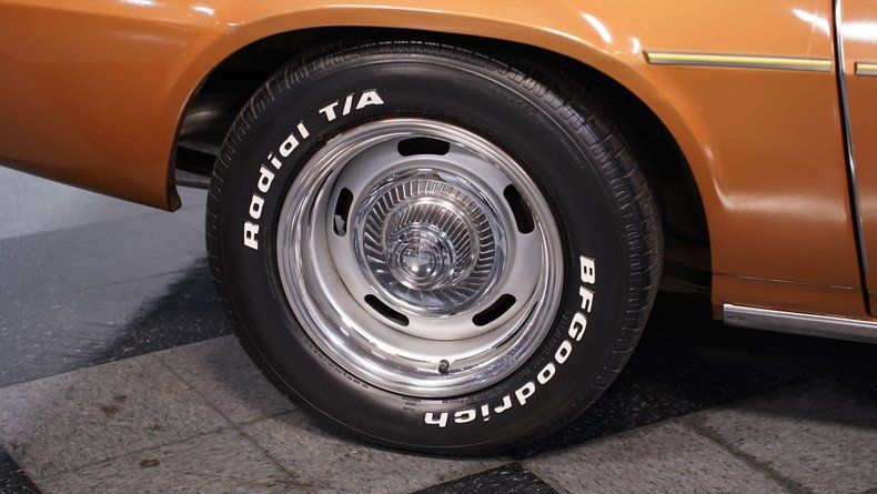 Numbers Matching 350 Cubic-Inch V8 Painted Chevy Orange Fi-Tech Fuel Injection System With Controller In Glove Box Edelbrock Performer EPS Intake Polished Chevrolet Valve Covers TH350 3-Speed Automatic Transmission 10-Bolt Rear Axle Front And Rear Factory-Style Suspension Front Power Disc Brakes / Rear Power Drum Brakes 15-Inch Rally Wheels With Center Caps And Beauty Rings Front And Rear 235/60R15 Tires With A Spare Tire In The Trunk Long Tube Headers / Dual Exhaust / Borla Mufflers Power Steering Heat / Defrost / Air Conditioning RetroSound® AM/FM/AUX With Bluetooth Radio