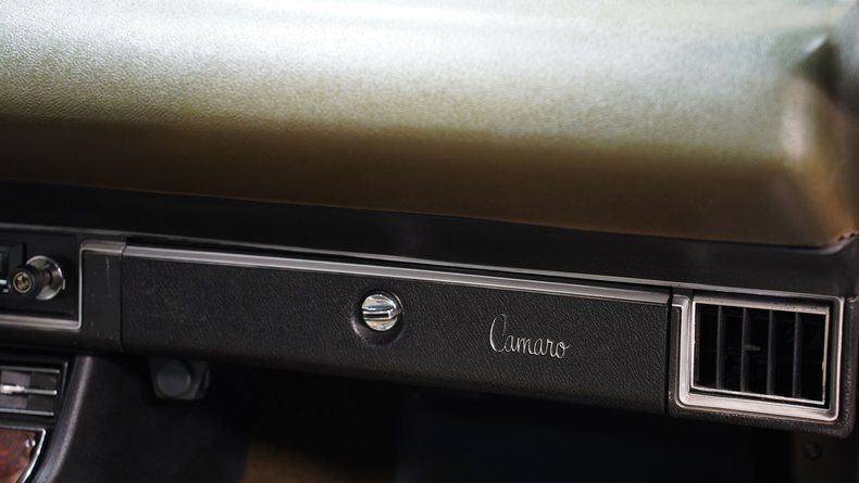 Under the hood, things are equally impressive. Power comes from a numbers-matching 350 cubic-inch V8 finished in classic Chevy Orange. Sitting on top is a FiTech fuel injection system paired with an Edelbrock Performer EPS intake, delivering improved drivability while keeping the muscle car feel. Power is routed through a TH350 three-speed automatic transmission to a 10-bolt rear axle. The Camaro rides on a factory-style suspension setup with front power disc brakes and rear power drum brakes for confident stopping. At all four corners sit 15-inch rally wheels wrapped in 235/60R15 tires, with a spare in the trunk. Long tube headers feed a dual exhaust system capped off with Borla mufflers, giving the car a deep muscle car rumble.