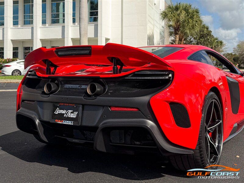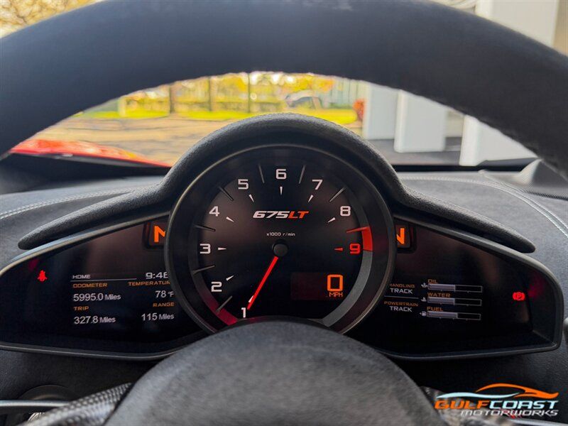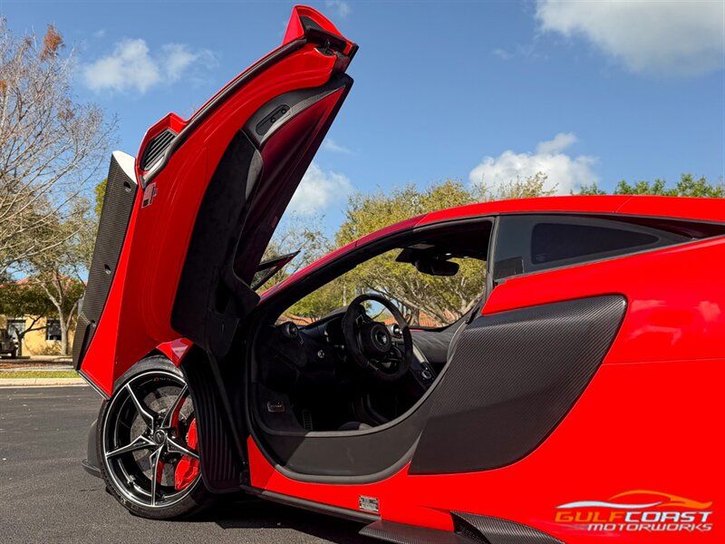 "2016 McLaren 675LT. Delta Red Exterior with Carbon Black w/ Stone Gray Interior. Features include: 666 horsepower 3.8L Twin Turbo V8 Engine, Seven-Speed Dual Clutch Seamless Shift Gearbox, 19"" Front & 20"" Rear Ultra-Lightweight Forged Wheels in Gloss Black, Carbon Ceramic Brakes with Delta Red Brake Calipers, Active Rear Spoiler/Airbrake, Carbon Fiber Exterior Upgrade Package, Carbon Fiber Door Blades, Carbon Fiber Rockers, Carbon Fiber Rear Bumper/Diffuser, Vehicle Lifter, Parking Camera, Front & Rear Parking Sensors, Power Folding Side Mirrors, Keyless Access & Start, Dihedral Doors with Soft Close Latches, Alcantara Wrapped Steering Wheel, Carbon Fiber Shift Paddles, Launch Control, Racing Seats, 675LT Embossed Headrests, Gray Accent Stitching, Carbon Fiber Interior Trim, Portrait Infotainment with Navigation, Meridian Surround Sound System, Bluetooth, Dual Zone Automatic Climate Control, Branded Floor Mat Set. Priced at only $299,995.00. Financing available. We ship worldwide. We pay top dollar for lightly used sports cars! Call or text our Product Specialists today at 239-522-2262 or email us at sales@gcmworks.com. Fees and Taxes: $1199.00 Doc Fee on all Purchases. Out of state buyers are responsible for all state, county, city taxes and fees, as well as title/registration fees in the state that the vehicle will be registered. -- INSTALLED FEATURES: Air filtration, Airbag deactivation: occupant sensing passenger, Front airbags: dual, Side airbags: front, Antenna type: diversity / element, Auxiliary audio input: Bluetooth / iPod/iPhone / jack / USB, Premium brand: Meridian, Radio: AM/FM / touch screen display / voice operated, Radio data system, Satellite radio: SiriusXM, Speed sensitive volume control, Total speakers: 4, ABS: 4-wheel, Brake drying, Braking assist, Cornering brake control, Electronic brakeforce distribution, Electronic parking brake, Front brake type: carbon ceramic disc, Power brakes, Rear brake type: carbon ceramic disc, Center console trim: carbon fiber, Door sill trim: carbon fiber, Floor material: carpet, Foot pedal trim: aluminum, Interior accents: carbon fiber / faux suede, Center console: front console with armrest, Cupholders: front, Multi-function remote: panic alarm / proximity entry system / trunk release, One-touch windows: 2, Power outlet(s): two 12V, Power steering: variable/speed-proportional, Push-button start, Reading lights: front, Rearview mirror: auto-dimming, Steering wheel: tilt and telescopic, Steering wheel mounted controls: paddle shifter, Vanity mirrors: dual illuminating, Exhaust: dual tip, Exhaust tip color: metallic, Front bumper color: black, Grille color: black, Ground effects/lower spoilers, Mirror color: body-color, Rear bumper color: body-color, Rear spoiler: electronically controlled / wing, Rear spoiler color: body-color, Side door type: butterfly, Window trim: black, Connected in-car apps: driving performance, Infotainment: IRIS, Infotainment screen size: 7 in., Clock, Compass, Digital odometer, External temperature display, Fuel economy display: MPG / range, Gauge: tachometer, Multi-function display, Trip odometer, Warnings and reminders: coolant temperature warning / lamp failure / low fuel level / low oil pressure / maintenance due, Daytime running lights: LED, Headlight cleaners, Headlights: auto on/off / LED, Rear fog lights, Taillights: LED, Side mirror adjustments: power / power folding, Side mirrors: heated / integrated turn signals, Drive mode selector, Mid-mounted engine, Automatic hazard warning lights, Crumple zones: front / rear, Impact sensor: door unlock / fuel cut-off / post-collision safety system, Front seatbelts: 3-point, Seatbelt pretensioners: front, Seatbelt warning sensor: front, Driver seat manual adjustments: height / reclining, Front headrests: 2 / integrated, Front seat type: sport bucket, Passenger seat manual adjustments: reclining, Upholstery: premium leather, Upholstery accents: contrast stitching / faux suede, Anti-theft system: alarm / perimeter alarm / vehicle immobilizer, Power door locks, Hill holder control, Stability control, Traction control, Driver adjustable suspension: ride control, Front shock type: gas, Front spring type: coil, Front stabilizer bar, Front suspension classification: independent, Front suspension type: double wishbone, Rear shock type: gas, Rear spring type: coil, Rear stabilizer bar, Rear suspension classification: independent, Rear suspension type: double wishbone, Suspension control: electronic, Tuned suspension: sport, Navigation system: hard drive / touch screen display / voice operated, Wireless data link: Bluetooth, Spare tire kit: inflator kit, Tire Pressure Monitoring System, Wheel spokes: 10, Wheels: aluminum alloy, Front wipers: rain sensing / variable intermittent, Power windows, Tinted glass, Window defogger: rear"