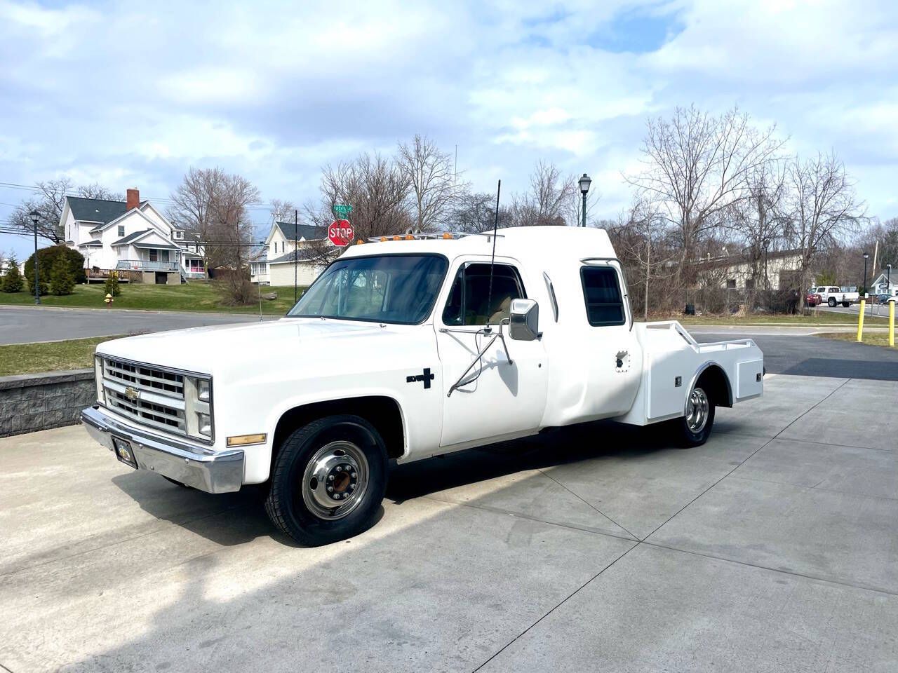 1988 Chevrolet R30 Hot Shot Fifth-Wheel Hauler " 55K Original Miles Built to work and designed for long-haul comfort, this 1988 Chevrolet R30 Hot Shot Hauler began life as a chassis-cab truck before being professionally converted by Cabriolet into a dedicated fifth-wheel hauler. Originally sold new by North County Motors in Paso Robles, California, the truck spent most of its life in California before relocating to Tennessee in 2018. Today it shows just 55,000 miles and comes with extensive original documentation. Under the hood is the legendary 7.4L (454) V8 with electronic fuel injection, factory rated at 230 horsepower and 385 lb-ft of torque. Power is delivered to the rear dually axle through the proven TH400 three-speed automatic transmission, a drivetrain known for durability and towing strength. The truck has been refinished in white under current ownership and is purpose-built for hauling with a gooseneck fifth-wheel hitch, diamond-plate bed flooring, three fuel tanks for extended range, and under-bed storage lockers for tools and gear. Inside, the custom cab conversion provides both comfort and practicality. Tan and brown upholstery covers the front bucket seats, while the rear bench converts into a sleeping area, making it ideal for long-distance hauling or road trips. Additional features include: - Air Conditioning - Power Windows & Power Locks - Overhead Console - Aftermarket Stereo - Satellite Radio Receiver - Garmin Navigation System This unique R/V-series Chevrolet combines classic heavy-duty truck capability with rare Hot Shot hauler conversion practicality"a standout piece for collectors, RV transporters, or anyone needing a distinctive and capable tow rig. Highlights - Only 55K miles - 7.4L 454 V8 EFI - TH400 automatic transmission - Dually rear axle - Cabriolet Hot Shot conversion - Gooseneck fifth-wheel hitch - Triple fuel tanks - Convertible sleeper bench Extensive documentation including 1988 purchase orders, invoices, service records, and manuals. A rare opportunity to own a low-mile, professionally converted classic heavy-duty hauler ready for work or show. WE SHIP NATIONWIDE.