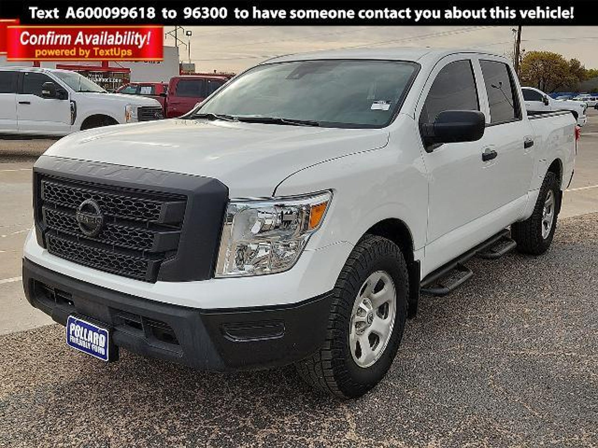Details > 2023 Nissan Titan 4X2 S 4DR Crew Cab 5.6 FT. SB For Sale in Lubbock, TX Private Party Sellers Click here to place your ad now! You auta tell them you saw the ad in AutaBuy when you call or email. 1/12 2/12 3/12 4/12 5/12 6/12 7/12 8/12 9/12 10/12 11/12 12/12 View 12 Photos View All Add to My Garage Parked in Your Garage! Pollard Friendly Ford Company Contact Seller: I would like to: Make Offer Check Availability Ask A Question Request More Photos Check Financing Options Send a copy of this message to me Add this listing to my garage Send to Mobile Mileage 24,622 Exterior Color Glacier White Interior Color Black Doors 4 Engine 5.6L V8 Transmission 9 Speed Auto Stock # 00099618 VIN 1N6AA1EE8PN103253 Estimated Monthly Payment $574 mo Apply Now J.J. Best Banc & Co. 2023 Nissan Titan 4X2 S 4DR Crew Cab 5.6 FT. SB Description: 2023 Nissan Titan Recent Arrival! ****. 16/21 City/Highway MPG · Mileage: 24,622 · Color: Glacier White Price: $32,990. Mileage 24,622 Exterior Color Glacier White Interior Color Black Doors 4 Engine 5.6L V8 Transmission 9 Speed Auto Stock # 00099618 VIN 1N6AA1EE8PN103253 Estimated Monthly Payment $574 mo Apply Now J.J. Best Banc & Co. Add to My Garage Parked in Your Garage! Message Seller Pollard Friendly Ford Company Contact Seller: I would like to: Make Offer Check Availability Ask A Question Request More Photos Check Financing Options Send a copy of this message to me Add this listing to my garage Offered for sale by Pollard Friendly Ford Company LUBBOCK, TX Price: $32,990. Offered for sale by Pollard Friendly Ford Company LUBBOCK, TX [entire inventory] Ask Auta Intelligence The first collector-car AI built directly into a classic car marketplace How many of these were produced? What colors did these come in? What does this VIN number tell me? What transmission options did these offer? What engine options did these come with? How far is this from me? Can you show me more pickups/trucks for a similar price? How many Titans were produced in White? When was this model first introduced? What factory options were available on this model? What's the typical towing capacity in this configuration? What size tires does this run from the factory? What kind of mileage do these get? How easy are parts to find for this model? What trim levels were available for this model? Where is this located? Tell me about this model Do you have a similar car to sell? List It Now! Questions about this car? Ask Auta Intelligence for production numbers, available options, etc. · Subscribe to AutaBuy! · Send a Gift Subscription Notice to a Friend