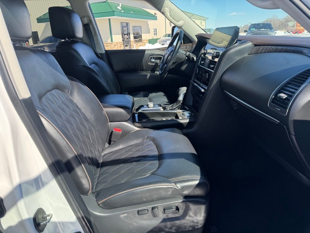 The Armada Platinum's Captain's Chairs Package elevates the interior experience offering seating for 7 with luxurious 2nd-row captain's chairs and a center console with a padded armrest. Bask in the comfort of the navigation system which seamlessly integrates with your smartphone for effortless connectivity.