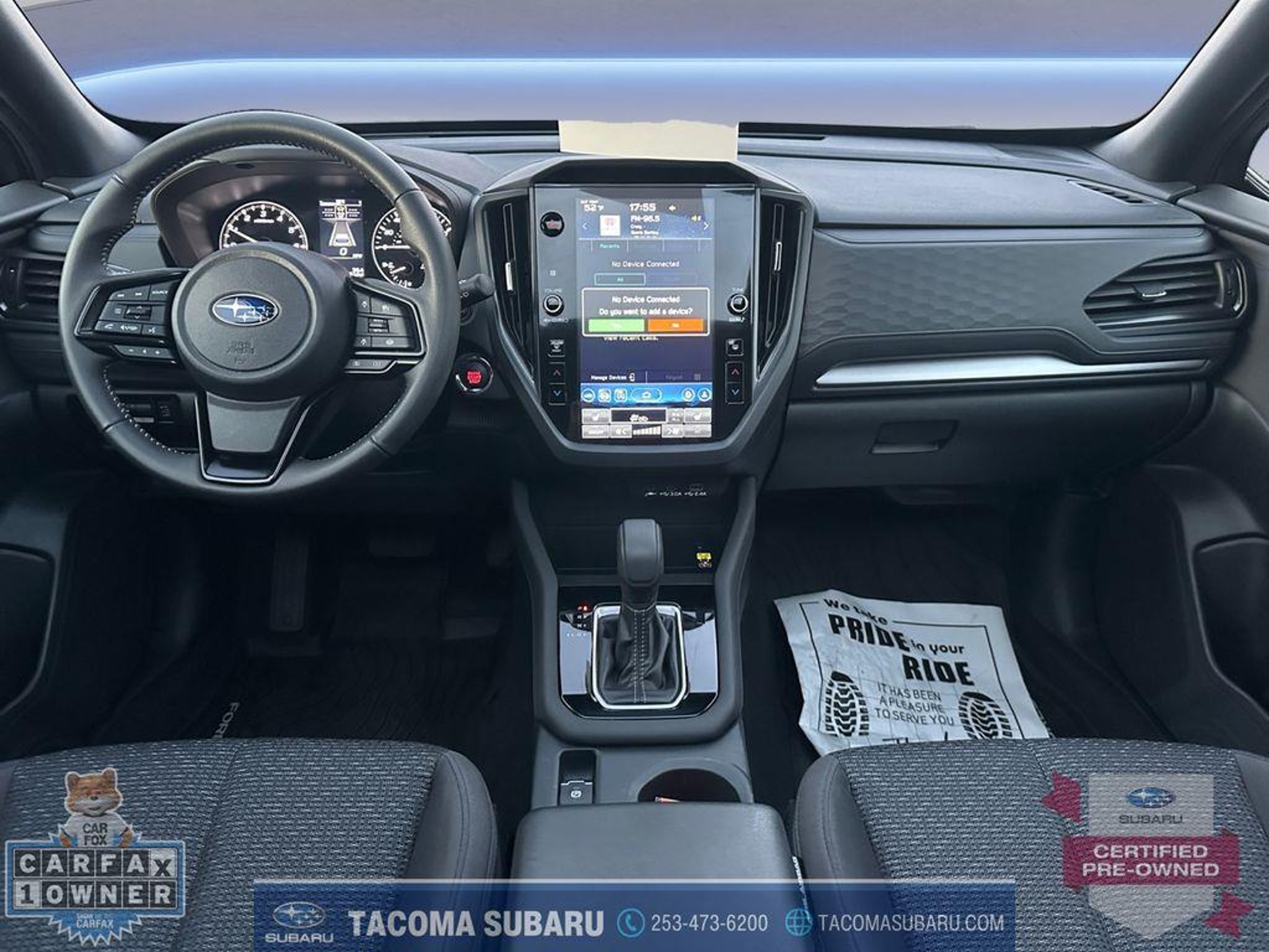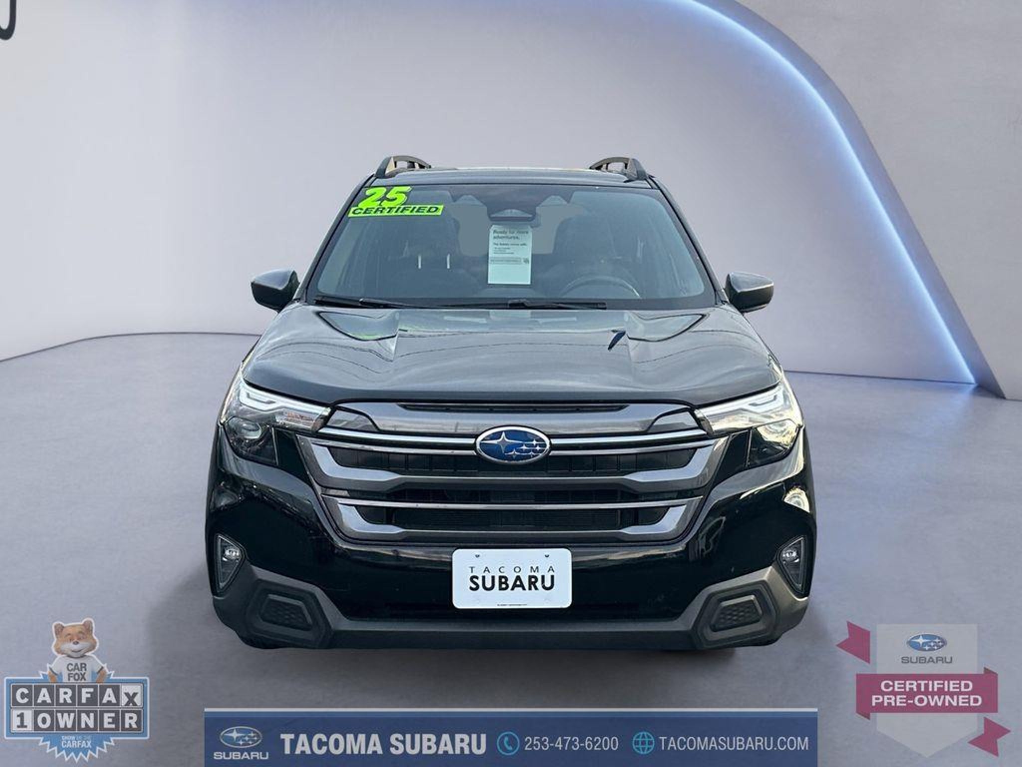 LOCATED AT: TACOMA SUBARU. 2025 Subaru Forester Premium CPO SUBARU CERTIFIED, INCLUDES WARRANTY. Clean CARFAX. CARFAX One-Owner. 26/33 City/Highway MPG Certified. Subaru Certified Pre-Owned Details: * Roadside Assistance * Vehicle History * SiriusXM 3-Month trial subscription, $500 Owner Loyalty coupon & 1 year trial subscription to STARLINK * Transferable Warranty * Warranty Deductible: $0 * Powertrain Limited Warranty: 84 Month/100,000 Mile (whichever comes first) from original in-service date * 152 Point Inspection Thank you for shopping at Tacoma Subaru! For car buyers who are looking for a honest and transparent experience, look no further. The Bruce Titus Automotive Group is a family-owned and operated business that puts customers first. Our goal is to provide a comfortable, hassle-free experience for our customers and to form relationships that last a lifetime. Our commitment to you does not end when you purchase your vehicle. Our transparent service and ownership experience help keep you and your vehicle safe on the road for years to come. DISCLAIMER: Dealer shall in no way be held liable for any errors or omissions to be found on these web pages. All prices are plus any applicable state taxes and fees. Prices are subject to change without notice. All vehicles are subject to prior sale. We will do our best to keep all information current and accurate, however, the dealership should be contacted by phone, e-mail, or in person for final pricing and availability. A dealer documentary service fee of up to $200 may be added to the sale price or capitalized cost. Vehicle may have dealer-installed accessories for display purposes only, and may not be reflected in Selling Price. All current incentives listed are purchase only. See dealer for lease incentives. Call for more info!