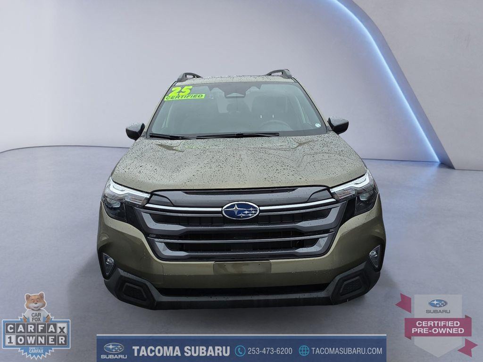 LOCATED AT: TACOMA SUBARU. 2025 Subaru Forester Premium CPO SUBARU CERTIFIED, INCLUDES WARRANTY. Clean CARFAX. CARFAX One-Owner. 26/33 City/Highway MPG Certified. Subaru Certified Pre-Owned Details: * Vehicle History * Warranty Deductible: $0 * Powertrain Limited Warranty: 84 Month/100,000 Mile (whichever comes first) from original in-service date * Roadside Assistance * SiriusXM 3-Month trial subscription, $500 Owner Loyalty coupon & 1 year trial subscription to STARLINK * 152 Point Inspection * Transferable Warranty Thank you for shopping at Tacoma Subaru! For car buyers who are looking for a honest and transparent experience, look no further. The Bruce Titus Automotive Group is a family-owned and operated business that puts customers first. Our goal is to provide a comfortable, hassle-free experience for our customers and to form relationships that last a lifetime. Our commitment to you does not end when you purchase your vehicle. Our transparent service and ownership experience help keep you and your vehicle safe on the road for years to come. DISCLAIMER: Dealer shall in no way be held liable for any errors or omissions to be found on these web pages. All prices are plus any applicable state taxes and fees. Prices are subject to change without notice. All vehicles are subject to prior sale. We will do our best to keep all information current and accurate, however, the dealership should be contacted by phone, e-mail, or in person for final pricing and availability. A dealer documentary service fee of up to $200 may be added to the sale price or capitalized cost. Vehicle may have dealer-installed accessories for display purposes only, and may not be reflected in Selling Price. All current incentives listed are purchase only. See dealer for lease incentives. Call for more info!