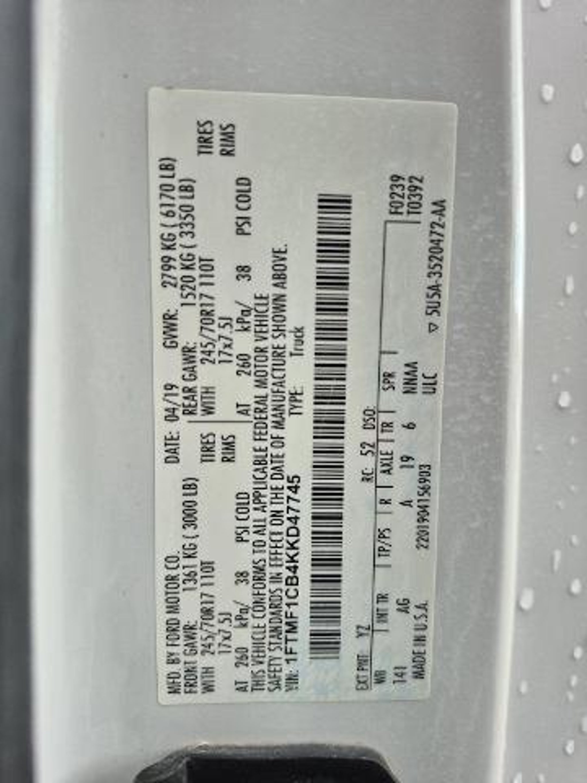 VIN 1FTMF1CB4KKD47745