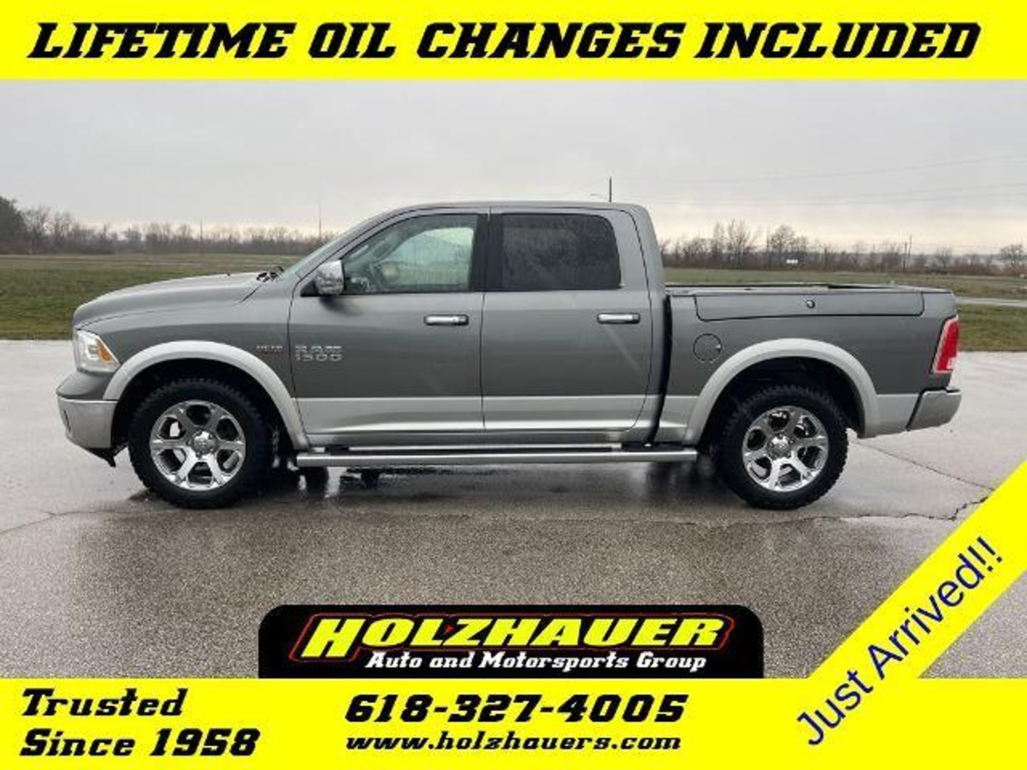 2013 Ram 1500 Laramie HEMI 5.7L V8 Multi Displacement VVT 4WD Mineral Gray Metallic Clearcoat 2 OWNER PURCHASED HERE!!, Lower Two-Tone Paint (Billet Silver), 27.5 Cooper Discoverer AT3 Tires, 20 x 9 Chrome Clad Aluminum Wheels, 3.92 Rear Axle Ratio, 32 Gallon Fuel Tank, 8.4 Touch Screen Display, Anti-Spin Differential Rear Axle, Auto High Beam Headlamp Control, Automatic temperature control, Class IV Receiver Hitch, Convenience Group, Front fog lights, Full Length Floor Console, Garage door transmitter, GPS Navigation, HD Radio, Heated Second Row Seats, Heated steering wheel, Keyless Enter-N-Go, Leather Trimmed Bucket Seats, Memory seat, Navigation System, ParkSense Rear Park Assist System, Power passenger seat, Power Sunroof, Protection Group, Quick Order Package 26H Laramie, Radio: Uconnect 8.4AN AM/FM/BT/Access/NAV, Rain Sensitive Windshield Wipers, Remote Proximity Keyless Entry, Remote Start System, Spray In Bedliner, Steering wheel mounted audio controls, Tow Hooks, Trailer Brake Control, Uconnect Access Advantage, Ventilated front seats, Wheel to Wheel Side Steps. Our incredible selection, our low overhead and low prices simply cannot be matched. Teamed with our friendly small town service you'll see why Holzhauer Auto Group is one of the Midwest's largest and fastest growing dealerships. We dont just compete. We blow the competition away with selection, service and price. Before you buy a car, truck, van or SUV from anywhere else you owe it to yourself to visit Holzhauer Auto Group. Odometer is 21124 miles below market average! Awards: * Motor Trend Truck of the Year * Ward's 10 Best Engines * NACTOY 2013 North American Truck of the Year