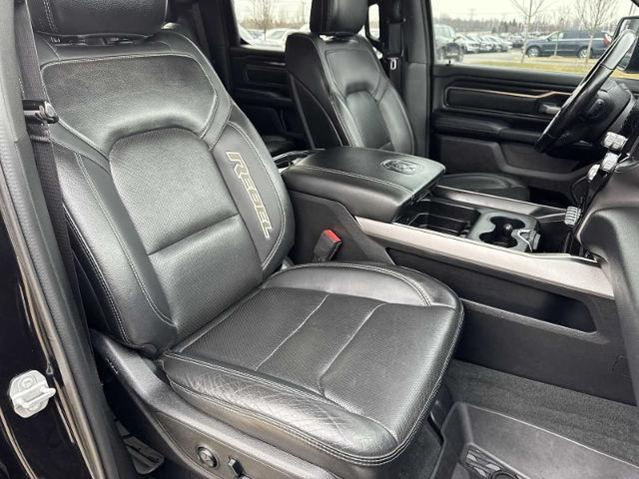 2020 Ram 1500 Rebel Is nicely equipped with Black Appearance Package (Black 4x4 Tailgate Badge, Black Exterior Truck Badging, Black Front Bumper w/Black Plate, Black Headlamp Bezels, Black Outline Mustache Grille Texture 3, Body Color Door Handles, RAM Grille Badge - Black, and Wheels: 18 x 8.0 Gloss Black), Comfort/Convenience Group (Driver Seat Memory, Exterior Mirrors w/Memory, Heated Second Row Seats, Power 4-Way Driver Lumbar Adjust, Power 8-Way Driver & Passenger Seats, Remote Tailgate Release, and Wireless Charging Pad), Quick Order Package 25W Rebel, Rebel 12 (harman/kardon 19 Speaker Premium Sound, Heated Front Seats, Heated Steering Wheel, Lux Leather Trimmed Bucket Seats, Radio: Uconnect 12 w/Navigation, 1-Yr SiriusXM Guardian Trial, 12 Touchscreen Display, 4 Way Front Headrests, 4G LTE Wi-Fi Hot Spot, 5-Year SiriusXM Traffic Service, 5-Year SiriusXM Travel Link Service, Apple CarPlay, Bucket Seats, Disassociated Touchscreen Display, For Details, Visit DriveUconnect.com, Front Seat Back Map Pockets, Full Length Upgraded Floor Console, Google Android Auto, GPS Antenna Input, GPS Navigation, HD Radio, Integrated Center Stack Radio, LED Footwell Lighting, Power 4-Way Passenger Lumbar Adjust, Rear 60/40 Folding Seat, SiriusXM Satellite Radio, SiriusXM Traffic Plus, SiriusXM Travel Link, SiriusXM w/360L, and USB Host Flip), Rebel Level 2 Equipment Group (115V Auxiliary Rear Power Outlet, 2 USB Full Function/Charge Only Media Hub, Auto-Dimming Rear-View Mirror, Black Premium Power Mirrors, Foam Bottle Insert (Door Trim Panel), ParkSense Front/Rear Park Assist w/Stop, Power Adjustable Pedals, Radio: Uconnect 4 w/8.4 Display, Rain Sensitive Windshield Wipers, Rear Dome w/On/Off Switch Lamp, Rear Underseat Compartment Storage, Rear Window Defroster, Remote Proximity Keyless Entry, Security Alarm, Single Disc Remote CD Player, Sun Visors w/Illuminated Vanity Mirrors, and Universal Garage Door Opener), Safety/Convenience Group (Adaptive Cruise Control w/Stop & Go, Auto High Beam Headlamp Control, Full Speed Forward Collision Warning Plus, and Lane Keep Assist), 3.92 Rear Axle Ratio, 4-Corner Air Suspension, 4-Wheel Disc Brakes, 48V Belt Starter Generator, 6 Speakers, ABS brakes, Air Conditioning, Alloy wheels, AM/FM radio: SiriusXM, Black Tubular Side Steps, Blind Spot & Cross Path Detection, Brake assist, Cloth/Vinyl Low Back Bucket Seats, Compass, Delay-off headlights, Driver door bin, Dual front impact airbags, Dual front side impact airbags, Electronic Stability Control, Front anti-roll bar, Front Bucket Seats, Front Center Armrest w/Storage, Front fog lights, Front reading lights, Front wheel independent suspension, Fully automatic headlights, Heated door mirrors, Illuminated entry, Leather steering wheel, Low tire pressure warning, Occupant sensing airbag, Outside temperature display, Overhead airbag, Overhead console, Panic alarm, ParkView Rear Back-Up Camera, Passenger door bin, Passenger vanity mirror, Power door mirrors, Power driver seat, Power steering, Power windows, Radio data system, Radio: Uconnect 3 w/5 Display, Rear anti-roll bar, Rear seat center armrest, Rear step bumper, Rear Wheelhouse Liners, Rebel Exterior Side Graphics, Rebel Hood Decal, Remote keyless entry, Remote Start System, Speed control, Split folding rear seat, Spray In Bedliner, Steering wheel mounted audio controls, Tachometer, Telescoping steering wheel, Tilt steering wheel, Traction control, Tri-Fold Tonneau Cover, Trip computer, Variably intermittent wipers, Voltmeter, and Wheels: 18 x 8 Painted BlacK.**Super Clean and Well Taken Care Of**, Sunroof / Moonroof, Backup Camera, Trailer Hitch, Bluetooth, Hands-Free, Leather Seats, Heated Seats, Steering Wheel Controls, Multi-zone Climate Control, Premium Wheels, Keyless Entry, AWD/4WD, Non-Smoker, All Maintenance Upto date!!, Fully Reconditioned and Professionally Detailed!, Must See and Drive to appreciate this great value!!, 115V Auxiliary Rear Power Outlet, 2 USB Ful