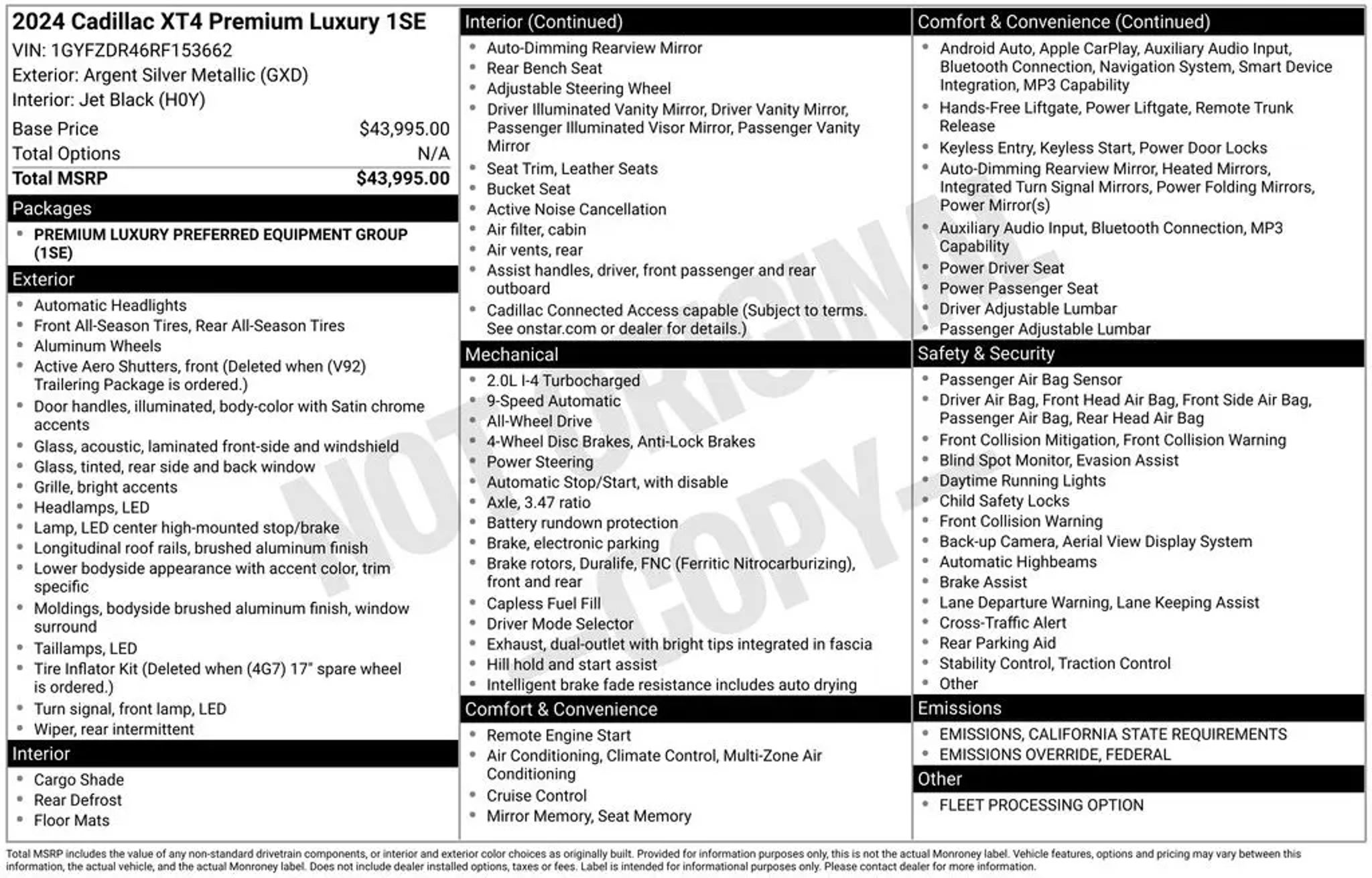 FREE 20 YEAR / 200,000 MILE POWERTRAIN WARRANTY, AWD ALL WHEEL DRIVE, BLUETOOTH, SIRIUS XM SATELLITE RADIO, APPLE CARPLAY, GOOGLE ANDROID AUTO, NAVIGATION SYSTEM GPS NAV, STEERING WHEEL AUDIO CONTROLS, TOUCH SCREEN CONTROLS, BACKUP CAMERA, HOMELINK UNIVERSAL GARAGE DOOR OPENER, KEYLESS PUSH BUTTON START, COLLISION AVOIDANCE SYSTEM, POWER DRIVER SEAT, POWER PASSENGER SEAT, MEMORY PACKAGE / MEMORY SEAT, REMOTE START, POWER LIFTGATE, PREMIUM LUXURY SERIES, PREFERRED EQUIPMENT PACKAGE 1SE, 18 TRI 5-SPOKE PEARL NICKEL FINISH ALLOY WHEELS, 7-SPEAKER AUDIO SYSTEM, AIR CONDITIONING, AUTO-DIMMING REAR-VIEW MIRROR, AUTOMATIC TEMPERATURE CONTROL, BRAKE ASSIST, COMPASS, DELAY-OFF HEADLIGHTS, DRIVER VANITY MIRROR, DUAL FRONT IMPACT AIRBAGS, DUAL FRONT SIDE IMPACT AIRBAGS, ELECTRONIC CRUISE CONTROL W/SET & RESUME SPEED, EMERGENCY COMMUNICATION SYSTEM: ONSTAR AND CADILLAC CONNECTED SERVICES CAPABLE, FRONT DUAL ZONE A/C, HEATED DOOR MIRRORS, LEATHER STEERING WHEEL, LOW TIRE PRESSURE WARNING, OCCUPANT SENSING AIRBAG, OUTSIDE TEMPERATURE DISPLAY, OVERHEAD CONSOLE, PANIC ALARM, PASSENGER VANITY MIRROR, POWER DOOR MIRRORS, POWER STEERING, POWER WINDOWS, RADIO: GOOGLE BUILT-IN INFOTAINMENT EXPERIENCE, RAIN SENSING WIPERS, REAR WINDOW DEFROSTER, REAR WINDOW WIPER, REMOTE KEYLESS ENTRY, SIRIUSXM W/360L, SPEED CONTROL, SPEED-SENSING STEERING, STANDARD SUSPENSION, TELESCOPING STEERING WHEEL, TILT STEERING WHEEL, TURN SIGNAL INDICATOR MIRRORS, VARIABLY INTERMITTENT WIPERS.