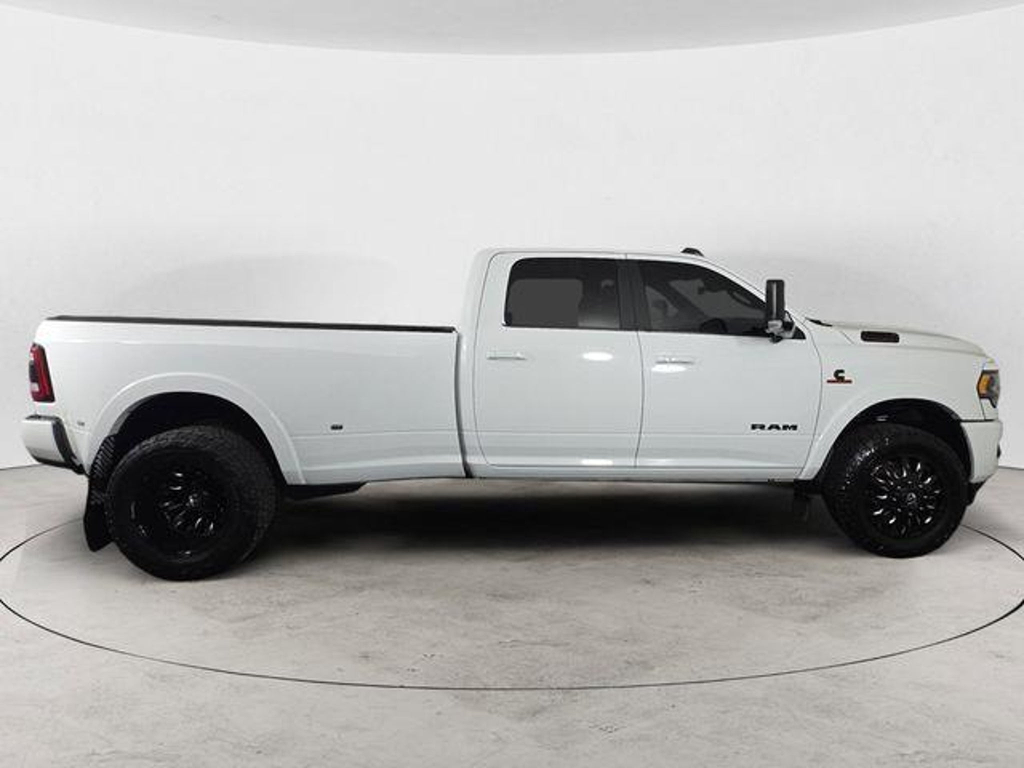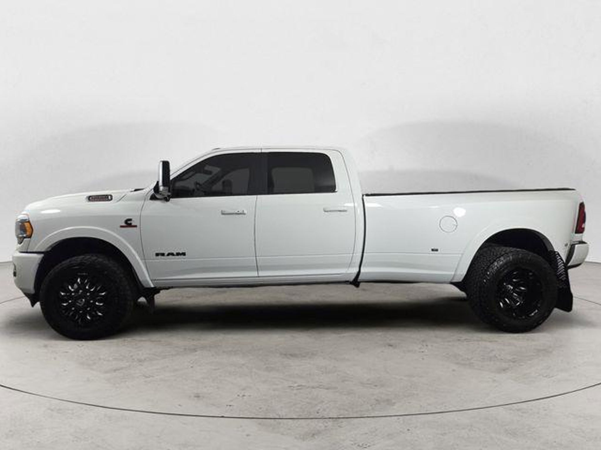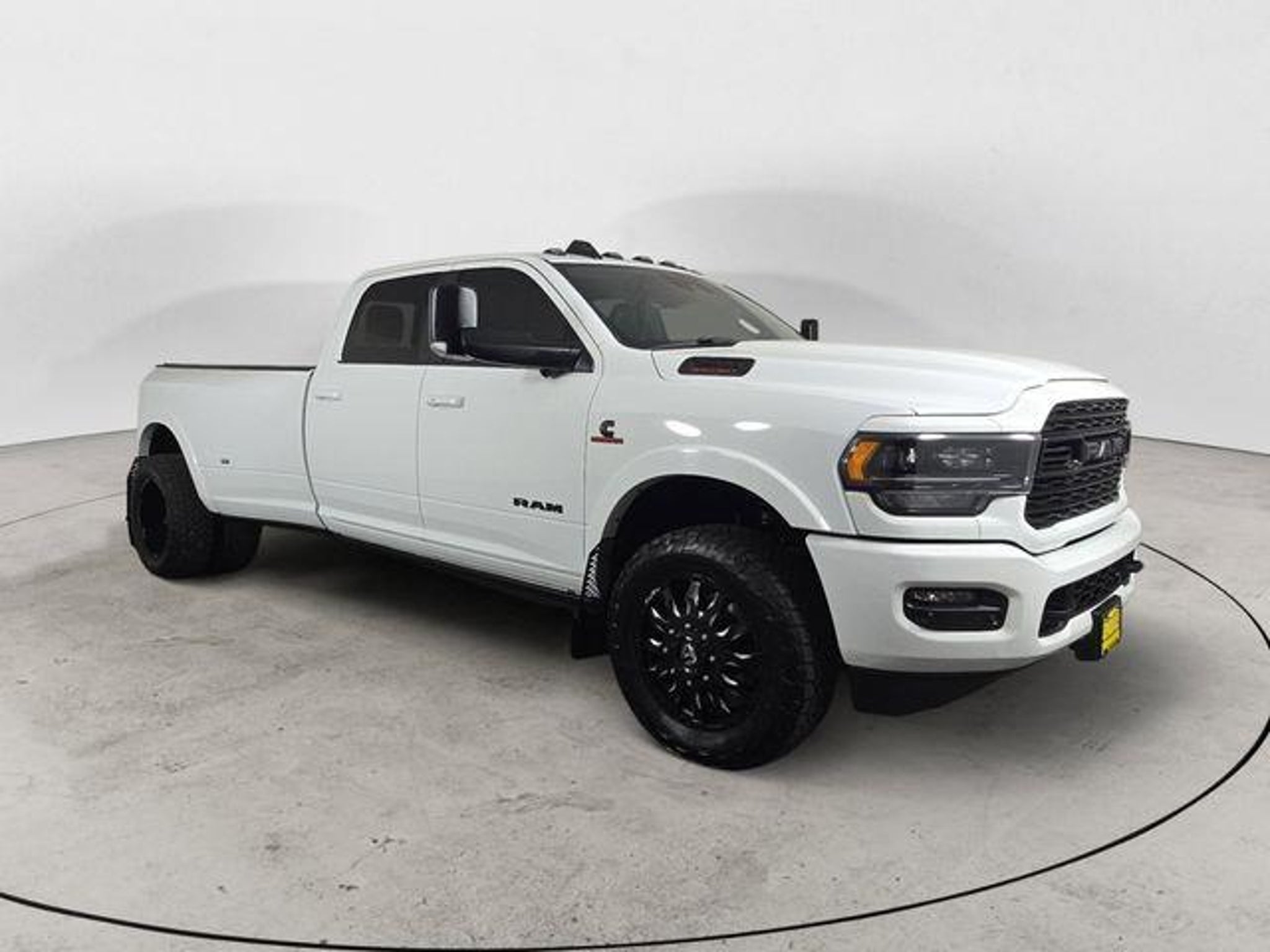CARFAX One-Owner. 17 Speaker harman kardon Premium Sound, 2 Red Vinyl Flags, 3 Reflecting Triangles, 4.10 Axle Ratio, 5th Wheel/Gooseneck Towing Prep Group, 6000# Front Axle w/Hub Ext, Adaptive Cruise Control w/Stop, Adaptive Steering System, Air Suspension Decal, Auto Level Rear Air Suspension, Black Exterior Mirrors, Black Exterior Truck Badging, Black Grille Limited, Black Headlamp Bezels, Black Ram Head Tailgate Badge, Black Tail Lamp Bezels, Black Wheel Center Hub, Body Color Door Handles, Body Color Grille Surround, Box & Rear Fender Clearance Lamps, Clearance Lamps, Cold Weather Group, CTR Stop Lamp w/Cargo View Camera, Digital Rearview Mirror, DOT Certified Roadside Safety Kit, DOT Fire Extinguisher, Dual Rear Wheels, Engine Block Heater, Full Speed Forward Collision Warning Plus, GPS Navigation, Heated front seats, Heated rear seats, Lane Keep Assist, Limited Level 1 Equipment Group, Max Tow Package, Memory seat, MOPAR 30K Direct Mount 5th Wheel Hitch, MOPAR Winter Front Grille Cover, Navigation System, Night Edition, Painted Front Bumper, Painted Rear Bumper, ParkView Rear Back-Up Camera, Power Black Tow Mirrors w/Convex Spotter & Memory, Power driver seat, Power passenger seat, Power Sunroof, Protection Group, Quick Order Package 21M Limited, Rear Wheelhouse Liners, Remote keyless entry, Spare Fuses, Steering wheel mounted audio controls, Surround View Camera System, Tip Start, Tire Pressure Monitoring Delete, Tow Hooks, Trailer Reverse Guidance, Ventilated front seats, Wheels: 17 x 6.0 Polished Aluminum, 1-Year SiriusXM Guardian Trial, 10 Speakers, 12 Touchscreen Display, 220 Amp Alternator, 4-Wheel Disc Brakes, 4G LTE Wi-Fi Hot Spot, 50 Gallon Fuel Tank, ABS brakes, Active Noise Control System, Adjustable pedals, Air Conditioning, Alloy wheels, AM/FM radio: SiriusXM with 360L, Apple CarPlay, Apple CarPlay/Android Auto, Audio memory, Auto High-beam Headlights, Auto-dimming Rear-View mirror, Automatic temperature control, Bodyside moldings, Brake assist, Bumpers: chrome, Compass, Dash Pass Thru Wire Circuits, Delay-off headlights, Disassociated Touchscreen Display, Driver door bin, Driver vanity mirror, Dual Alternators Rated At 440 Amps, Dual front impact airbags, Dual front side impact airbags, Electronic Stability Control, Electronically Controlled Throttle, Emergency communication system: SiriusXM Guardian, Front anti-roll bar, Front Bucket Seats, Front Center Armrest w/Storage, Front dual zone A/C, Front fog lights, Front License Plate Bracket, Front reading lights, Fully automatic headlig