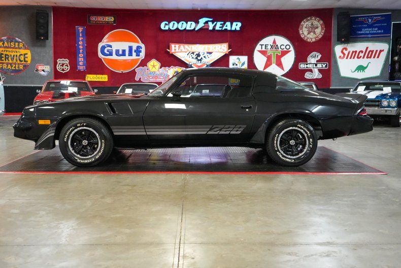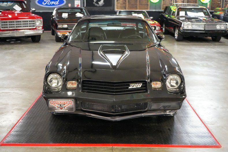 This 1980 Chevrolet Camaro Z/28 delivers classic muscle car appeal with a 350 Small Block Chevy V8, GM TH350 automatic transmission, and GM 10-bolt POSI rear end with 3.31 gears. Performance upgrades include a Holley Street Dominator intake, Edelbrock 600 CFM 4-barrel carburetor, HEI distributor, aluminum radiator, and flex-style cooling fan. Comfort features include power steering, power brakes with front discs, and a Jensen Bluetooth radio with Kenwood speakers. It sports black leather interior, 15" OEM Z/28 rally wheels, and Cooper Cobra Radial G/T tires. Finished in bold black with Z/28 decals. Shipping and warranty included at full retail price.