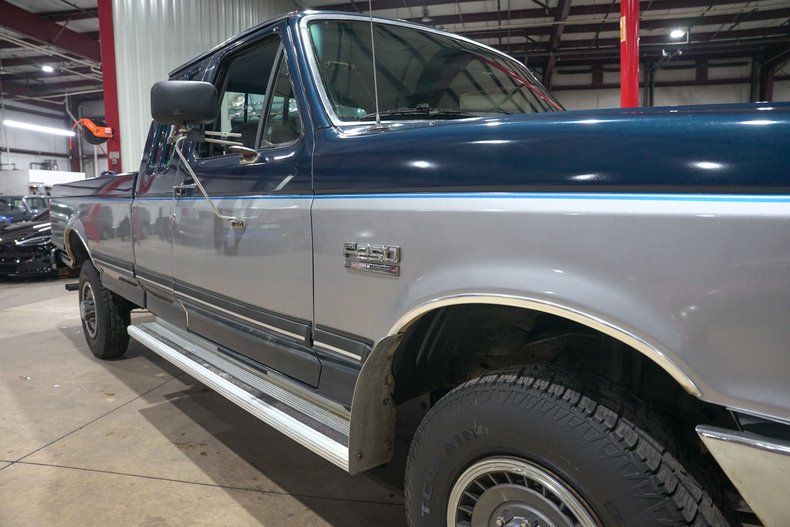 This 2 owner F250 4X4 is finished in its factory two-tone color combination: Dark Shadow Blue with Light Smoke exterior paint. The odometer shows 97,336 miles, and the truck remains in very good, highly original condition. The exterior paint shows deep and glossy with some expected bumps and bruises. The interior appears to be all original and very clean, including all upholstery, dash and trim panels, the frame and underside are orignal exhibiting outstanding structural integrity. The engine compartment also appears original, with visible areas of servicing, including the air conditioning system, belts, hoses, etc. Mechanically, this F250 is a beast; it starts, runs, and drives very well and is ready to work for you.