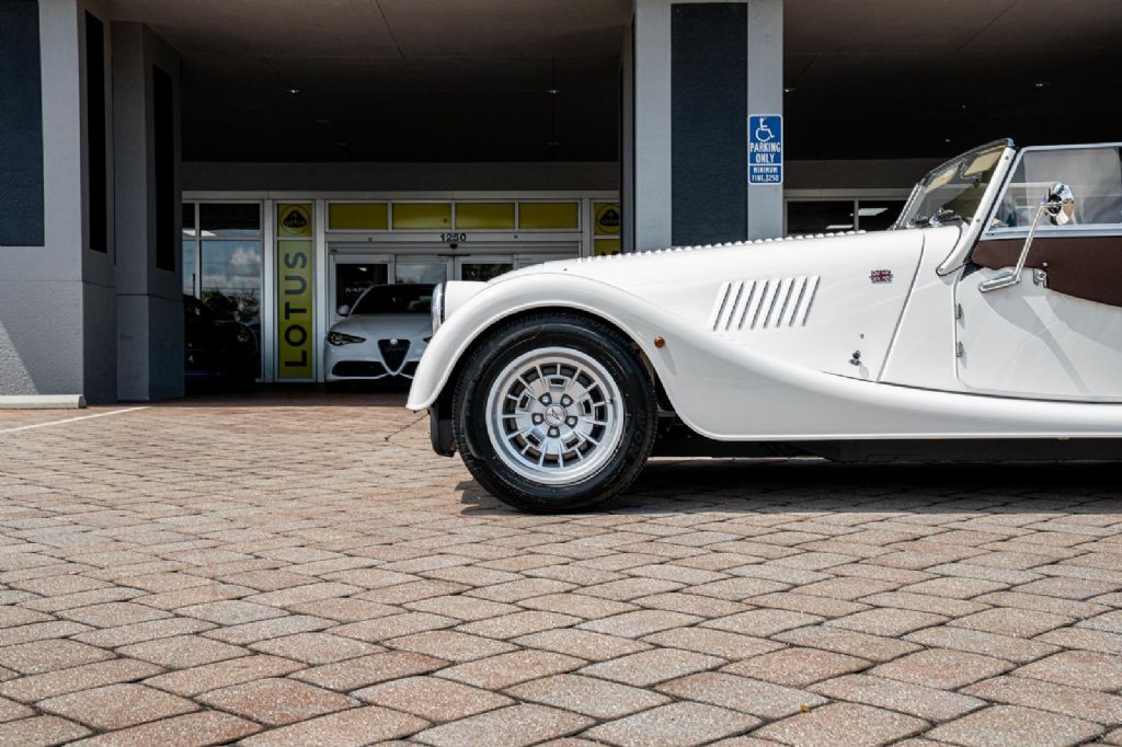 Finished in timeless Tl Classic White, this 2026 Morgan Plus 4 is a perfect example of old-world craftsmanship meeting modern performance. The hand built body carries a vintage roadster silhouette that stands completely apart from anything else on the road, while the Morgan Biscuit leather interior delivers a warm, heritage inspired cabin that feels both luxurious and authentic. With just 5 miles, this is essentially a delivery mile example untouched, unbroken in, and as close to factory fresh as it gets. Every detail, from the exposed fenders to the handcrafted finishes, reflects Morgan's legacy of building cars the way they used to only now with modern engineering underneath.