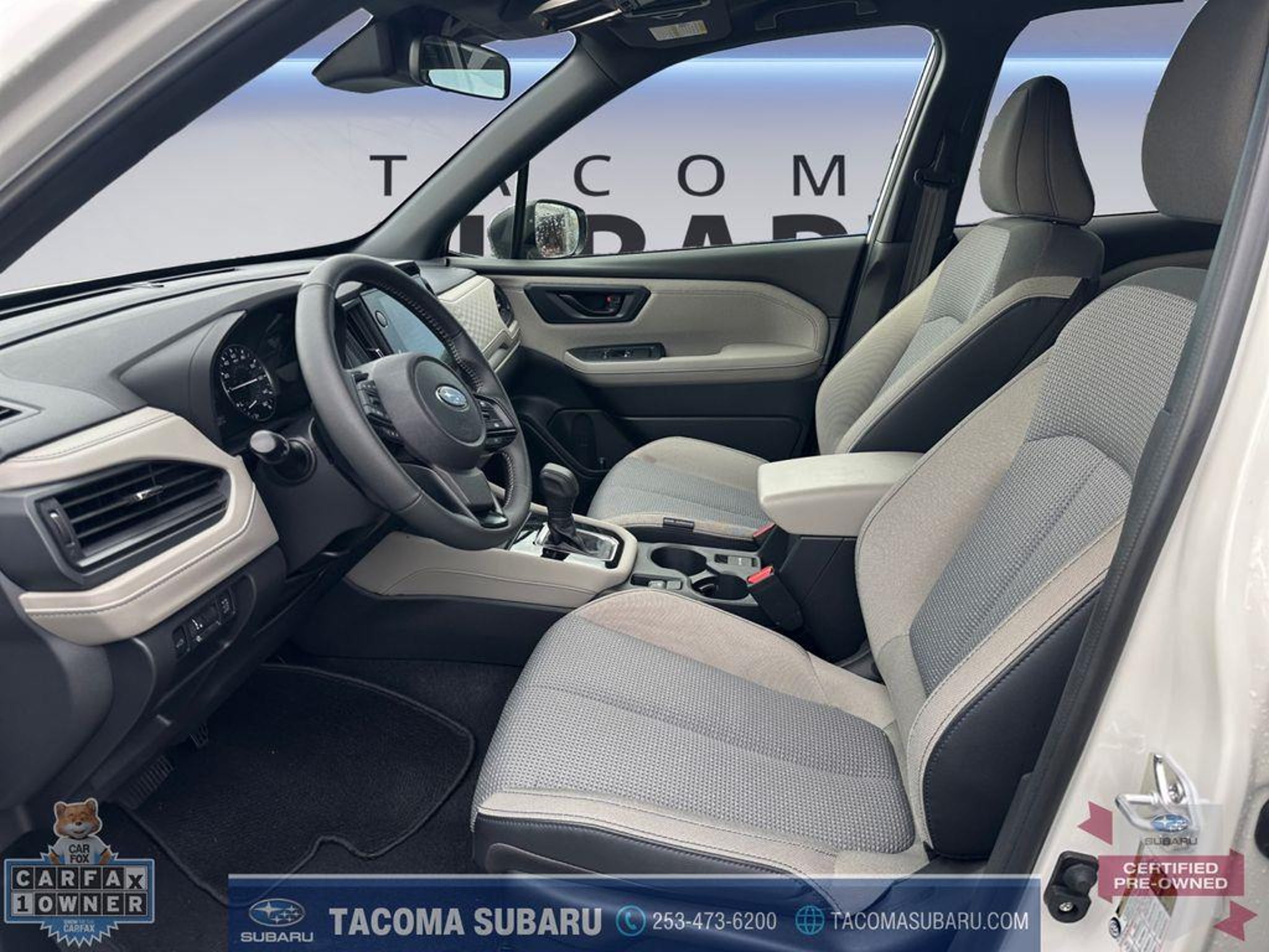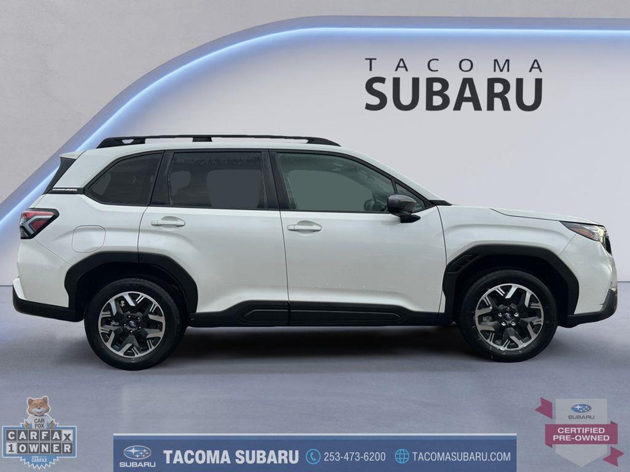 LOCATED AT: TACOMA SUBARU. 2025 Subaru Forester Premium CPO SUBARU CERTIFIED, INCLUDES WARRANTY. Recent Arrival! Clean CARFAX. CARFAX One-Owner. Odometer is 1881 miles below market average! 26/33 City/Highway MPG Certified. Subaru Certified Pre-Owned Details: * Vehicle History * Roadside Assistance * 152 Point Inspection * SiriusXM 3-Month trial subscription, $500 Owner Loyalty coupon & 1 year trial subscription to STARLINK * Powertrain Limited Warranty: 84 Month/100,000 Mile (whichever comes first) from original in-service date * Warranty Deductible: $0 * Transferable Warranty Thank you for shopping at Tacoma Subaru! For car buyers who are looking for a honest and transparent experience, look no further. The Bruce Titus Automotive Group is a family-owned and operated business that puts customers first. Our goal is to provide a comfortable, hassle-free experience for our customers and to form relationships that last a lifetime. Our commitment to you does not end when you purchase your vehicle. Our transparent service and ownership experience help keep you and your vehicle safe on the road for years to come. DISCLAIMER: Dealer shall in no way be held liable for any errors or omissions to be found on these web pages. All prices are plus any applicable state taxes and fees. Prices are subject to change without notice. All vehicles are subject to prior sale. We will do our best to keep all information current and accurate, however, the dealership should be contacted by phone, e-mail, or in person for final pricing and availability. A dealer documentary service fee of up to $200 may be added to the sale price or capitalized cost. Vehicle may have dealer-installed accessories for display purposes only, and may not be reflected in Selling Price. All current incentives listed are purchase only. See dealer for lease incentives. Call for more info!