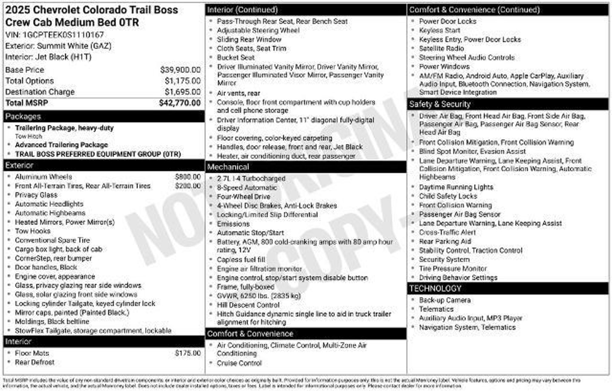 At Lamarque Ford, our customers come first?Every Deal, Every Day, All the Time. That?s why we?re honored as Best of New Orleans and celebrated for Customer Satisfaction by J.D. Power and Ford Motor Company. All Vehicles are subject to an $895 Prep and Conditioning Fee at time of Purchase. Certified. 4WD. Clean CARFAX. CARFAX One-Owner. Priced below KBB Fair Purchase Price! Odometer is 11119 miles below market average! Summit White 2025 Chevrolet Colorado Trail Boss Certification Program Details: Ford Blue Advantage: Blue Certified * 139 Point Inspection * Transferable Warranty * Vehicle History * Warranty Deductible: $100 * Roadside Assistance * Limited Warranty: 3 Month/4,000 Mile (whichever comes first) after new car warranty expires or from certified purchase date * and 11,000 FordPass Rewards Points to use toward first maintenance visit We look forward to you being part of the family and remember always feel free to visit our full-service dealership at 3101 Williams Blvd, Kenner, LA 70065 or Call Lamarque Ford at (504) 443-2500 to schedule a test drive today!